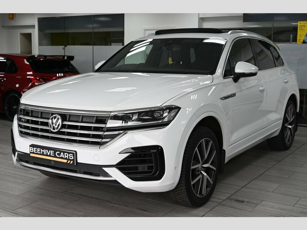 **HOME DELIVERY AVAILABLE 7 DAY MONEY BACK GUARANTEE VIEWING & COLLECTION STRICTLY BY APPOINTMENT ONLY** Lovely vw touareg finished in white with full vw service history dab radio bluetooth sat nav usb apple car play leathers heated seats heated steering wheel arm rest stop start cruise control electric heated mirrors flat bottom steering wheel panoramic roof drive modes hill hold xenon headlights reverse camera front and rear sensors alloys privacy glass 12V Socket x3, 20in Alloy Wheels - Braga, 4MOTION Active Control, ABS Plus - Anti-Lock Braking System with, Active Bonnet, Adaptive Cruise Control - Including Fron, Air Vents in B-Pillar, Alarm with Interior Protection - Back up, Ambient Lighting - White, Automatic Coming Home Lighting Function, Automatic Dimming Interior Rear View Mir, Automatic Headlight Control, Automatic Post-Collision Braking System, Body Coloured Door Handles, Body Coloured Door Mirrors with Integrat, Body Coloured Front and Rear Bumpers, Body Coloured Wheel Arch Protection, C Signature Gloss Black Front Air Intake, Car Net - Guide and Inform - 3 Year Subs, Car-Net App Connect, Car-Net Security and Service including e,