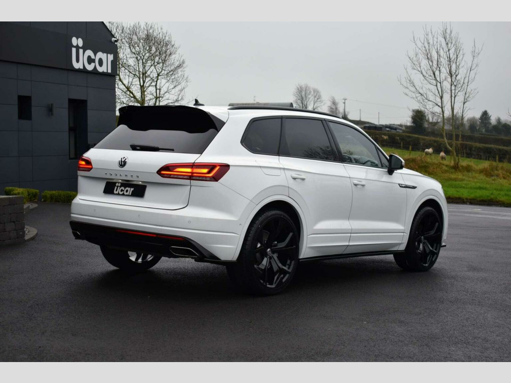 2018 Volkswagen Touareg 30 TDI R-Line Auto Finished in Pure White. Covered 70k Miles, Comes with a Full Service History and 2 Keys. Gloss Black Aero Kit , Black Pack , Reverse Camera with Park Assist , LED headlights with High Beam Assist , Adaptive Cruise Control, Sat-Nav , Heated Seats , Heated Steering Wheel , Front & Rear Parking Sensors , Bluetooth , Multi-Function Steering Wheel , Privacy Glass etc , Fitted with Brand New 23 Upgraded Alloys (optional extra upgrade £1695)