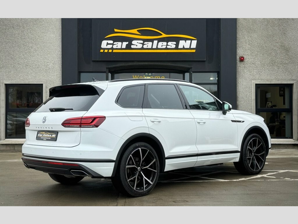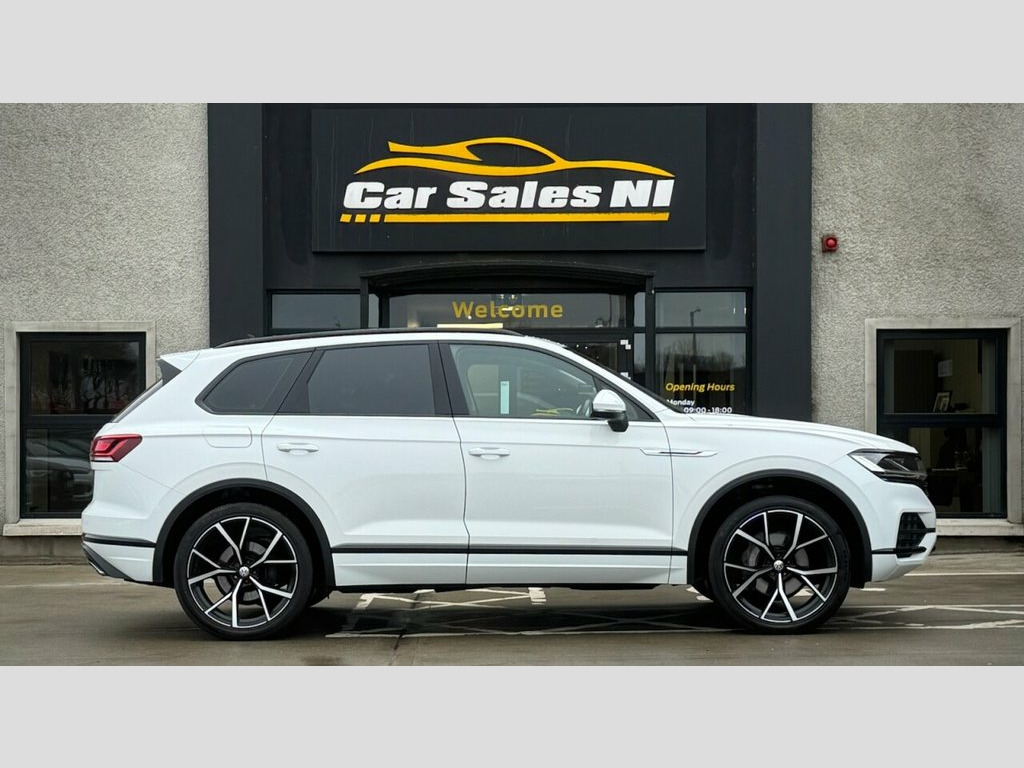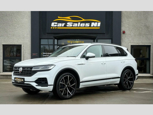 2019 VOLKSWAGEN TOUAREG SEL 4MOTION 3.0 TDI V6 228 BHP 1 Owner from new, Covered 61k miles, Finished in White, Key Features include: 22'' Upgraded alloy wheels (£1,100 Optional steering wheel) Rear Privacy glass Black Edition Styling Front and Rear Parking sensors Full Leather Interior Leather Multifunctional steering wheel Paddle shift Heated front seats Dual Climate control DAB Radio / Bluetooth / Sat Nav Drive Mode Select ISOFIX Child seat Points And so much more... Call today to arrange a test drive Tailored finance packages available to suit your needs Comprehensive warranty on all cars Trade ins welcome Delivery to North and South of Ireland if required 12V Socket x3, 19in Alloy Wheels - Osorno, 2 Zone Electronic Air Conditioning with , 4MOTION Active Control, ABS Plus - Anti-Lock Braking System with, Active Bonnet, Adaptive Cruise Control - Including Fron, Air Vents in B-Pillar, Alarm with Interior Protection - Back up, Ambient Lighting - White, Automatic Coming Home Lighting Function, Automatic Dimming Interior Rear View Mir, Automatic Headlight Control, Automatic Headlight Height Adjustment, Automatic Post-Collision Braking System, Body Coloured Door Handles, Body Coloured Door Mirrors with Integrat, Body Coloured Front and Rear Bumpers, Brushed Aluminium Air Vent Louvre, Brushed Aluminium Decorative Inserts in , Car Net - Guide and Info