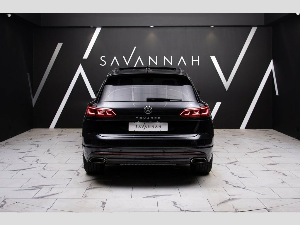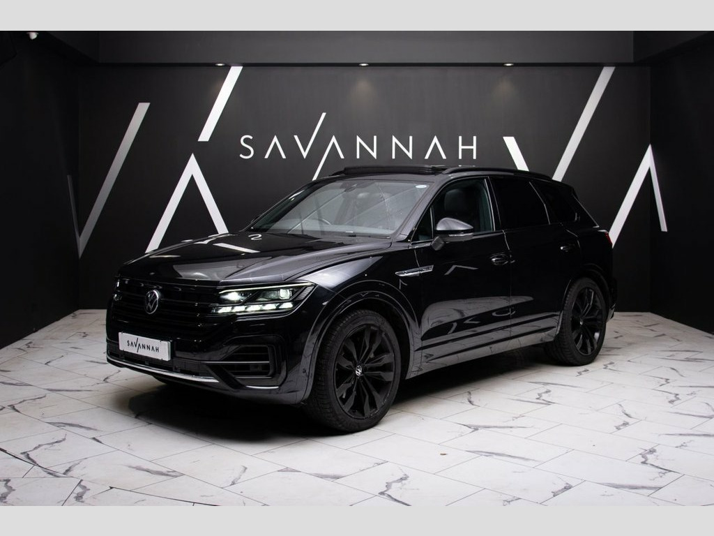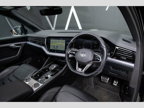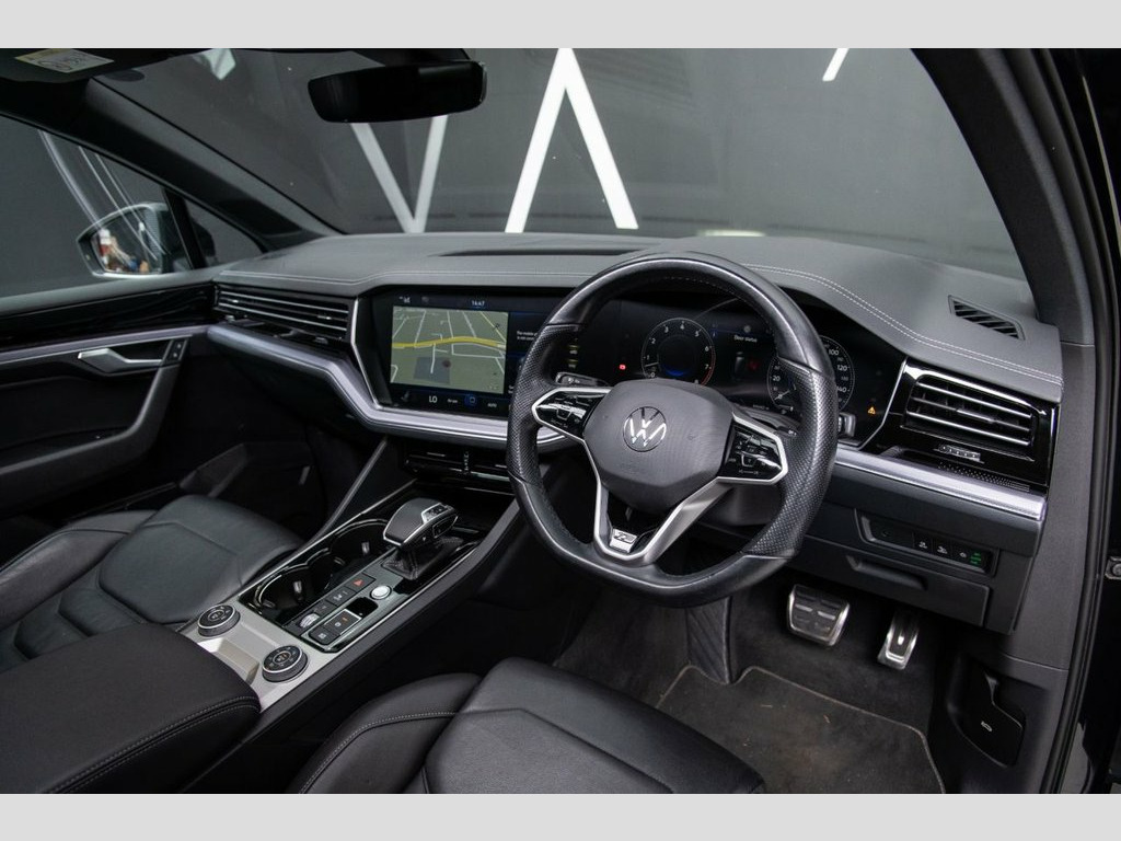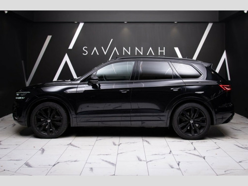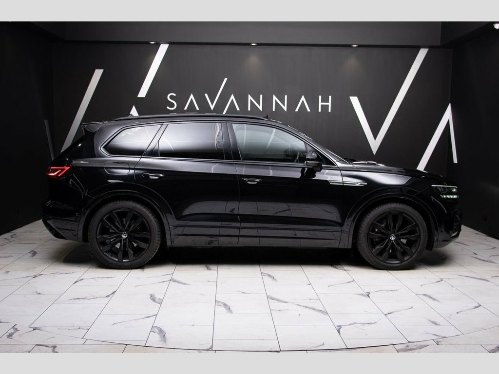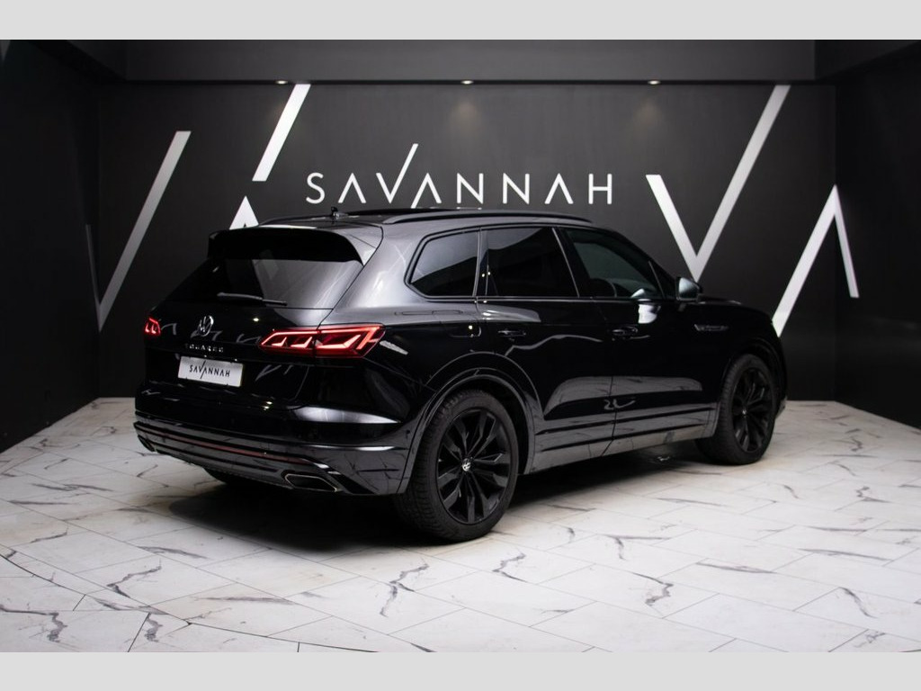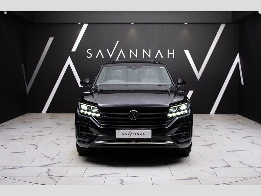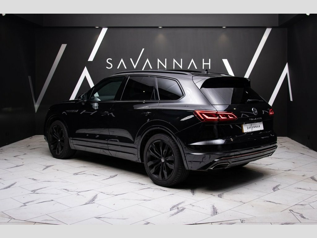 VOLKSWAGEN TOUAREG 3.0 TSI V6 Black Edition SUV 5dr Petrol Tiptronic 4Motion Euro 6 (s/s) (340 ps) combines commanding performance with luxury refinement, presented in Deep Black with striking 21-inch Suzuka Gloss Black alloys, gloss black exterior detailing, roof rails, and R-Line body styling for a bold presence. Inside, Vienna R-Line embossed ErgoComfort leather seats in Soul-Crystal Grey with full electric 14-way adjustment, a panoramic sunroof, ambient LED interior lighting, and the Innovision Cockpit with Discover Premium infotainment elevate every journey. Advanced technology includes IQ.Light LED Matrix headlights, Park Assist with Area View camera, Lane Assist, Adaptive Cruise Control, Driving Profile Selection, and 4MOTION all-wheel drive with air suspension for assured capability. Practicality meets sophistication with keyless entry, a hands-free electric tailgate, modular rear seating, four-zone climate control, laminated safety privacy glass, wireless smartphone charging, and a premium safety suite with autonomous emergency braking, traffic sign recognition, and hill descent assist, ensuring confidence in all conditions. Tyre Pressure Monitoring System, Increased Fuel Tank, Memory Pack Plus, Laminated Safety Privacy Glass, Vienna R-Line Embossed Ergo Comfort Leat, Deep Black, 12V Socket x3, 21in Alloy Wheels - Suzuka Glossy Black, 2x Type C USB Interfaces in Dashboard - , 4MOTION Active Control, ABS Plus - Anti-Lock Braking System with, Active Bonnet, Adaptive Cruise Control - Including Fron, Advanced High-Beam Control Dynamic Light, Air Suspension, Air Vents in B-Pillar, Alarm with Interior Protection - Back up, Ambient Lighting - White, Automatic Coming Home Lighting Function, Automatic Dimming Interior Rear View Mir, Automatic Headlight Control, Automatic Headlight Height Adjustment, Automatic Post-Collis