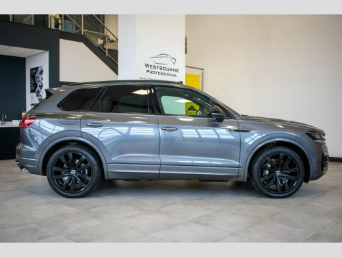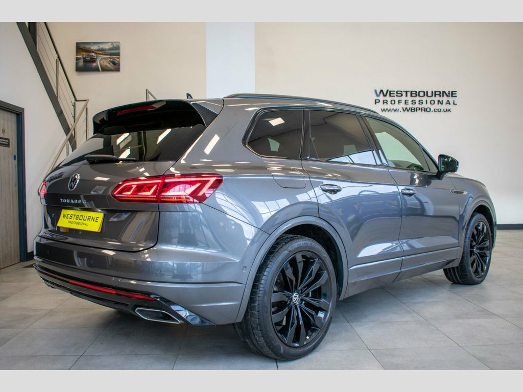 2022 '72' Volkswagen Touareg 3.0 TSI Black Edition, finished in Silicon Grey with Black Vienna Leather interior. Equipped with all Black Edition refinements including Electric Tilt & Slide Panoramic Sunroof, Digital Cockpit, ErgoComfort 14-Way Heated Electric Front Seats with Drivers Memory Function, Discover Premium Satellite Navigation & Infotainment System, Wireless App Connect for Apple CarPlay / Android Auto, 360 Degree Surround View Camera, Air Suspension, Heated Steering Wheel, Adaptive Cruise Control, Automatic LED Matrix Headlights with High Beam Control, Park Assist, Automatic 4-Zone Climate Control, Power Tailgate, Wireless Phone Charging, Lane Assist, Tyre Pressure Monitoring System, 21-inch Suzuka Alloy Wheels in Gloss Black and much more. VAT Qualifying. Silicon Grey, 21in Alloy Wheels - Suzuka Glossy Black, 4 USB Ports Located in Front Storage Com, 4 Zone Electronic Air Conditioning with , 8 Speakers - Front and Rear - 4x20 Watt , Active Bonnet, Adaptive Cruise Control ACC Including Fr, Advanced High-Beam Control Dynamic Light, Air Suspension, Alarm with Interior Protection - Back up, Armrest - Front Centre with Storage Comp, Audible and Visual Fatigue Detection Sys, Automatic Headlight Control, Automatic Slip-Control Electronic Differ, Automatically Heated Washer Nozzles, Black Decorative Trims on the Side Windo, Black Exterior Mirror Housings, Bluetooth Telephone Preparation for Hand, Carpet Mats - Front and Rear, Central Locking System w