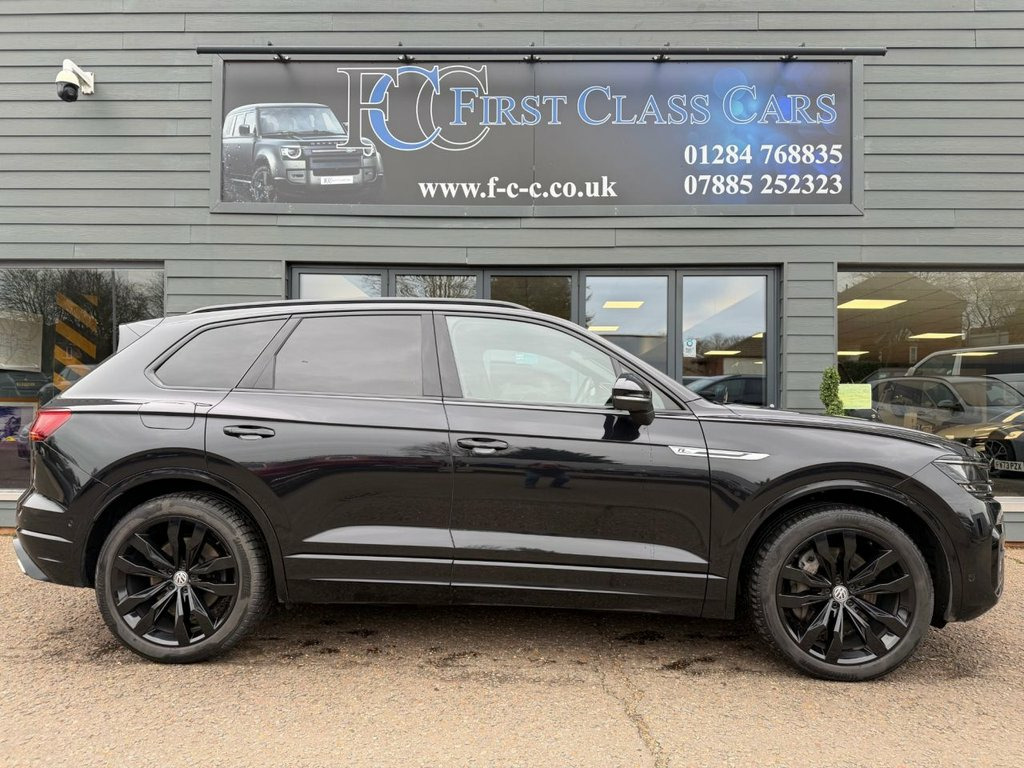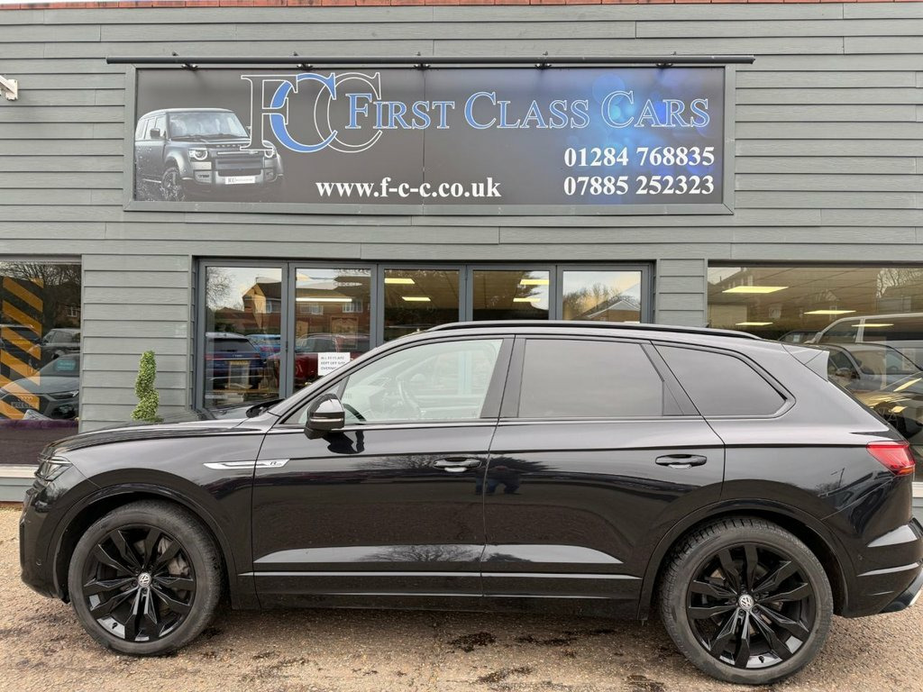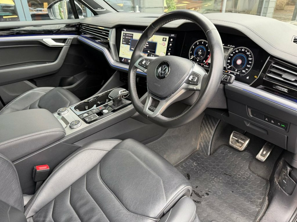 THIS VW TOUAREG V6 PETROL BLACK EDITION HAS A HUGE AMOUNT OF OPTIONS INCLUDING HEAD UP DISPLAY, NIGHT VISION, AIR SUSPENSION, UPGRADED SOUND, WINTER PACK AND MANY MORE FEATURES TO LIST. THE CAR IS FULLY SERVICED BY VOLKWAGEN. THIS CAR IS AN INCREDIBLE ALL ROUNDER WITH PERFORMANCE AND SPACE WITH ALL THE LUXURY YOU COULD WISH FOR, IT IS A MUST SEEN CAR AND GREAT VALUE FOR MONEY WITH THE LOWER RATE OF TAX OF £195.00. PLEASE CALL FOR A BESPOKE FINANCE DEAL WITH RATES FROM 8.9%APR STS AND PROFILE CHECKS. WE MAY RECEIVE A COMMISSION FROM THE LENDER ON INTRO TO THEM, ASK FOR MORE DETAILS. OPEN 6 DAYS A WEEK, CLOSED ON SUNDAYS Side Assist, Driver Assistance Pack Plus, Laminated Safety Privacy Glass, Ambient Light Pack for R -Line - Coloure, Head Up Display, Night Vision, Deep Black, Dynaudio Confidence High End Audio Syste, Manual Rear Side Windows Sunblinds, Heated Front and Rear Seats, Memory Pack Plus, 12V Socket x3, 21in Alloy Wheels - Suzuka Glossy Black, 2x Type C USB Interfaces in Dashboard - , 4MOTION Active Control, ABS Plus - Anti-Lock Braking System with, Active Bonnet, Adaptive Cruise Control - Including Fron, Advanced High-Beam Control Dynamic Light, Air Suspension, Air Vents in B-Pillar, Alarm with Interior Protection - Back up, Ambient Lighting - White, Automatic Coming Home Lighting Function, Autom