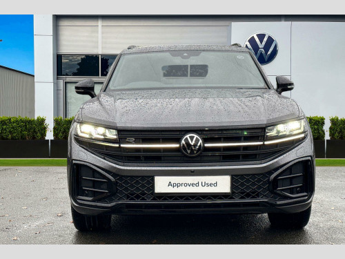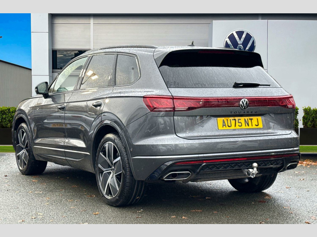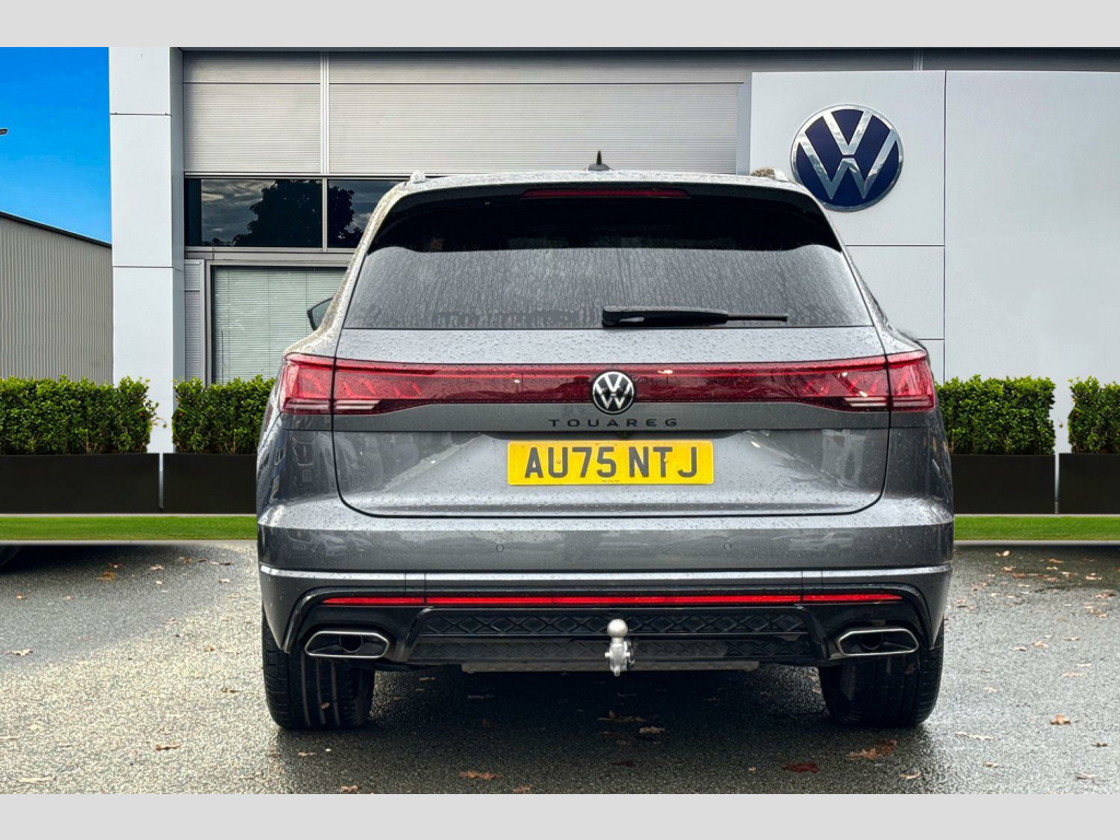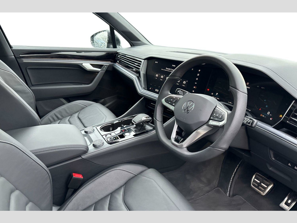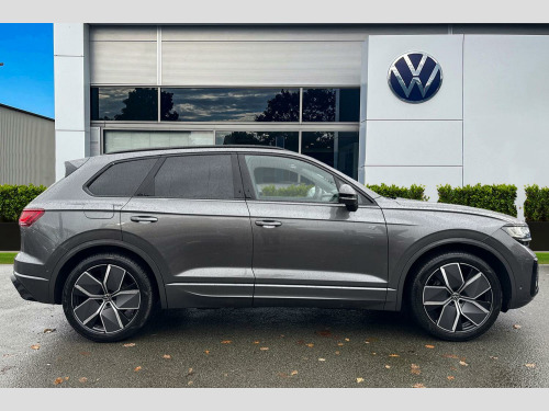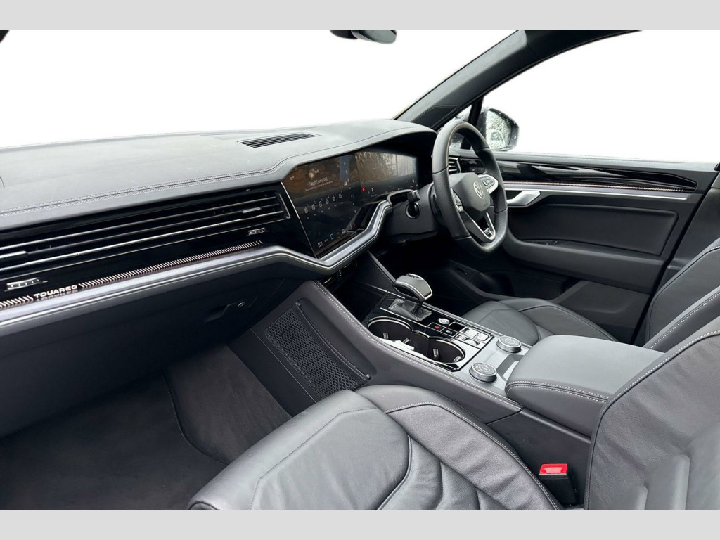 21in Alloy Wheels - Leeds Black - Diamond Turned Surface, Towbar - Power Folding with Trailer Assist, Rain sensor, Rear wiper, Adaptive chassis control, Black style comfort bumpers, Electric front tilt/slide panoramic sunroof and fixed rear sunroof, External USB type C socket and charging sockets, Gloss black roof rails, Rear exhaust tailpipe, Rear side wing doors, Stainless steel door sill protection, Automatic coming/leaving home lighting function, Automatic headlights, Dynamic headlight range control with dynamic cornering light, HD LED Matrix beam plus digital headlight projection with variable light distribution, Headlight washers, Highway light, LED 3rd brake light, LED daytime running lights, LED rear combination lamp with variable lighting functions and special styling, Poor weather light, Rear fog light with back up light on both sides, Rear light bar and illuminated logo, ABS, Front assist, Generative braking with start and stop system, Adaptive cruise control, Advanced driver attention and drowsiness monitor, Driver profile selection, Dynamic road sign display, Intelligent park assist, Park Assist - Sensor controlled steering aid to assist parallel or bay parking, PAS, Black door mirrors, Electrically power adjustable, heated, folding, auto dimming, front passenger exterior door mirror lowering function, 3 point seatbelts, outer rear with ECE lable, Child locks on rear doors, Curtain airbags, Driver and front passenger safety-optimised head restraints, Driver/Front Passenger airbags, Extended pedestrian protection measures, Front seat side impact airbags, Height adjustable 3 point front seatbelts with pre tensioners, Passenger airbag deactivate switch, Three 3 point rear seatbelts, Two tone horn, Warning triangle and first aid kit, Front + rear carpet mats, 4 zone climate control, 12V socket in centre console, Airbag label on sun visor and B-pillar, Brushed stainless steel pedals, Front centre armrest, Leather wrapped multifunction sports steering wheel, heated, with touch control and shift paddles, Double sun visors with illuminated vanity mirrors, E-Sim card for online connectivity, Mobile phone interface with inductive charging, Wireless app connect, DAB Digital radio, Diversity antenna for AM/ FM reception, We Connect and We Connect Plus functionality, eCall emergency system, 15" Screen Top infotainment system Premium (MIB3), Innovision cockpit, Multi-colour Active Info display, Warning signal and warning light for front and rear seatbelts not fastened, Aluminium decorative inserts, Black decorative trims, Gloss black decorative inserts in centre console, 3 rear headrests, 3 seat bench in 2nd row, Mechanical rear seat release, Power adjustable lumbar support in front, Power seats in front, right side with memory features and seat cushion depth adjustment, Rear seat backrest and split folding with center armrest, Single front passenger seat, Memory pack plus - Touareg, Alarm system with interior protection, Easy open and close sensor controlled luggage compartment opening and closing with remote unlocking, Keyless Access Keyless locking and starting system with SAFELOCK, Tool kit