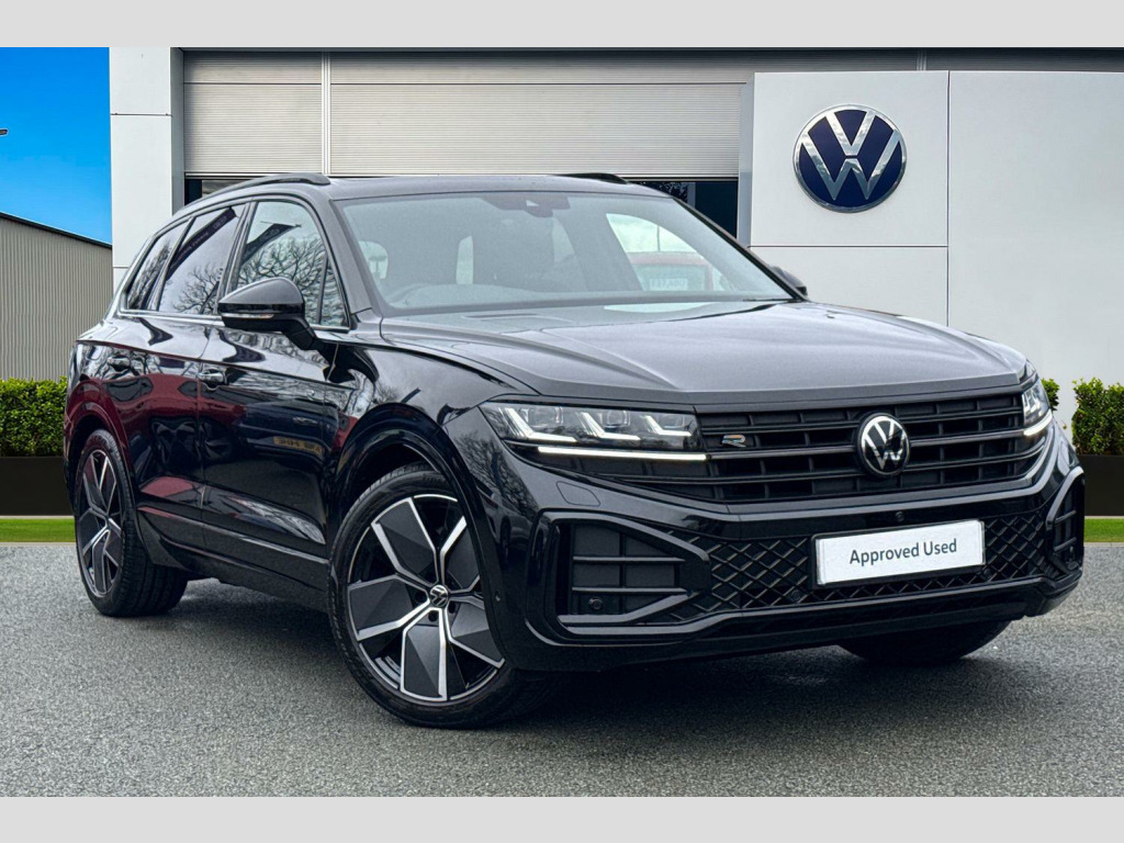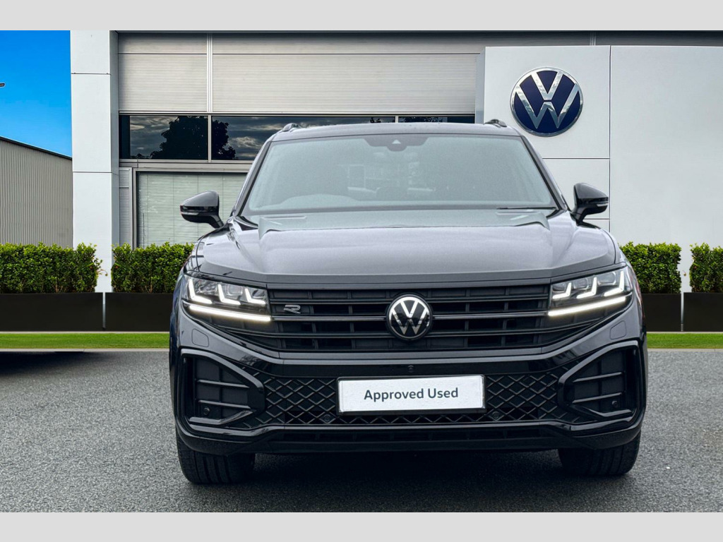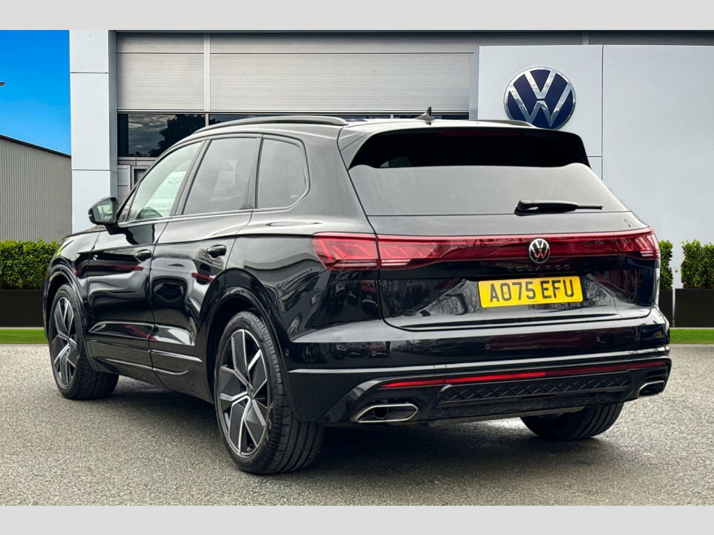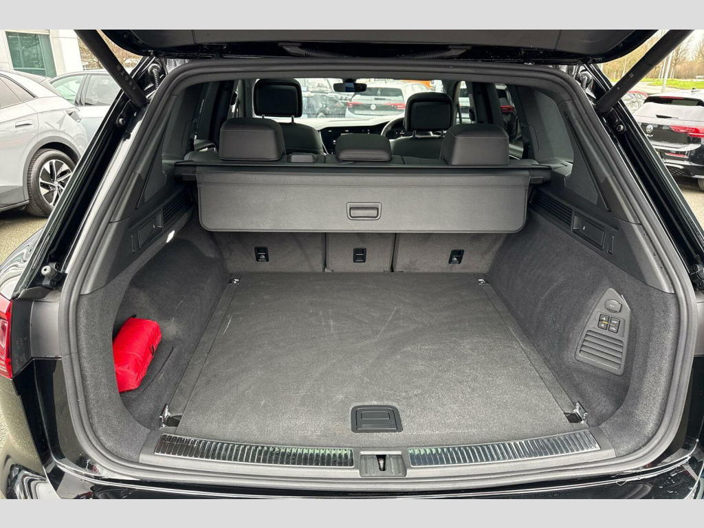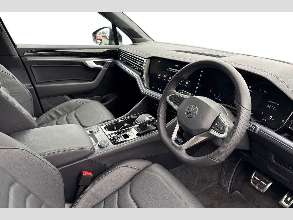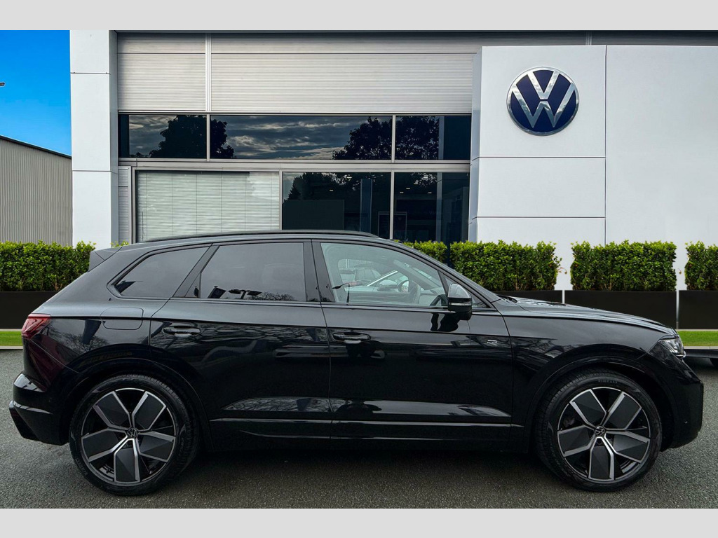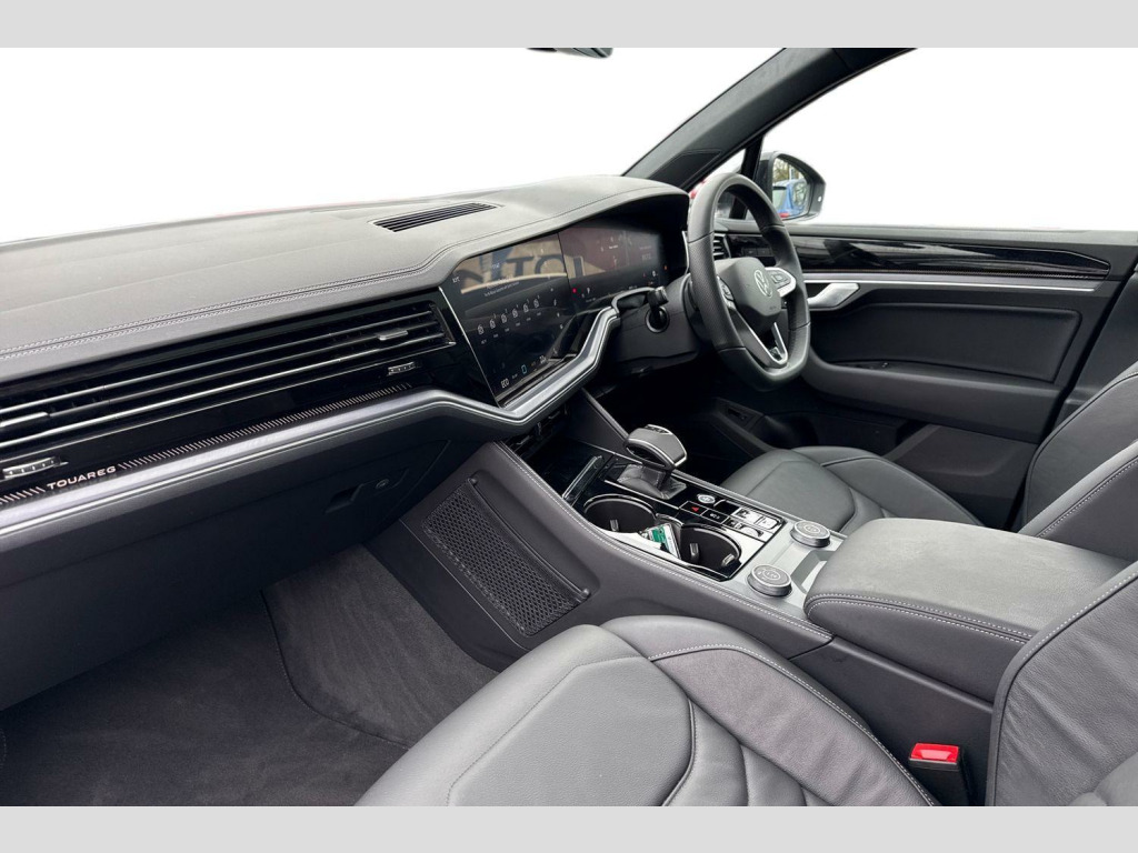 21in Alloy Wheels - Leeds Black - Diamond Turned Surface, Towbar - Power Folding with Trailer Assist, Air suspension, Metallic paint, Park assist with area view camera, Varenna leather upholstery, 21" Leeds diamond turned alloy wheels with anti theft wheel bolts, Metallic - Grenadilla black, Tow bar power folding with trailer assist, Varenna leather - Soul black with crystal grey, Heat insulating darkened glass in side and rear windows, Privacy glass for rear side windows and rear window, tinted glass from B pillar backwards - 80%, Rain sensor, Rear wiper, Adaptive chassis control, Black style comfort bumpers, Electric front tilt/slide panoramic sunroof and fixed rear sunroof, External USB type C socket and charging sockets, Gloss black roof rails, Rear exhaust tailpipe, Rear side wing doors, Stainless steel door sill protection, Automatic coming/leaving home lighting function, Automatic headlights, Dynamic headlight range control with dynamic cornering light, HD LED Matrix beam plus digital headlight projection with variable light distribution, Headlight washers, Highway light, LED 3rd brake light, LED daytime running lights, LED rear combination lamp with variable lighting functions and special styling, Poor weather light, Rear fog light with back up light on both sides, Rear light bar and illuminated logo, ABS, Front assist, Generative braking with start and stop system, Adaptive cruise control, Advanced driver attention and drowsiness monitor, Driver profile selection, Dynamic road sign display, Intelligent park assist, Park Assist - Sensor controlled steering aid to assist parallel or bay parking, PAS, Black door mirrors, Electrically power adjustable, heated, folding, auto dimming, front passenger exterior door mirror lowering function, 3 point seatbelts, outer rear with ECE lable, Child locks on rear doors, Curtain airbags, Driver and front passenger safety-optimised head restraints, Driver/Front Passenger airbags, Extended pedestrian protection measures, Front seat side impact airbags, Height adjustable 3 point front seatbelts with pre tensioners, Passenger airbag deactivate switch, Three 3 point rear seatbelts, Two tone horn, Warning triangle and first aid kit, Front + rear carpet mats, 4 zone climate control, 12V socket in centre console, Airbag label on sun visor and B-pillar, Brushed stainless steel pedals, Front centre armrest, Leather wrapped multifunction sports steering wheel, heated, with touch control and shift paddles, Double sun visors with illuminated vanity mirrors, E-Sim card for online connectivity, Mobile phone interface with inductive charging, Wireless app connect, DAB Digital radio, Diversity antenna for AM/ FM reception, We Connect and We Connect Plus functionality, eCall emergency system, 15" Screen Top infotainment system Premium (MIB3), Innovision cockpit, Multi-colour Active Info display, Warning signal and warning light for front and rear seatbelts not fastened, Aluminium decorative inserts, Black decorative trims, Gloss black decorative inserts in centre console, 3 rear headrests, 3 seat bench in 2nd row, Mechanical rear seat release, Power adjustable lumbar support in front, Power seats in front, right side with memory features and seat cushion depth adjustment, Rear seat backrest and split folding with center armrest, Single front passenger seat, Extra acoustics pack - Touareg, Memory pack plus - Touareg, Alarm system with interior protection, Easy open and close sensor controlled luggage compartment opening and closing with remote unlocking, Keyless Access Keyless locking and starting system with SAFELOCK, Tool kit