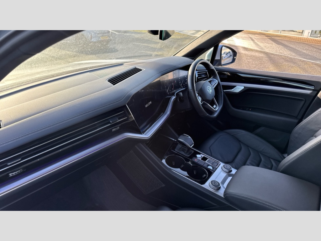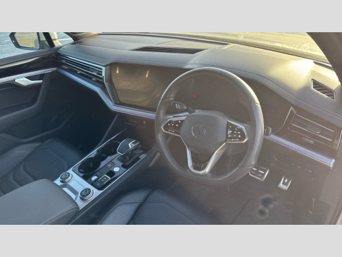 Volkswagen Touareg 3.0 V6 TDI 4M 231 R-Line Tech Plus 5dr Tip Auto 2D/3D map view, ACC - Adaptive cruise control with front assist, forward collision warning, distance monitoring, city emergency brake and speed limiter, Apple car play/Android Auto, Audible and visual fatigue detection system, Bluetooth hands free telephone connection, Car information display, Drive select with Damper control, Driver alert system, Driving Mode Selection with four preset modes - Eco, normal, sport or individual modes, Dynamic road sign display camera controlled system with visual warning for traffic and road signs, eCall emergency system, Fully electric tailgate + keyless entry and start, Instrument cluster, MirrorLink, Multifunction camera, Multifunction computer premium with 7" colour display, One touch indicators with repeat function, Service interval indicator, Speed sensitive power steering, Start/stop system with regenerative braking, Think blue trainer driver tips and journey analysis, Traffic sign recognition, Voice control system, Wireless Smartphone charger, 24 litre AdBlue tank, Torsen limited slip differential, DAB Digital radio, Dynamic navigation based on TMC+, Gesture control for infotainment system, Multi device interface (MDI) with illuminated USB-C connection, Music playback - MP3, WMA and AAC files, SD card slot, Simultaneous pairing of 2 compatible mobile devices, SMS functionality - read, compose and send SMS messages using touch-screen display, Title and cover art display, Volkswagen media control, Adaptive low beam for urban and motorway use, Auto dimming rear view mirror, Automatic coming/leaving home lighting function, Automatic headlights, Black roof rails, Body colour door handles, Body colour door mirrors with integral indicators, Body coloured wheel arches, C signature gloss black front air intake, Chrome trimmed radiator grille and air intake, Chrome trimmed side windows, Chromed tailpipe on the left and right integrated in the bumper with trapezoid design, Dusk sensor, Dynamic headlight range control, Electric front tilt/slide panoramic sunroof and fixed rear sunroof, Electrically power adjustable, heated, folding, auto dimming, front passenger exterior door mirror lowering function, Front and rear electric windows, Full LED headlights and LED tail lights, Galvanised body, Gloss black finish B pillar, Gloss black rear diffuser, Heat insulating darkened glass in side and rear windows, Heated laminated windscreen with acoustic noise reduction, Heated windscreen washer jets, LED 3rd brake light, LED cornering headlights, LED daytime running lights, LED Indicators, LED rear fog light, LED rear number plate lights, Plastic scuff plates in door apertures, Poor weather light, Puddle lights, Rain sensor, Rear side wing doors, Rear wiper, 12V socket in front and rear centre console and boot, 2 Coat hooks on B pillar, 3 rear head restraints, 3 seat bench in 2nd row, 3 spoke sport heated leather multi-function sports steering wheel with gear shift paddles - generation 2, 4 way adjustable front head restraints, 4 zone climate control, 40:20:40 split folding slide/recline rear seat, B pillar vents, Branded points of interest, Double sun visor for drivier and passenger with LED illuminated vanity mirrors, Electric luggage compartment cover, Folding rear centre armrest with 2 cupholders, Front + rear carpet mats, Front centre armrest with storage box, Front seats with R-line logo on seat backrest, Gear shift indicator, Height/reach adjust steering wheel, Illuminated air conditioned glovebox, Isofix preparation for 2 rear child seats, Jack and tool kit, Leather trimmed gear knob with gloss black inlay/aluminum trim, Leatherette door trim, LED luggage compartment lighting, Load through provision, Luggage compartment with load lashing rings, Plastic loading edge protection, R Line badge, Rear seat remote release levers, Single front passenger seat, Soul black headlining, Stainless steel pedals, Ambient Light Pack Coloured - Touareg R Line, Innovision cockpit pack - Touareg, 3 point front seatbelts with pre-tensioners, ABS, Active bonnet, Automatic post collision braking system, Curtain airbags, Driver/Front Passenger airbags, EBD + Brake Assist, EDL, Electronic parking brake with auto hold, ESC with ASR, Front seat side impact airbags, Hill descent control, Hill start assist, Passenger airbag deactivate switch, Seatbelt warning lamp and buzzer, Three 3 point rear seatbelts, Two tone horn, Volkswagen roadside assistance, Warning triangle and first aid kit, Alarm with interior monitoring in cab, backup horn and towing protection, Child security locks for front and rear doors, Electronic engine immobiliser, Remote central locking, High gloss black centre console, Silver wave design aluminium decorative inlays