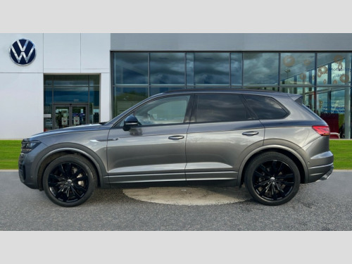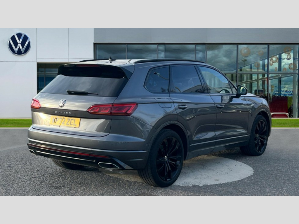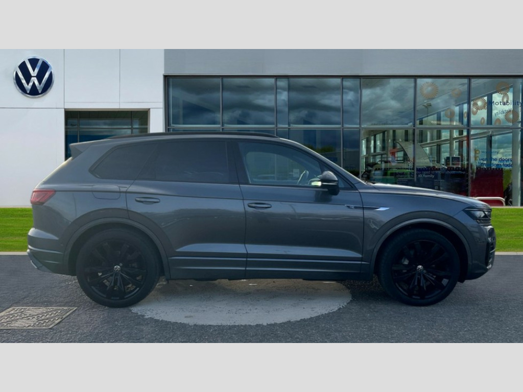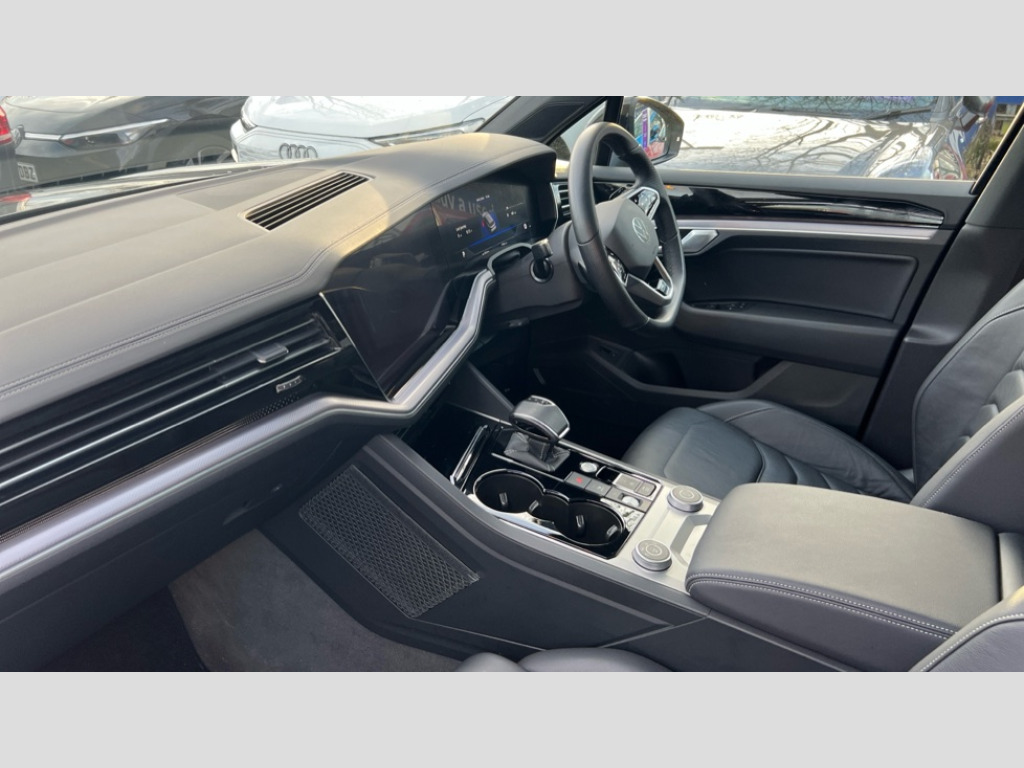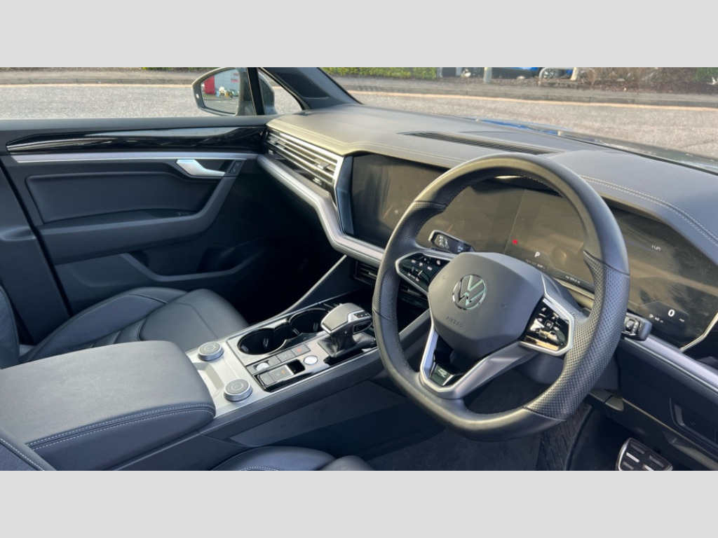 Volkswagen Touareg 3.0 V6 TDI 4Motion 231 Black Edition 5dr Tip Auto 2D/3D map view, ACC - Adaptive cruise control with front assist, forward collision warning, distance monitoring, city emergency brake and speed limiter, Apple car play/Android Auto, Audible and visual fatigue detection system, Bluetooth hands free telephone connection, Car information display, Drive select with Damper control, Driver alert system, Driver profile selection, Dynamic road sign display camera controlled system with visual warning for traffic and road signs, eCall emergency system, Fully electric tailgate + keyless entry and start, Instrument cluster, MirrorLink, Multifunction camera, Multifunction computer premium with 7" colour display, One touch indicators with repeat function, Service interval indicator, Speed sensitive power steering, Start/stop system with regenerative braking, Tailgate power latch, Think blue trainer driver tips and journey analysis, Traffic sign recognition, Voice control system, Wireless Smartphone charger, 24 litre AdBlue tank, Torsen limited slip differential, DAB Digital radio, Dynamic navigation based on TMC+, Gesture control for infotainment system, Multi device interface (MDI) with illuminated USB-C connection, Music playback - MP3, WMA and AAC files, SD card slot, Simultaneous pairing of 2 compatible mobile devices, SMS functionality - read, compose and send SMS messages using touch-screen display, Title and cover art display, Volkswagen media control, Adaptive low beam for urban and motorway use, Auto dimming rear view mirror, Automatic coming/leaving home lighting function, Automatic headlights, Black anodised roof rails, Black door mirrors, Black rear diffuser, Black side window surrounds, Black upper and lower grille louvres extending into headlights and radiator grille, Body colour door handles, Body coloured wheel arches, C signature gloss black front air intake, Chromed tailpipe on the left and right integrated in the bumper with trapezoid design, Dusk sensor, Dynamic headlight range control, Electric front tilt/slide panoramic sunroof and fixed rear sunroof, Electrically power adjustable, heated, folding, auto dimming, front passenger exterior door mirror lowering function, Front and rear electric windows, Galvanised body, Gloss black finish B pillar, Gloss black rear diffuser, Headlight washers, Heat insulating darkened glass in side and rear windows, Heated windscreen washer jets, IQ.Light-LED matrix headlight,daytime running light with dynamic cornering light and indicator, LED 3rd brake light, LED rear fog light, LED rear number plate lights, Plastic scuff plates in door apertures, Poor weather light, Puddle lights, Rain sensor, Rear side wing doors, Rear wiper, 12V socket in front and rear centre console and boot, 2 Coat hooks on B pillar, 3 rear head restraints, 3 seat bench in 2nd row, 3 spoke sport heated leather multi-function sports steering wheel with gear shift paddles - generation 2, 4 way adjustable front head restraints, 4 way electric lumbar support for driver and front passenger, 4 zone climate control, 40:20:40 split folding slide/recline rear seat, B pillar vents, Black lower edge of door extending sills, Branded points of interest, Double sun visor for drivier and passenger with LED illuminated vanity mirrors, Electric luggage compartment cover, Folding rear centre armrest with 2 cupholders, Front + rear carpet mats, Front centre armrest with storage box, Gear shift indicator, Height/reach adjust steering wheel, Illuminated air conditioned glovebox, Isofix preparation for 2 rear child seats, Jack and tool kit, Leather trimmed gear knob with gloss black inlay/aluminum trim, Leatherette door trim, LED luggage compartment lighting, Load through provision, Luggage compartment with load lashing rings, Plastic loading edge protection, Rear seat remote release levers, Single front passenger seat, Soul black headlining, Stainless steel pedals, Innovision cockpit pack - Touareg, 3 point front seatbelts with pre-tensioners, ABS, Active bonnet, Automatic post collision braking system, Curtain airbags, Driver/Front Passenger airbags, EBD + Brake Assist, EDL, Electronic parking brake with auto hold, ESC with ASR, Front seat side impact airbags, Hill descent control, Hill start assist, Passenger airbag deactivate switch, Seatbelt warning lamp and buzzer, Three 3 point rear seatbelts, Two tone horn, Volkswagen roadside assistance, Warning triangle and first aid kit, Alarm with interior monitoring in cab, backup horn and towing protection, Child security locks for front and rear doors, Electronic engine immobiliser, Remote central locking, Black decorative trims on the side windows, High gloss black centre console