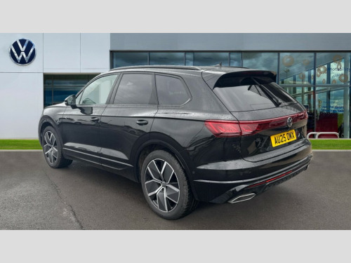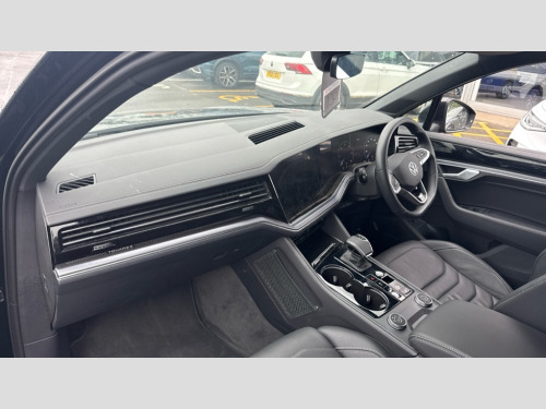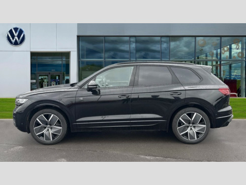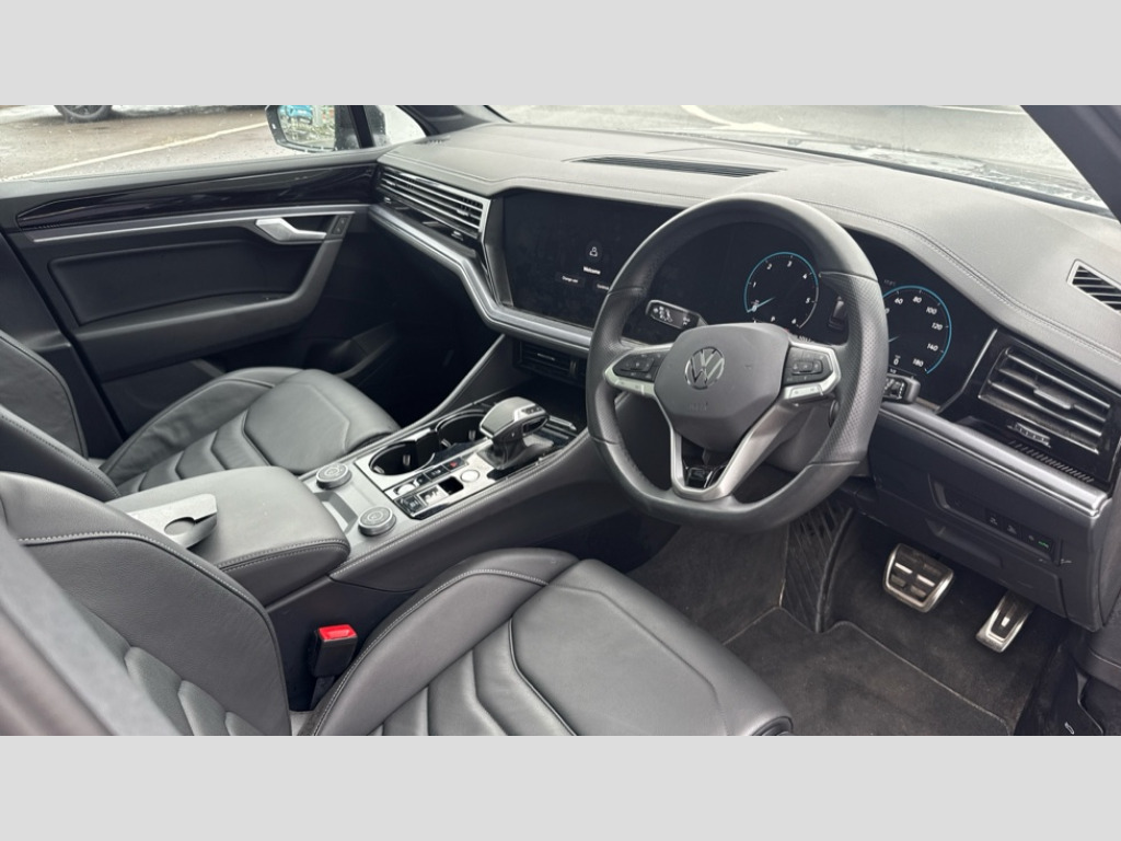 Volkswagen Touareg 3.0 V6 TDI 4Motion 286 Black Edition 5dr Tip Auto 15" Screen Top infotainment system Premium (MIB3), Adaptive cruise control, Advanced driver attention and drowsiness monitor, Driver profile selection, Dynamic road sign display, E-Sim card for online connectivity, eCall emergency system, Innovision cockpit, Intelligent park assist, Mobile phone interface with inductive charging, Multi-colour Active Info display, Park Assist - Sensor controlled steering aid to assist parallel or bay parking, PAS, Warning signal and warning light for front and rear seatbelts not fastened, Wireless app connect, Adaptive chassis control, DAB Digital radio, Diversity antenna for AM/ FM reception, We Connect and We Connect Plus functionality, Automatic coming/leaving home lighting function, Automatic headlights, Black door mirrors, Black style comfort bumpers, Dynamic headlight range control with dynamic cornering light, Electric front tilt/slide panoramic sunroof and fixed rear sunroof, Electrically power adjustable, heated, folding, auto dimming, front passenger exterior door mirror lowering function, External USB type C socket and charging sockets, Gloss black roof rails, HD LED Matrix beam plus digital headlight projection with variable light distribution, Headlight washers, Highway light, LED 3rd brake light, LED daytime running lights, LED rear combination lamp with variable lighting functions and special styling, Poor weather light, Rain sensor, Rear exhaust tailpipe, Rear fog light with back up light on both sides, Rear light bar and illuminated logo, Rear side wing doors, Rear wiper, Stainless steel door sill protection, 12V socket in centre console, 3 rear headrests, 3 seat bench in 2nd row, 4 zone climate control, Airbag label on sun visor and B-pillar, Brushed stainless steel pedals, Double sun visors with illuminated vanity mirrors, Front + rear carpet mats, Front centre armrest, Leather wrapped multifunction sports steering wheel, heated, with touch control and shift paddles, Mechanical rear seat release, Power adjustable lumbar support in front, Power seats in front, right side with memory features and seat cushion depth adjustment, Rear seat backrest and split folding with center armrest, Single front passenger seat, Memory pack plus - Touareg, 3 point seatbelts, outer rear with ECE lable, ABS, Child locks on rear doors, Curtain airbags, Driver and front passenger safety-optimised head restraints, Driver/Front Passenger airbags, Extended pedestrian protection measures, Front assist, Front seat side impact airbags, Generative braking with start and stop system, Height adjustable 3 point front seatbelts with pre tensioners, Passenger airbag deactivate switch, Three 3 point rear seatbelts, Two tone horn, Tyre pressure loss indicator, Warning triangle and first aid kit, Alarm system with interior protection, Easy open and close sensor controlled luggage compartment opening and closing with remote unlocking, Keyless Access Keyless locking and starting system with SAFELOCK, Aluminium decorative inserts, Black decorative trims, Gloss black decorative inserts in centre console, Tool kit
