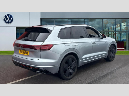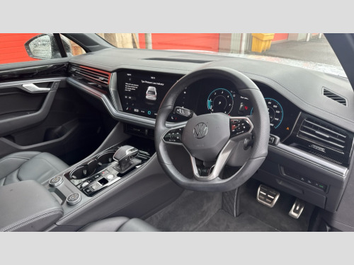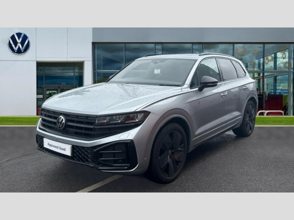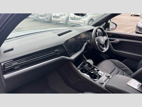Volkswagen Touareg 3.0 V6 TDI 4Motion 286 Black Edition 5dr Tip Auto 15" Screen Top infotainment system Premium (MIB3), Adaptive cruise control, Advanced driver attention and drowsiness monitor, Driver profile selection, Dynamic road sign display, E-Sim card for online connectivity, eCall emergency system, Innovision cockpit, Intelligent park assist, Mobile phone interface with inductive charging, Multi-colour Active Info display, Park Assist - Sensor controlled steering aid to assist parallel or bay parking, PAS, Warning signal and warning light for front and rear seatbelts not fastened, Wireless app connect, Adaptive chassis control, DAB Digital radio, Diversity antenna for AM/ FM reception, We Connect and We Connect Plus functionality, Automatic coming/leaving home lighting function, Automatic headlights, Black door mirrors, Black style comfort bumpers, Dynamic headlight range control with dynamic cornering light, Electric front tilt/slide panoramic sunroof and fixed rear sunroof, Electrically power adjustable, heated, folding, auto dimming, front passenger exterior door mirror lowering function, External USB type C socket and charging sockets, Gloss black roof rails, HD LED Matrix beam plus digital headlight projection with variable light distribution, Headlight washers, Highway light, LED 3rd brake light, LED daytime running lights, LED rear combination lamp with variable lighting functions and special styling, Poor weather light, Rain sensor, Rear exhaust tailpipe, Rear fog light with back up light on both sides, Rear light bar and illuminated logo, Rear side wing doors, Rear wiper, Stainless steel door sill protection, 12V socket in centre console, 3 rear headrests, 3 seat bench in 2nd row, 4 zone climate control, Airbag label on sun visor and B-pillar, Brushed stainless steel pedals, Double sun visors with illuminated vanity mirrors, Front + rear carpet mats, Front centre armrest, Leather wrapped multifunction sports steering wheel, heated, with touch control and shift paddles, Mechanical rear seat release, Power adjustable lumbar support in front, Power seats in front, right side with memory features and seat cushion depth adjustment, Rear seat backrest and split folding with center armrest, Single front passenger seat, Memory pack plus - Touareg, 3 point seatbelts, outer rear with ECE lable, ABS, Child locks on rear doors, Curtain airbags, Driver and front passenger safety-optimised head restraints, Driver/Front Passenger airbags, Extended pedestrian protection measures, Front assist, Front seat side impact airbags, Generative braking with start and stop system, Height adjustable 3 point front seatbelts with pre tensioners, Passenger airbag deactivate switch, Three 3 point rear seatbelts, Two tone horn, Tyre pressure loss indicator, Warning triangle and first aid kit, Alarm system with interior protection, Easy open and close sensor controlled luggage compartment opening and closing with remote unlocking, Keyless Access Keyless locking and starting system with SAFELOCK, Aluminium decorative inserts, Black decorative trims, Gloss black decorative inserts in centre console, Tool kit