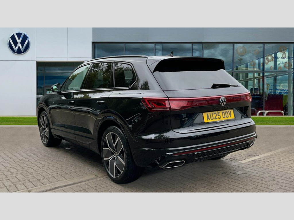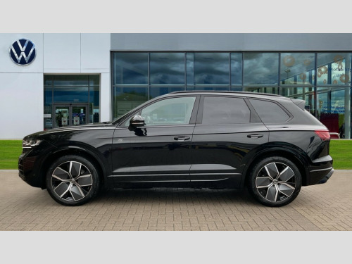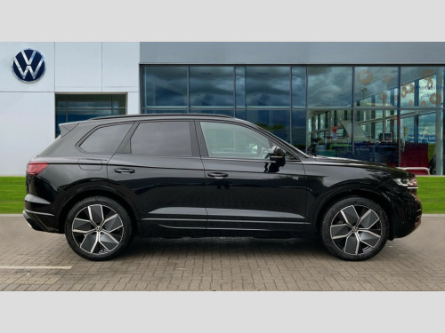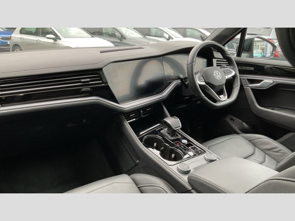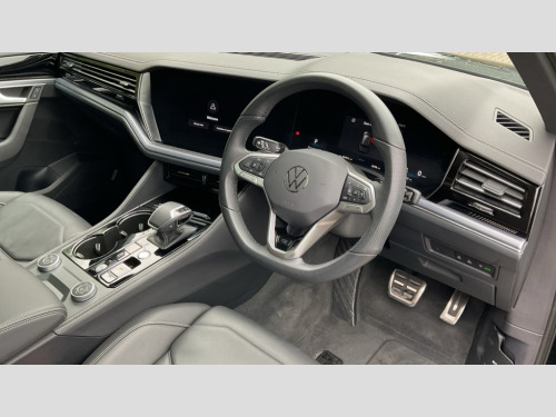 Volkswagen Touareg 3.0 V6 TDI 4Motion 286 Black Edition 5dr Tip Auto 15" Screen Top infotainment system Premium (MIB3), Adaptive cruise control, Advanced driver attention and drowsiness monitor, Driver profile selection, Dynamic road sign display, E-Sim card for online connectivity, eCall emergency system, Innovision cockpit, Intelligent park assist, Mobile phone interface with inductive charging, Multi-colour Active Info display, Park Assist - Sensor controlled steering aid to assist parallel or bay parking, PAS, Warning signal and warning light for front and rear seatbelts not fastened, Wireless app connect, Adaptive chassis control, DAB Digital radio, Diversity antenna for AM/ FM reception, We Connect and We Connect Plus functionality, Automatic coming/leaving home lighting function, Automatic headlights, Black door mirrors, Black style comfort bumpers, Dynamic headlight range control with dynamic cornering light, Electric front tilt/slide panoramic sunroof and fixed rear sunroof, Electrically power adjustable, heated, folding, auto dimming, front passenger exterior door mirror lowering function, External USB type C socket and charging sockets, Gloss black roof rails, HD LED Matrix beam plus digital headlight projection with variable light distribution, Headlight washers, Highway light, LED 3rd brake light, LED daytime running lights, LED rear combination lamp with variable lighting functions and special styling, Poor weather light, Rain sensor, Rear exhaust tailpipe, Rear fog light with back up light on both sides, Rear light bar and illuminated logo, Rear side wing doors, Rear wiper, Stainless steel door sill protection, 12V socket in centre console, 3 rear headrests, 3 seat bench in 2nd row, 4 zone climate control, Airbag label on sun visor and B-pillar, Brushed stainless steel pedals, Double sun visors with illuminated vanity mirrors, Front + rear carpet mats, Front centre armrest, Leather wrapped multifunction sports steering wheel, heated, with touch control and shift paddles, Mechanical rear seat release, Power adjustable lumbar support in front, Power seats in front, right side with memory features and seat cushion depth adjustment, Rear seat backrest and split folding with center armrest, Single front passenger seat, Memory pack plus - Touareg, 3 point seatbelts, outer rear with ECE lable, ABS, Child locks on rear doors, Curtain airbags, Driver and front passenger safety-optimised head restraints, Driver/Front Passenger airbags, Extended pedestrian protection measures, Front assist, Front seat side impact airbags, Generative braking with start and stop system, Height adjustable 3 point front seatbelts with pre tensioners, Passenger airbag deactivate switch, Three 3 point rear seatbelts, Two tone horn, Tyre pressure loss indicator, Warning triangle and first aid kit, Alarm system with interior protection, Easy open and close sensor controlled luggage compartment opening and closing with remote unlocking, Keyless Access Keyless locking and starting system with SAFELOCK, Aluminium decorative inserts, Black decorative trims, Gloss black decorative inserts in centre console, Tool kit