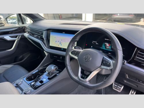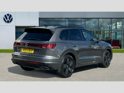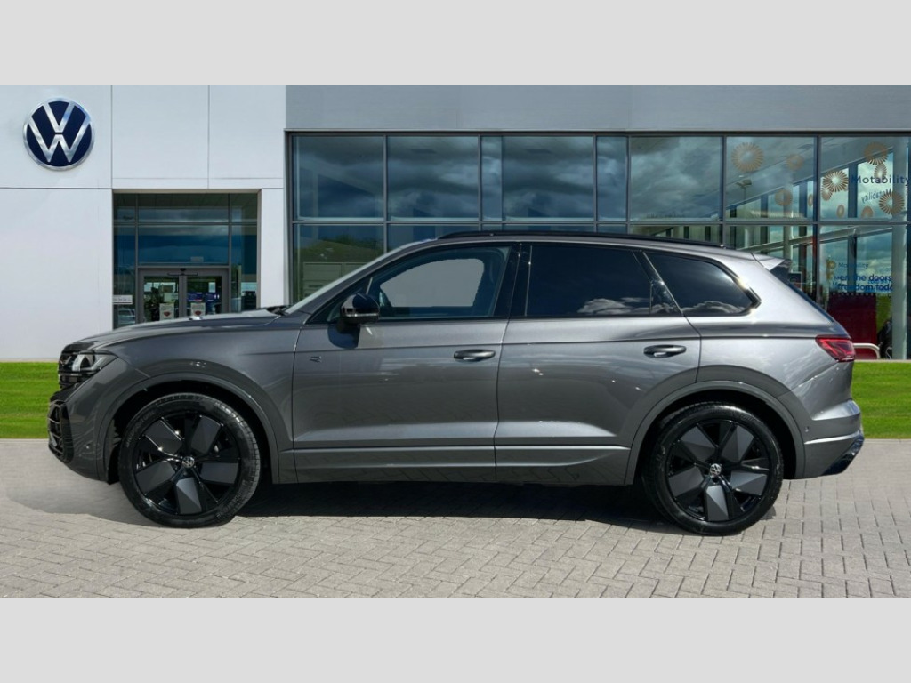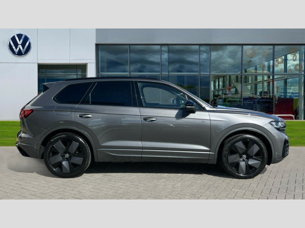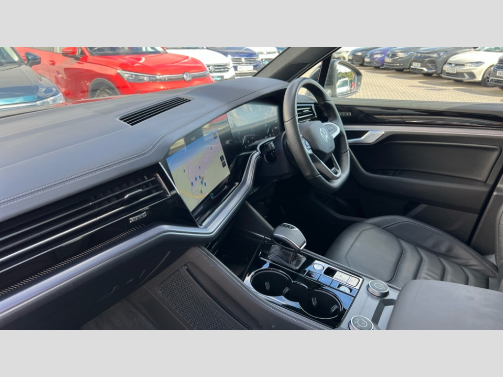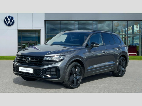 Volkswagen Touareg 3.0 V6 TDI 4Motion 286 Black Edition 5dr Tip Auto 15" Screen Top infotainment system Premium (MIB3), Adaptive cruise control, Advanced driver attention and drowsiness monitor, Driver profile selection, Dynamic road sign display, E-Sim card for online connectivity, eCall emergency system, Innovision cockpit, Intelligent park assist, Mobile phone interface with inductive charging, Multi-colour Active Info display, Park Assist - Sensor controlled steering aid to assist parallel or bay parking, PAS, Warning signal and warning light for front and rear seatbelts not fastened, Wireless app connect, Adaptive chassis control, DAB Digital radio, Diversity antenna for AM/ FM reception, We Connect and We Connect Plus functionality, Automatic coming/leaving home lighting function, Automatic headlights, Black door mirrors, Black style comfort bumpers, Dynamic headlight range control with dynamic cornering light, Electric front tilt/slide panoramic sunroof and fixed rear sunroof, Electrically power adjustable, heated, folding, auto dimming, front passenger exterior door mirror lowering function, External USB type C socket and charging sockets, Gloss black roof rails, HD LED Matrix beam plus digital headlight projection with variable light distribution, Headlight washers, Highway light, LED 3rd brake light, LED daytime running lights, LED rear combination lamp with variable lighting functions and special styling, Poor weather light, Rain sensor, Rear exhaust tailpipe, Rear fog light with back up light on both sides, Rear light bar and illuminated logo, Rear side wing doors, Rear wiper, Stainless steel door sill protection, 12V socket in centre console, 3 rear headrests, 3 seat bench in 2nd row, 4 zone climate control, Airbag label on sun visor and B-pillar, Brushed stainless steel pedals, Double sun visors with illuminated vanity mirrors, Front + rear carpet mats, Front centre armrest, Leather wrapped multifunction sports steering wheel, heated, with touch control and shift paddles, Mechanical rear seat release, Power adjustable lumbar support in front, Power seats in front, right side with memory features and seat cushion depth adjustment, Rear seat backrest and split folding with center armrest, Single front passenger seat, Memory pack plus - Touareg, 3 point seatbelts, outer rear with ECE lable, ABS, Child locks on rear doors, Curtain airbags, Driver and front passenger safety-optimised head restraints, Driver/Front Passenger airbags, Extended pedestrian protection measures, Front assist, Front seat side impact airbags, Generative braking with start and stop system, Height adjustable 3 point front seatbelts with pre tensioners, Passenger airbag deactivate switch, Three 3 point rear seatbelts, Two tone horn, Tyre pressure loss indicator, Warning triangle and first aid kit, Alarm system with interior protection, Easy open and close sensor controlled luggage compartment opening and closing with remote unlocking, Keyless Access Keyless locking and starting system with SAFELOCK, Aluminium decorative inserts, Black decorative trims, Gloss black decorative inserts in centre console, Tool kit