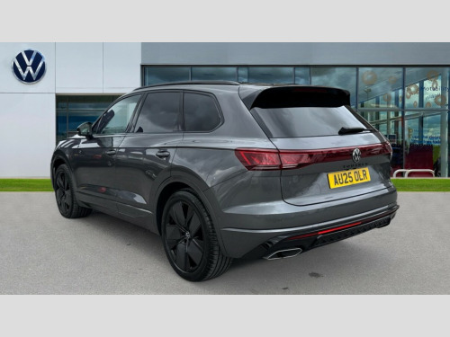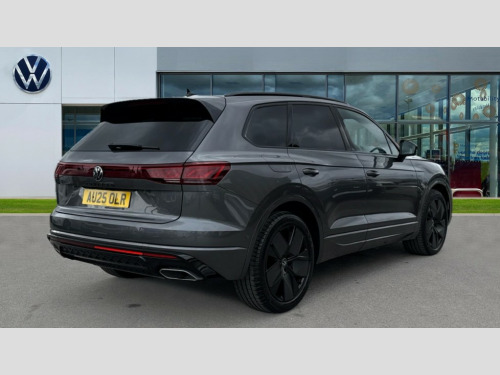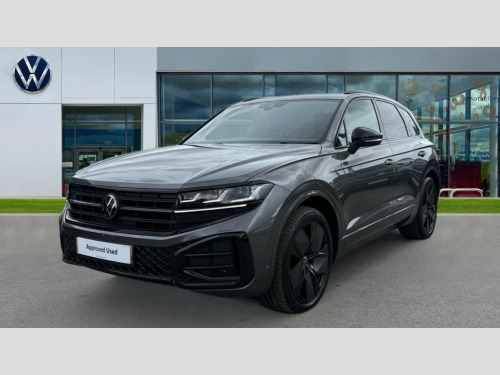Volkswagen Touareg 3.0 V6 TDI 4Motion 286 Black Edition 5dr Tip Auto 15" Screen Top infotainment system Premium (MIB3), Adaptive cruise control, Advanced driver attention and drowsiness monitor, Driver profile selection, Dynamic road sign display, E-Sim card for online connectivity, eCall emergency system, Innovision cockpit, Intelligent park assist, Mobile phone interface with inductive charging, Multi-colour Active Info display, Park Assist - Sensor controlled steering aid to assist parallel or bay parking, PAS, Warning signal and warning light for front and rear seatbelts not fastened, Wireless app connect, Adaptive chassis control, DAB Digital radio, Diversity antenna for AM/ FM reception, We Connect and We Connect Plus functionality, Automatic coming/leaving home lighting function, Automatic headlights, Black door mirrors, Black style comfort bumpers, Dynamic headlight range control with dynamic cornering light, Electric front tilt/slide panoramic sunroof and fixed rear sunroof, Electrically power adjustable, heated, folding, auto dimming, front passenger exterior door mirror lowering function, External USB type C socket and charging sockets, Gloss black roof rails, HD LED Matrix beam plus digital headlight projection with variable light distribution, Headlight washers, Highway light, LED 3rd brake light, LED daytime running lights, LED rear combination lamp with variable lighting functions and special styling, Poor weather light, Rain sensor, Rear exhaust tailpipe, Rear fog light with back up light on both sides, Rear light bar and illuminated logo, Rear side wing doors, Rear wiper, Stainless steel door sill protection, 12V socket in centre console, 3 rear headrests, 3 seat bench in 2nd row, 4 zone climate control, Airbag label on sun visor and B-pillar, Brushed stainless steel pedals, Double sun visors with illuminated vanity mirrors, Front + rear carpet mats, Front centre armrest, Leather wrapped multifunction sports steering wheel, heated, with touch control and shift paddles, Mechanical rear seat release, Power adjustable lumbar support in front, Power seats in front, right side with memory features and seat cushion depth adjustment, Rear seat backrest and split folding with center armrest, Single front passenger seat, Memory pack plus - Touareg, 3 point seatbelts, outer rear with ECE lable, ABS, Child locks on rear doors, Curtain airbags, Driver and front passenger safety-optimised head restraints, Driver/Front Passenger airbags, Extended pedestrian protection measures, Front assist, Front seat side impact airbags, Generative braking with start and stop system, Height adjustable 3 point front seatbelts with pre tensioners, Passenger airbag deactivate switch, Three 3 point rear seatbelts, Two tone horn, Tyre pressure loss indicator, Warning triangle and first aid kit, Alarm system with interior protection, Easy open and close sensor controlled luggage compartment opening and closing with remote unlocking, Keyless Access Keyless locking and starting system with SAFELOCK, Aluminium decorative inserts, Black decorative trims, Gloss black decorative inserts in centre console, Tool kit