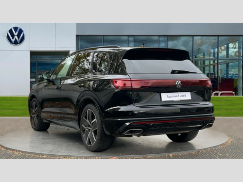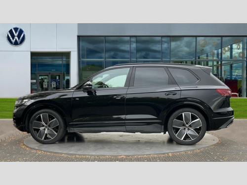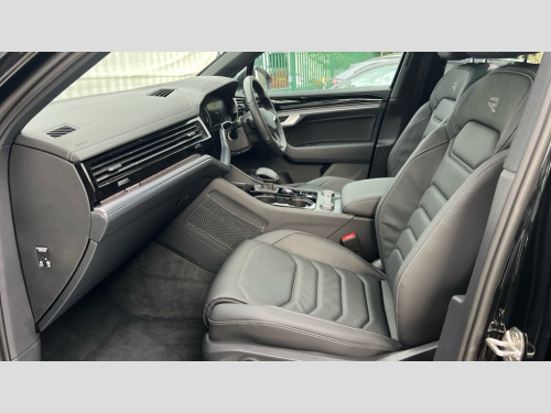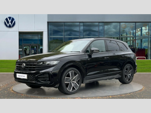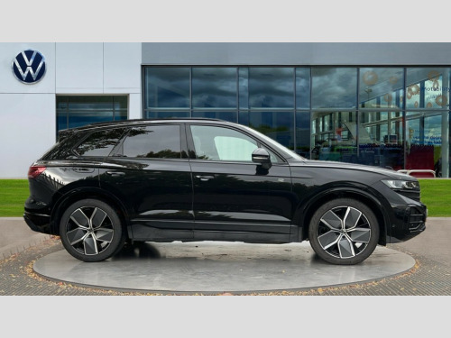 Volkswagen Touareg 3.0 V6 TDI 4Motion 286 Black Edition 5dr Tip Auto 15" Screen Top infotainment system Premium (MIB3), Adaptive cruise control, Advanced driver attention and drowsiness monitor, Driver profile selection, Dynamic road sign display, E-Sim card for online connectivity, eCall emergency system, Innovision cockpit, Intelligent park assist, Mobile phone interface with inductive charging, Multi-colour Active Info display, Park Assist - Sensor controlled steering aid to assist parallel or bay parking, PAS, Warning signal and warning light for front and rear seatbelts not fastened, Wireless app connect, Adaptive chassis control, DAB Digital radio, Diversity antenna for AM/ FM reception, We Connect and We Connect Plus functionality, Automatic coming/leaving home lighting function, Automatic headlights, Black door mirrors, Black style comfort bumpers, Dynamic headlight range control with dynamic cornering light, Electric front tilt/slide panoramic sunroof and fixed rear sunroof, Electrically power adjustable, heated, folding, auto dimming, front passenger exterior door mirror lowering function, External USB type C socket and charging sockets, Gloss black roof rails, HD LED Matrix beam plus digital headlight projection with variable light distribution, Headlight washers, Highway light, LED 3rd brake light, LED daytime running lights, LED rear combination lamp with variable lighting functions and special styling, Poor weather light, Rain sensor, Rear exhaust tailpipe, Rear fog light with back up light on both sides, Rear light bar and illuminated logo, Rear side wing doors, Rear wiper, Stainless steel door sill protection, 12V socket in centre console, 3 rear headrests, 3 seat bench in 2nd row, 4 zone climate control, Airbag label on sun visor and B-pillar, Brushed stainless steel pedals, Double sun visors with illuminated vanity mirrors, Front + rear carpet mats, Front centre armrest, Leather wrapped multifunction sports steering wheel, heated, with touch control and shift paddles, Mechanical rear seat release, Power adjustable lumbar support in front, Power seats in front, right side with memory features and seat cushion depth adjustment, Rear seat backrest and split folding with center armrest, Single front passenger seat, Memory pack plus - Touareg, 3 point seatbelts, outer rear with ECE lable, ABS, Child locks on rear doors, Curtain airbags, Driver and front passenger safety-optimised head restraints, Driver/Front Passenger airbags, Extended pedestrian protection measures, Front assist, Front seat side impact airbags, Generative braking with start and stop system, Height adjustable 3 point front seatbelts with pre tensioners, Passenger airbag deactivate switch, Three 3 point rear seatbelts, Two tone horn, Tyre pressure loss indicator, Warning triangle and first aid kit, Alarm system with interior protection, Easy open and close sensor controlled luggage compartment opening and closing with remote unlocking, Keyless Access Keyless locking and starting system with SAFELOCK, Aluminium decorative inserts, Black decorative trims, Gloss black decorative inserts in centre console, Tool kit