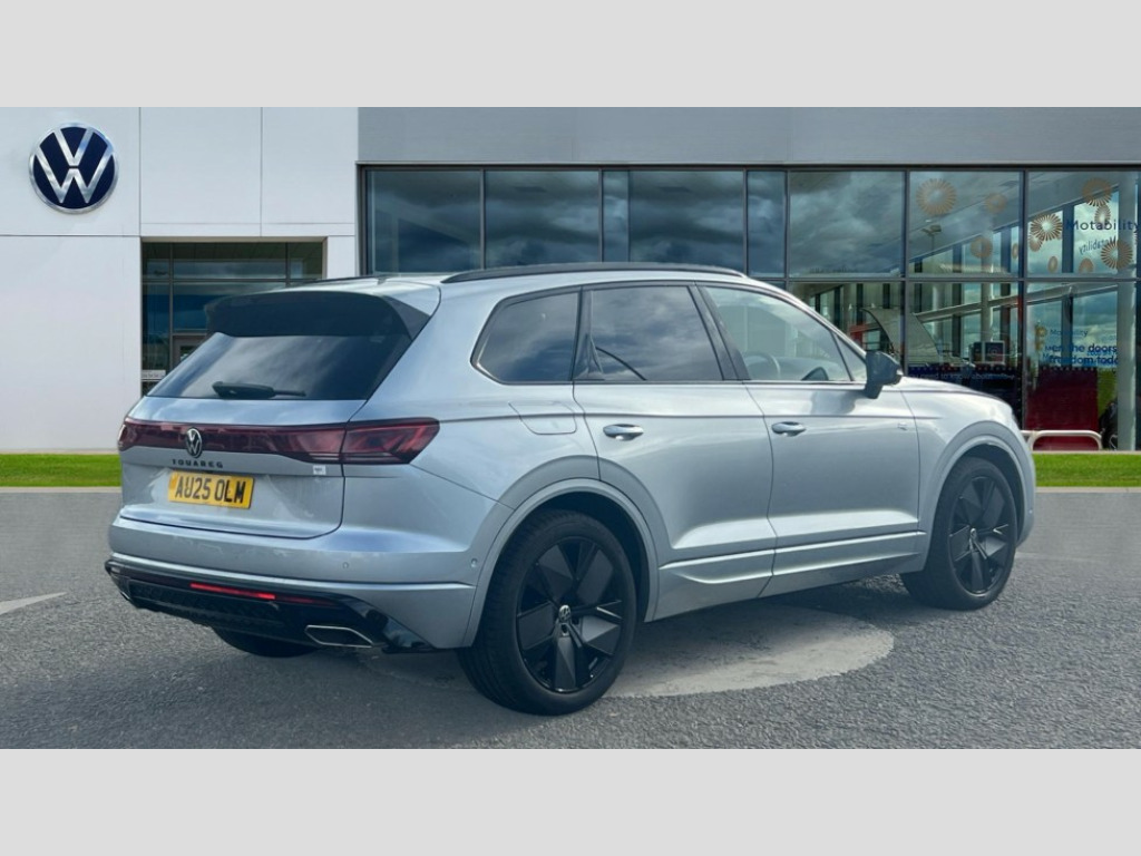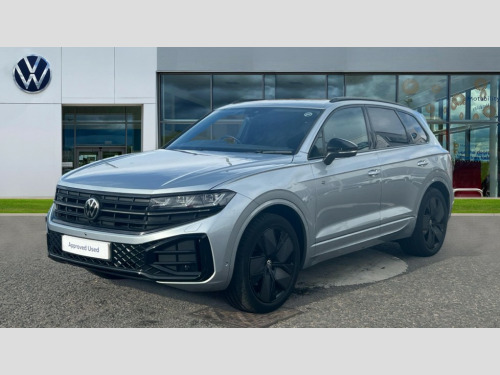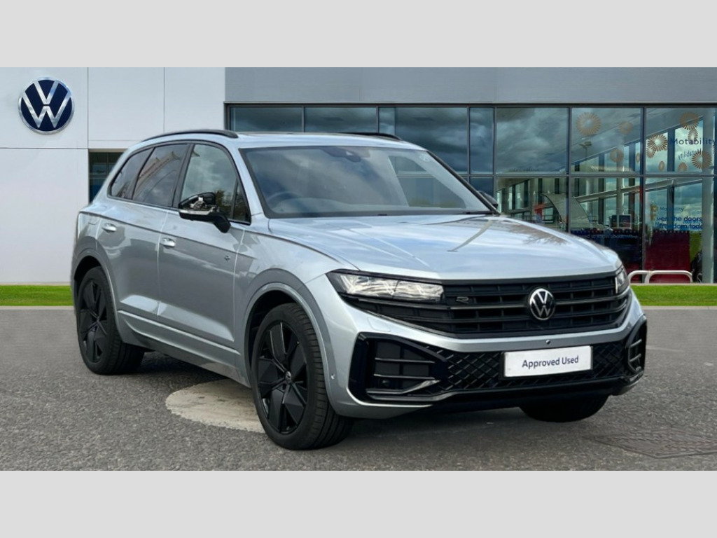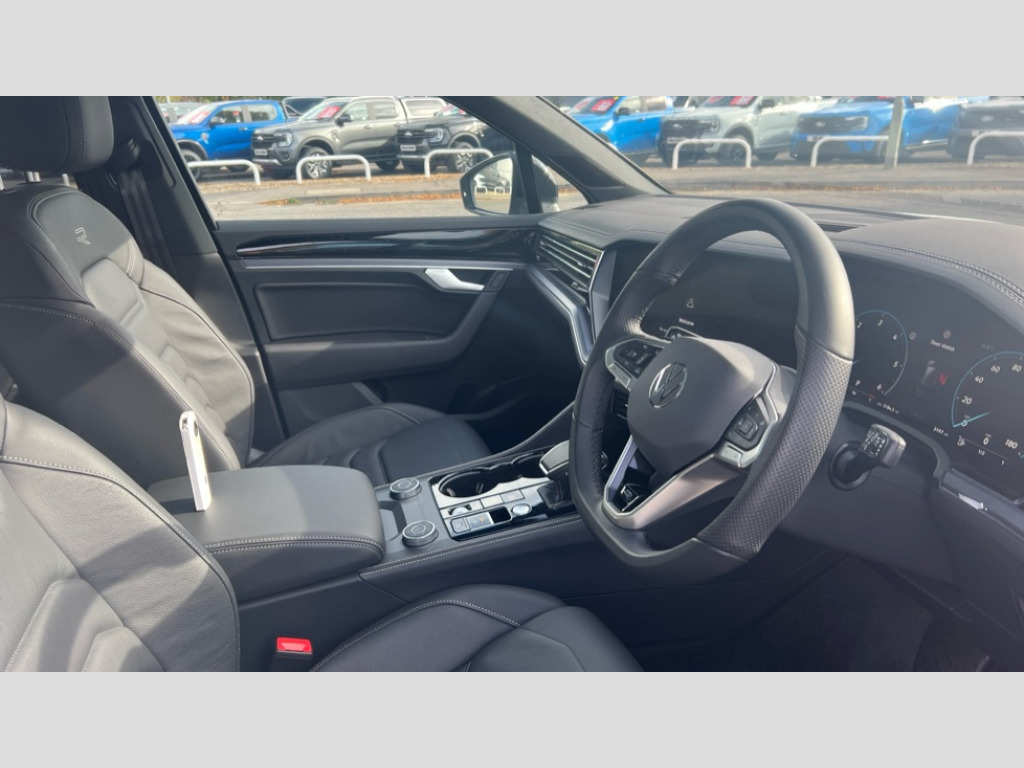 Volkswagen Touareg 3.0 V6 TDI 4Motion 286 Black Edition 5dr Tip Auto 15" Screen Top infotainment system Premium (MIB3), Adaptive cruise control, Advanced driver attention and drowsiness monitor, Driver profile selection, Dynamic road sign display, E-Sim card for online connectivity, eCall emergency system, Innovision cockpit, Intelligent park assist, Mobile phone interface with inductive charging, Multi-colour Active Info display, Park Assist - Sensor controlled steering aid to assist parallel or bay parking, PAS, Warning signal and warning light for front and rear seatbelts not fastened, Wireless app connect, Adaptive chassis control, DAB Digital radio, Diversity antenna for AM/ FM reception, We Connect and We Connect Plus functionality, Automatic coming/leaving home lighting function, Automatic headlights, Black door mirrors, Black style comfort bumpers, Dynamic headlight range control with dynamic cornering light, Electric front tilt/slide panoramic sunroof and fixed rear sunroof, Electrically power adjustable, heated, folding, auto dimming, front passenger exterior door mirror lowering function, External USB type C socket and charging sockets, Gloss black roof rails, HD LED Matrix beam plus digital headlight projection with variable light distribution, Headlight washers, Highway light, LED 3rd brake light, LED daytime running lights, LED rear combination lamp with variable lighting functions and special styling, Poor weather light, Rain sensor, Rear exhaust tailpipe, Rear fog light with back up light on both sides, Rear light bar and illuminated logo, Rear side wing doors, Rear wiper, Stainless steel door sill protection, 12V socket in centre console, 3 rear headrests, 3 seat bench in 2nd row, 4 zone climate control, Airbag label on sun visor and B-pillar, Brushed stainless steel pedals, Double sun visors with illuminated vanity mirrors, Front + rear carpet mats, Front centre armrest, Leather wrapped multifunction sports steering wheel, heated, with touch control and shift paddles, Mechanical rear seat release, Power adjustable lumbar support in front, Power seats in front, right side with memory features and seat cushion depth adjustment, Rear seat backrest and split folding with center armrest, Single front passenger seat, Memory pack plus - Touareg, 3 point seatbelts, outer rear with ECE lable, ABS, Child locks on rear doors, Curtain airbags, Driver and front passenger safety-optimised head restraints, Driver/Front Passenger airbags, Extended pedestrian protection measures, Front assist, Front seat side impact airbags, Generative braking with start and stop system, Height adjustable 3 point front seatbelts with pre tensioners, Passenger airbag deactivate switch, Three 3 point rear seatbelts, Two tone horn, Tyre pressure loss indicator, Warning triangle and first aid kit, Alarm system with interior protection, Easy open and close sensor controlled luggage compartment opening and closing with remote unlocking, Keyless Access Keyless locking and starting system with SAFELOCK, Aluminium decorative inserts, Black decorative trims, Gloss black decorative inserts in centre console, Tool kit
