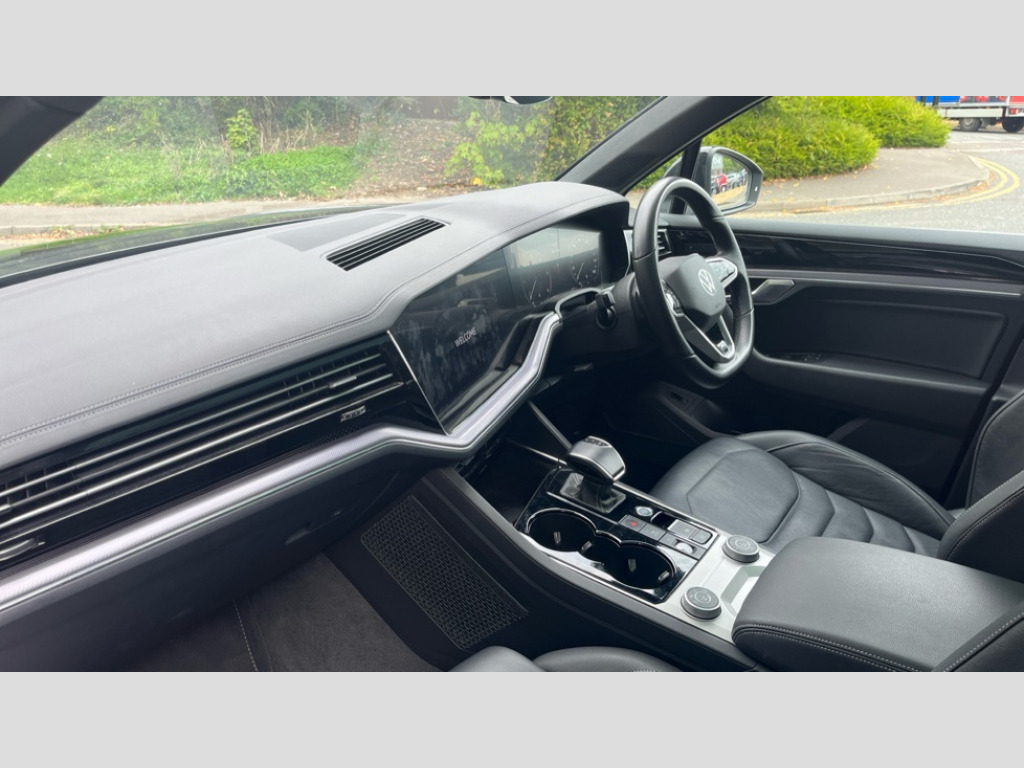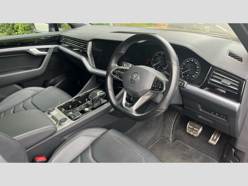 Volkswagen Touareg 3.0 V6 TDI 4Motion Black Edition 5dr Tip Auto 2D/3D map view, ACC - Adaptive cruise control with front assist, forward collision warning, distance monitoring, city emergency brake and speed limiter, Apple car play/Android Auto, Audible and visual fatigue detection system, Bluetooth hands free telephone connection, Car information display, Drive select with Damper control, Driver alert system, Dynamic road sign display camera controlled system with visual warning for traffic and road signs, eCall emergency system, Fully electric tailgate + keyless entry and start, Instrument cluster, MirrorLink, Multifunction camera with lane assist, Multifunction computer premium with 7" colour display, One touch indicators with repeat function, Park assist with area view camera, Service interval indicator, Speed sensitive power steering, Start/stop system with regenerative braking, Tailgate power latch, Think blue trainer driver tips and journey analysis, Traffic sign recognition, Voice control system, Wireless Smartphone charger, Torsen limited slip differential, DAB Digital radio, Dynamic navigation based on TMC+, Gesture control for infotainment system, Multi device interface (MDI) with illuminated USB-C connection, Music playback - MP3, WMA and AAC files, SD card slot, Simultaneous pairing of 2 compatible mobile devices, SMS functionality - read, compose and send SMS messages using touch-screen display, Title and cover art display, Volkswagen media control, Adaptive low beam for urban and motorway use, Auto dimming rear view mirror, Automatic coming/leaving home lighting function, Automatic headlights, Black anodised roof rails, Black door mirrors, Black rear diffuser, Black side window surrounds, Black upper and lower grille louvres extending into headlights and radiator grille, Body colour door handles, Body coloured wheel arches, C signature gloss black front air intake, Chromed tailpipe on the left and right integrated in the bumper with trapezoid design, Dusk sensor, Dynamic headlight range control, Electric front tilt/slide panoramic sunroof and fixed rear sunroof, Electrically power adjustable, heated, folding, auto dimming, front passenger exterior door mirror lowering function, Front and rear electric windows, Galvanised body, Gloss black finish B pillar, Gloss black rear diffuser, Headlight washers, Heat insulating darkened glass in side and rear windows, Heated windscreen washer jets, IQ.Light-LED matrix headlight,daytime running light with dynamic cornering light and indicator, LED rear fog light, LED rear number plate lights, Plastic scuff plates in door apertures, Poor weather light, Puddle lights, Rain sensor, Rear wiper, 12V socket in front and rear centre console and boot, 2 Coat hooks on B pillar, 3 rear head restraints, 3 spoke sport heated leather multi-function sports steering wheel with gear shift paddles - generation 2, 4 way adjustable front head restraints, 4 way electric lumbar support for driver and front passenger, 4 zone climate control, 40:20:40 split folding slide/recline rear seat, B pillar vents, Black lower edge of door extending sills, Branded points of interest, Double sun visor for drivier and passenger with LED illuminated vanity mirrors, Electric luggage compartment cover, Folding rear centre armrest with 2 cupholders, Front + rear carpet mats, Front centre armrest with storage box, Gear shift indicator, Height/reach adjust steering wheel, Illuminated air conditioned glovebox, Isofix preparation for 2 rear child seats, Jack and tool kit, Leather trimmed gear knob with gloss black inlay/aluminum trim, Leatherette door trim, LED luggage compartment lighting, Load through provision, Luggage compartment with load lashing rings, Plastic loading edge protection, Rear seat remote release levers, Soul black headlining, Stainless steel pedals, Innovision cockpit pack - Touareg, R line styling pack - Touareg, 3 point front seatbelts with pre-tensioners, ABS, Active bonnet, Automatic post collision braking system, Curtain airbags, Driver/Front Passenger airbags, EBD + Brake Assist, EDL, Electronic parking brake with auto hold, ESC with ASR, Front seat side impact airbags, Hill descent control, Hill start assist, Passenger airbag deactivate switch, Seatbelt warning lamp and buzzer, Three 3 point rear seatbelts, Two tone horn, Volkswagen roadside assistance, Warning triangle and first aid kit, Alarm with interior monitoring in cab, backup horn and towing protection, Child security locks for front and rear doors, Electronic engine immobiliser, Remote central locking, Black decorative trims on the side windows, High gloss black centre console, Tyre repair kit