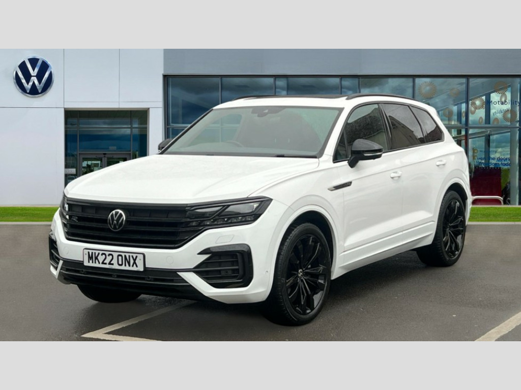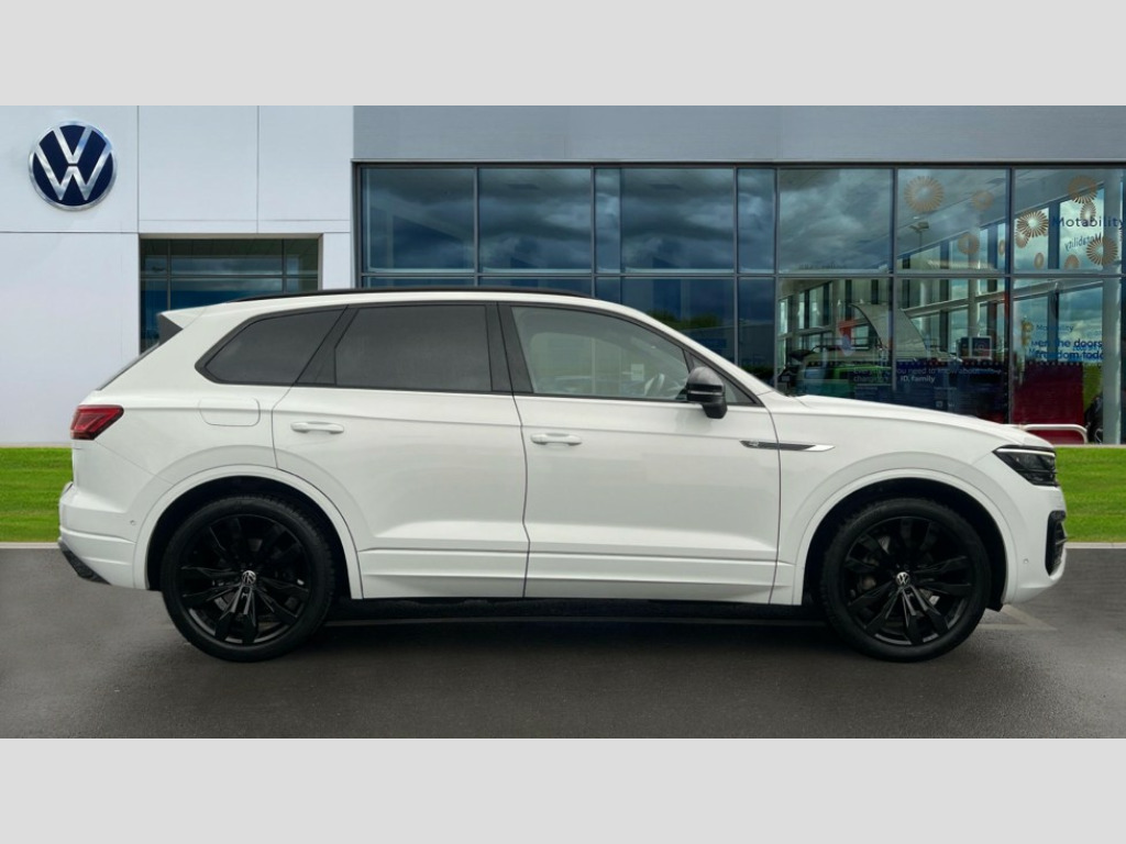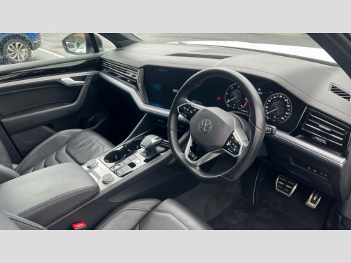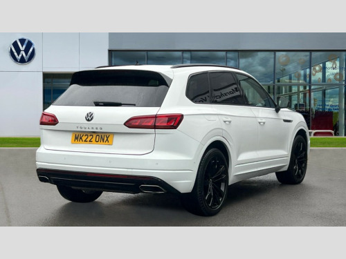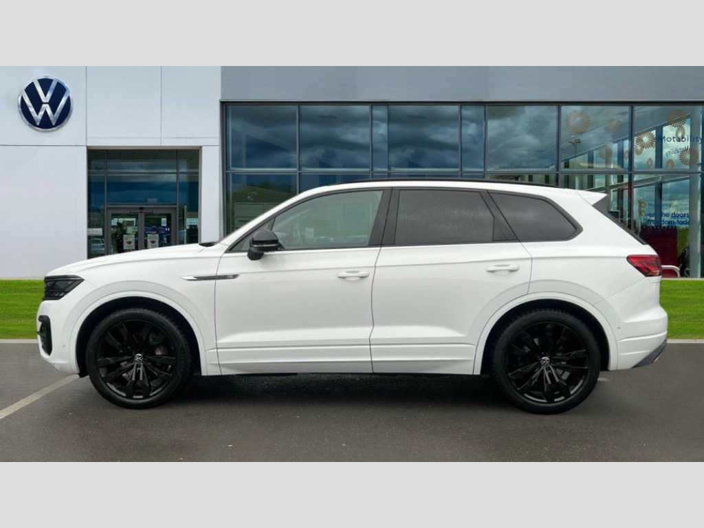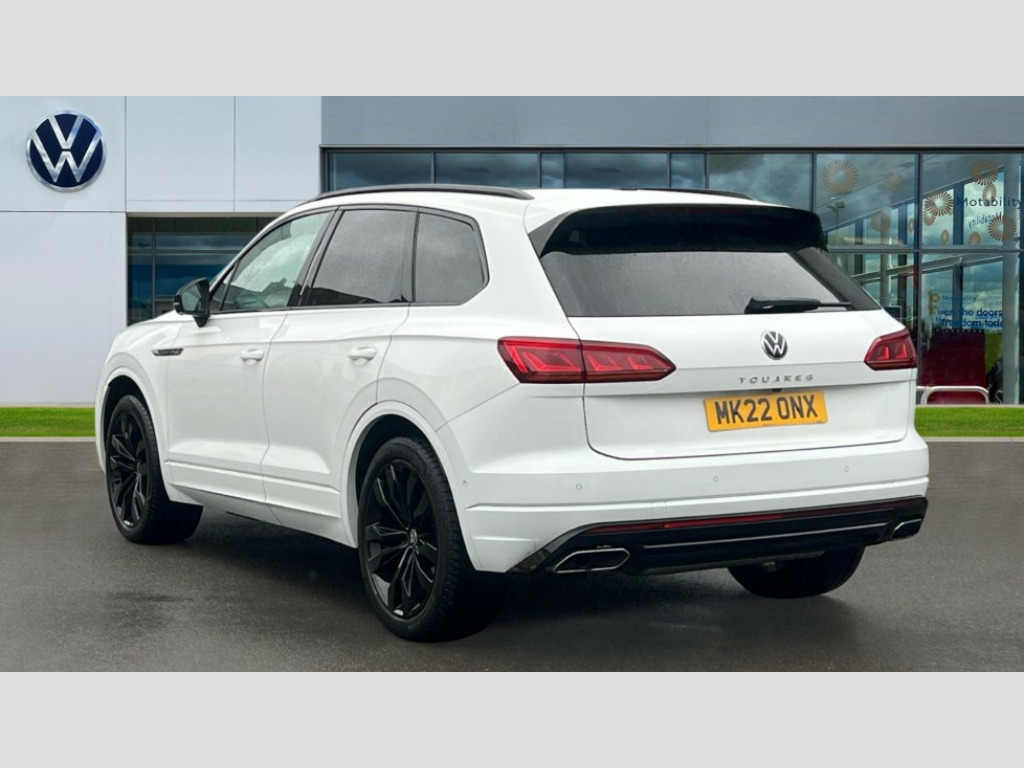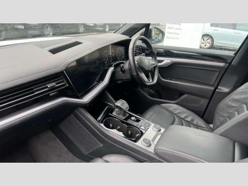 Volkswagen Touareg 3.0 V6 TDI 4Motion Black Edition 5dr Tip Auto 2D/3D map view, ACC - Adaptive cruise control with front assist, forward collision warning, distance monitoring, city emergency brake and speed limiter, Apple car play/Android Auto, Audible and visual fatigue detection system, Bluetooth hands free telephone connection, Car information display, Drive select with Damper control, Driver alert system, Driver profile selection, Dynamic road sign display camera controlled system with visual warning for traffic and road signs, eCall emergency system, Fully electric tailgate + keyless entry and start, Instrument cluster, MirrorLink, Multifunction camera with lane assist, Multifunction computer premium with 7" colour display, One touch indicators with repeat function, Service interval indicator, Speed sensitive power steering, Start/stop system with regenerative braking, Tailgate power latch, Think blue trainer driver tips and journey analysis, Traffic sign recognition, Voice control system, Wireless Smartphone charger, 24 litre AdBlue tank, Torsen limited slip differential, DAB Digital radio, Dynamic navigation based on TMC+, Gesture control for infotainment system, Multi device interface (MDI) with illuminated USB-C connection, Music playback - MP3, WMA and AAC files, SD card slot, Simultaneous pairing of 2 compatible mobile devices, SMS functionality - read, compose and send SMS messages using touch-screen display, Title and cover art display, Volkswagen media control, Adaptive low beam for urban and motorway use, Auto dimming rear view mirror, Automatic coming/leaving home lighting function, Automatic headlights, Black anodised roof rails, Black door mirrors, Black rear diffuser, Black side window surrounds, Black upper and lower grille louvres extending into headlights and radiator grille, Body colour door handles, Body coloured wheel arches, C signature gloss black front air intake, Chromed tailpipe on the left and right integrated in the bumper with trapezoid design, Dusk sensor, Dynamic headlight range control, Electric front tilt/slide panoramic sunroof and fixed rear sunroof, Electrically power adjustable, heated, folding, auto dimming, front passenger exterior door mirror lowering function, Front and rear electric windows, Galvanised body, Gloss black finish B pillar, Gloss black rear diffuser, Headlight washers, Heat insulating darkened glass in side and rear windows, Heated windscreen washer jets, IQ.Light-LED matrix headlight,daytime running light with dynamic cornering light and indicator, LED rear fog light, LED rear number plate lights, Plastic scuff plates in door apertures, Poor weather light, Puddle lights, Rain sensor, Rear side wing doors, Rear wiper, 12V socket in front and rear centre console and boot, 2 Coat hooks on B pillar, 3 rear head restraints, 3 spoke sport heated leather multi-function sports steering wheel with gear shift paddles - generation 2, 4 way adjustable front head restraints, 4 way electric lumbar support for driver and front passenger, 4 zone climate control, 40:20:40 split folding slide/recline rear seat, B pillar vents, Black lower edge of door extending sills, Branded points of interest, Double sun visor for drivier and passenger with LED illuminated vanity mirrors, Electric luggage compartment cover, Folding rear centre armrest with 2 cupholders, Front + rear carpet mats, Front centre armrest with storage box, Gear shift indicator, Height/reach adjust steering wheel, Illuminated air conditioned glovebox, Isofix preparation for 2 rear child seats, Jack and tool kit, Leather trimmed gear knob with gloss black inlay/aluminum trim, Leatherette door trim, LED luggage compartment lighting, Load through provision, Luggage compartment with load lashing rings, Plastic loading edge protection, Rear seat remote release levers, Soul black headlining, Stainless steel pedals, Innovision cockpit pack - Touareg, 3 point front seatbelts with pre-tensioners, ABS, Active bonnet, Automatic post collision braking system, Curtain airbags, Driver/Front Passenger airbags, EBD + Brake Assist, EDL, Electronic parking brake with auto hold, ESC with ASR, Front seat side impact airbags, Hill descent control, Hill start assist, Passenger airbag deactivate switch, Seatbelt warning lamp and buzzer, Three 3 point rear seatbelts, Two tone horn, Volkswagen roadside assistance, Warning triangle and first aid kit, Alarm with interior monitoring in cab, backup horn and towing protection, Child security locks for front and rear doors, Electronic engine immobiliser, Remote central locking, Black decorative trims on the side windows, High gloss black centre console