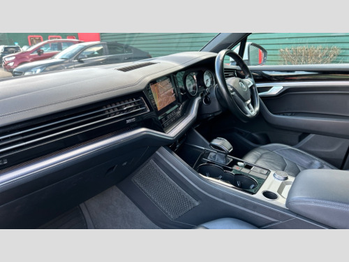 Volkswagen Touareg 3.0 V6 TDI 4Motion R-Line 5dr Tip Auto ACC - Adaptive cruise control with front assist, forward collision warning, distance monitoring, city emergency brake and speed limiter, Apple car play/Android Auto, Bluetooth hands free telephone connection, Drive select with Damper control, Driver alert system, Dynamic road sign display camera controlled system with visual warning for traffic and road signs, Instrument cluster, MirrorLink, Multifunction camera with lane assist, Multifunction computer, Park assist with rear view camera, Service interval indicator, Speed sensitive power steering, Start/stop system with regenerative braking, Tailgate power latch, Traffic sign recognition, Wireless Smartphone charger, Torsen limited slip differential, 2x SD card slot, DAB Digital radio, Gesture control for infotainment system, Auto dimming rear view mirror, Automatic coming/leaving home lighting function, Automatic headlights, Black rear diffuser, Body colour bumpers, Body colour door handles, Body colour door mirrors with integral indicators, Body coloured side skirts, Chrome exhaust tailpipes, Chrome protective strip on door sill, Chrome trimmed radiator grille and air intake, Chrome trimmed side windows, Front and rear electric windows, Headlight range control, Heated windscreen washer jets, LED cornering headlights, LED daytime running lights, LED Indicators, Puddle lights, Rear fog lights, Rear wiper, 12V Accessory socket in centre console, 3 rear head restraints, 4 load lashing points, 4 zone climate control, 60/40 split folding slide/recline rear seat, Driver/front passenger seat height adjustment, Electric luggage compartment cover, Folding rear centre armrest with 2 cupholders, Front + rear carpet mats, Front centre armrest with storage box, Front seats lumbar support, Gear shift indicator, Height/reach adjust steering wheel, Isofix preparation for 2 rear child seats, Jack and tool kit, Leather heated multifunction steering wheel with paddle shift, Leatherette door trim, Load through provision, Soul black headlining, Stainless steel load sill protection, Stainless steel pedals, Sunvisors with illuminated vanity mirrors, 3 point front seatbelts with pre-tensioners, ABS, Active bonnet, Automatic post collision braking system, Curtain airbags, Driver/Front Passenger airbags, Driver/Passenger whiplash optimised head restraints, EBD + Brake Assist, EDL, Electronic parking brake with auto hold, ESC with ASR, Front seat side impact airbags, Hill descent control, Passenger airbag deactivate switch, Seatbelt warning lamp and buzzer, Three 3 point rear seatbelts, Two tone horn, Warning triangle and first aid kit, Alarm with interior monitoring in cab, backup horn and towing protection, Anti-theft wheel bolts, Remote central locking, Aluminium dash and door panel inserts, High gloss black centre console, Temporary space saver steel spare wheel
