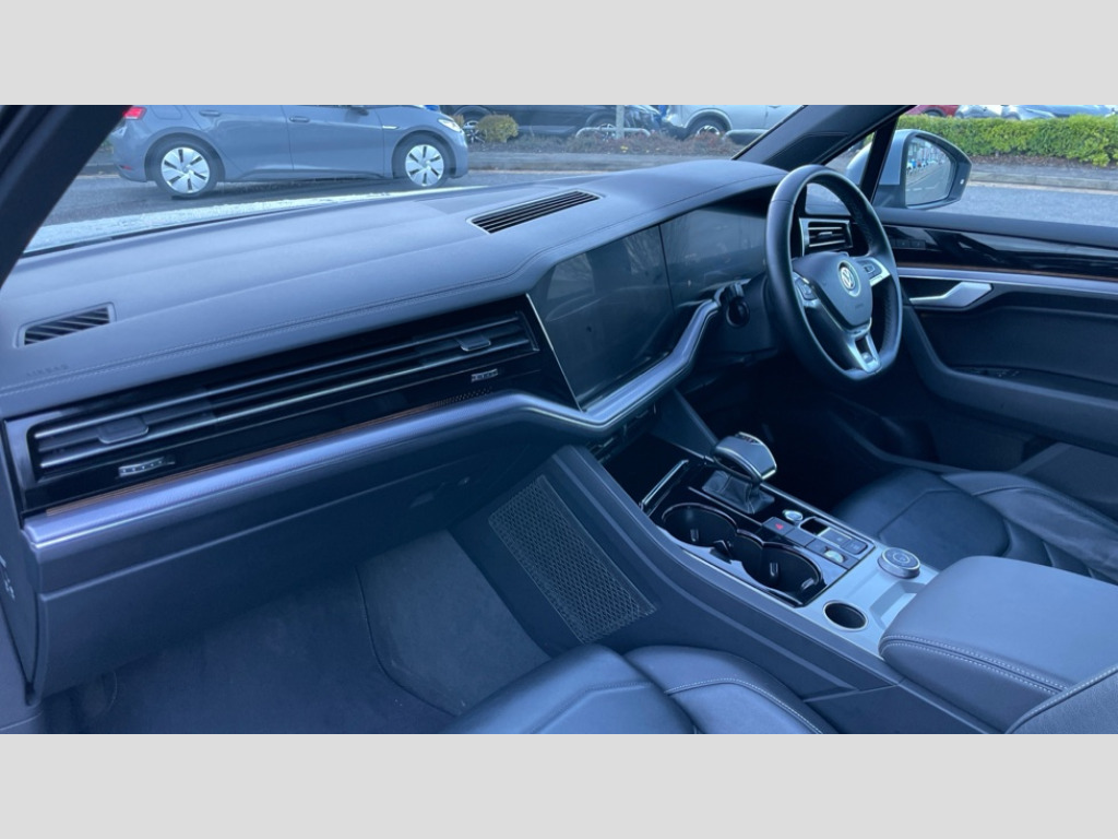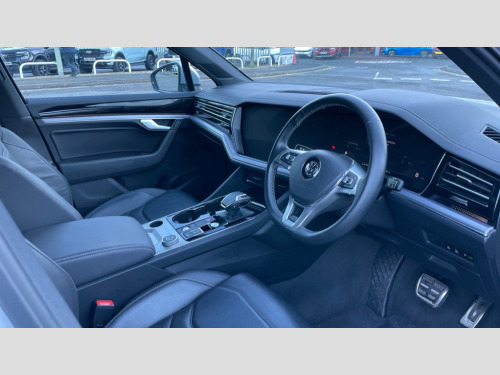Volkswagen Touareg 3.0 V6 TDI 4Motion R-Line Tech 5dr Tip Auto 2D/3D map view, ACC - Adaptive cruise control with front assist, forward collision warning, distance monitoring, city emergency brake and speed limiter, Apple car play/Android Auto, Audible and visual fatigue detection system, Bluetooth hands free telephone connection, Car information display, Drive select with Damper control, Driver alert system, Dynamic road sign display camera controlled system with visual warning for traffic and road signs, eCall emergency system, Instrument cluster, MirrorLink, Multifunction camera with lane assist, Multifunction computer premium with 7" colour display, One touch indicators with repeat function, Service interval indicator, Speed sensitive power steering, Start/stop system with regenerative braking, Tailgate power latch, Think blue trainer driver tips and journey analysis, Traffic sign recognition, Voice control system, Wireless Smartphone charger, Torsen limited slip differential, DAB Digital radio, Dynamic navigation based on TMC+, Gesture control for infotainment system, Multi device interface (MDI) with USB connection, Music playback - MP3, WMA and AAC files, SD card slot, Simultaneous pairing of 2 compatible mobile devices, SMS functionality - read, compose and send SMS messages using touch-screen display, Title and cover art display, Volkswagen media control, Adaptive low beam for urban and motorway use, Auto dimming rear view mirror, Automatic coming/leaving home lighting function, Automatic headlights, Body colour door handles, Body colour door mirrors with integral indicators, Body coloured wheel arches, C signature gloss black front air intake, Chrome trimmed radiator grille and air intake, Chrome trimmed side windows, Chromed tailpipe on the left and right integrated in the bumper with trapezoid design, Dusk sensor, Dynamic headlight range control, Electrically power adjustable, heated, folding, auto dimming, front passenger exterior door mirror lowering function, Front and rear electric windows, Galvanised body, Gloss black finish B pillar, Gloss black rear diffuser, Heat insulating darkened glass in side and rear windows, Heated windscreen washer jets, LED rear fog light, LED rear number plate lights, Plastic scuff plates in door apertures, Poor weather light, Puddle lights, Rain sensor, Rear wiper, Stainless steel door sill protectors with R-line logo, 12V socket in front and rear centre console and boot, 2 Coat hooks on B pillar, 3 rear head restraints, 3 spoke heated leather multi-function steering wheel including paddle shift, 4 way adjustable front head restraints, 4 way electric lumbar support for driver and front passenger, 4 zone climate control, 40:20:40 split folding slide/recline rear seat, B pillar vents, Branded points of interest, Double sun visor for drivier and passenger with LED illuminated vanity mirrors, Driver/front passenger seat height adjustment, Electric luggage compartment cover, Folding rear centre armrest with 2 cupholders, Front + rear carpet mats, Front centre armrest with storage box, Front headrests, Front seats with R-line logo on seat backrest, Gear shift indicator, Height/reach adjust steering wheel, Illuminated air conditioned glovebox, Isofix preparation for 2 rear child seats, Jack and tool kit, Leather trimmed gear knob with gloss black inlay/aluminum trim, Leatherette door trim, LED luggage compartment lighting, Load through provision, Luggage compartment with load lashing rings, Plastic loading edge protection, R Line badge, Rear seat remote release levers, Soul black headlining, Stainless steel pedals, Innovision cockpit pack - Touareg, R line styling pack - Touareg, 3 point front seatbelts with pre-tensioners, ABS, Active bonnet, Automatic post collision braking system, Curtain airbags, Driver/Front Passenger airbags, EBD + Brake Assist, EDL, Electronic parking brake with auto hold, ESC with ASR, Front seat side impact airbags, Hill descent control, Hill start assist, Passenger airbag deactivate switch, Seatbelt warning lamp and buzzer, Three 3 point rear seatbelts, Two tone horn, Volkswagen roadside assistance, Warning triangle and first aid kit, Alarm with interior monitoring in cab, backup horn and towing protection, Child security locks for front and rear doors, Electronic engine immobiliser, Remote central locking, High gloss black centre console, Silver wave design aluminium decorative inlays, Temporary space saver steel spare wheel