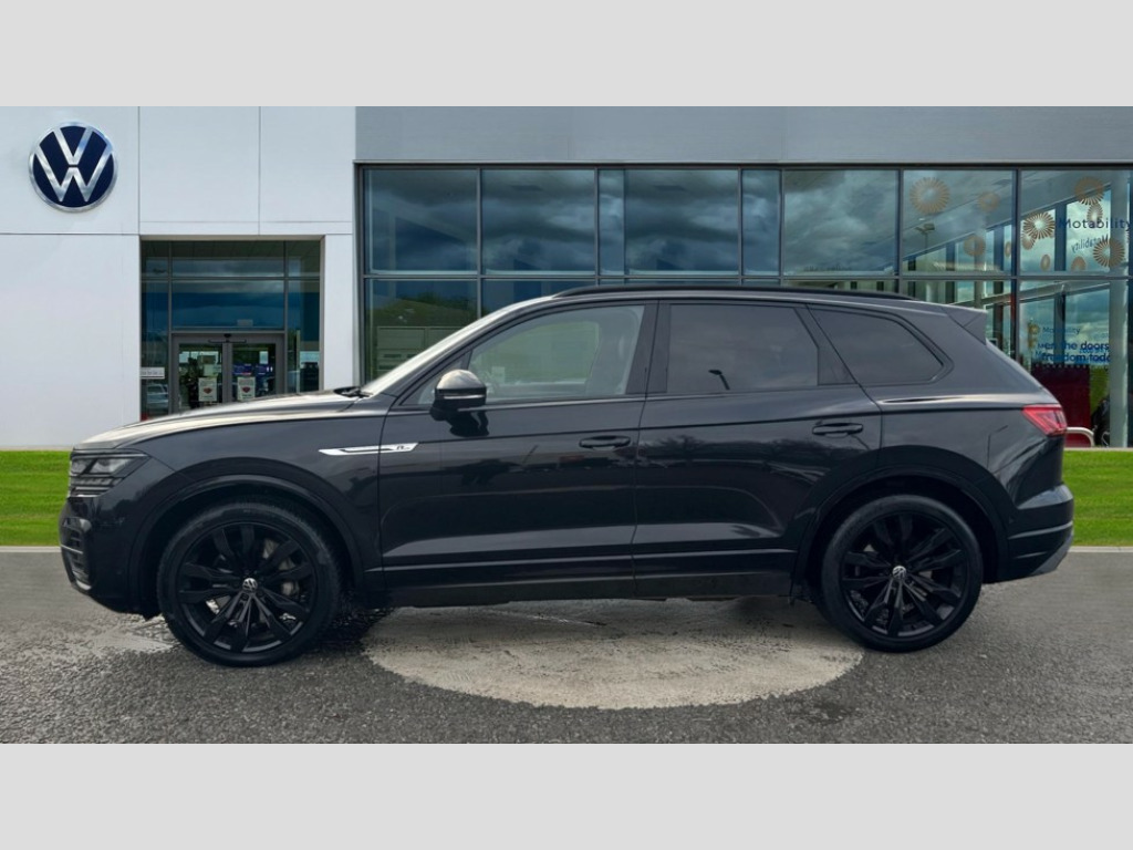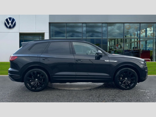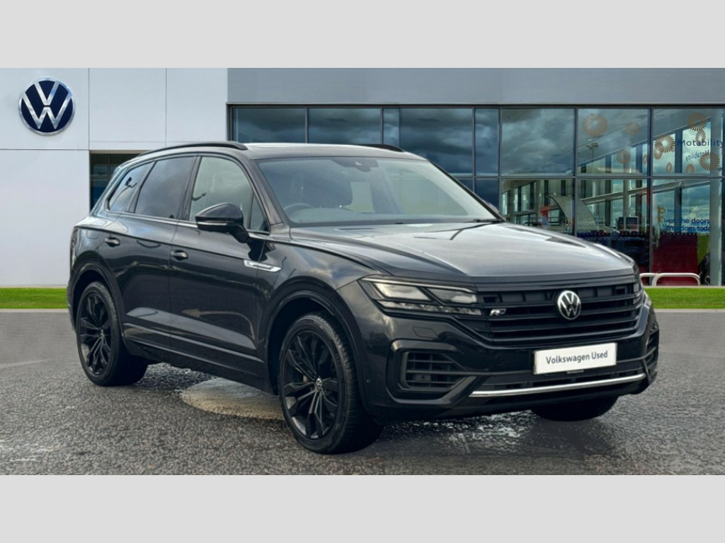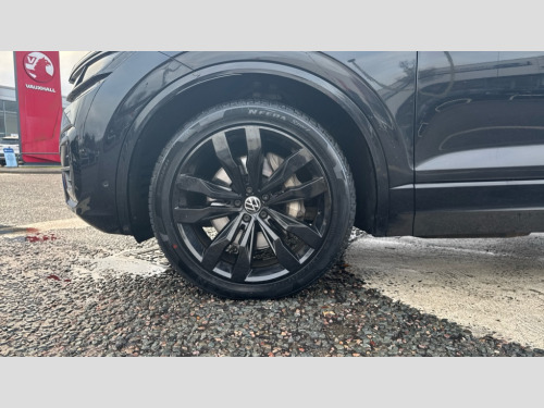 Volkswagen Touareg 3.0 V6 TSI 4Motion Black Edition 5dr Tip Auto 2D/3D map view, ACC - Adaptive cruise control with front assist, forward collision warning, distance monitoring, city emergency brake and speed limiter, Apple car play/Android Auto, Audible and visual fatigue detection system, Bluetooth hands free telephone connection, Car information display, Drive select with Damper control, Driver alert system, Dynamic road sign display camera controlled system with visual warning for traffic and road signs, eCall emergency system, Fully electric tailgate + keyless entry and start, Instrument cluster, MirrorLink, Multifunction camera with lane assist, Multifunction computer premium with 7" colour display, One touch indicators with repeat function, Park assist with area view camera, Service interval indicator, Speed sensitive power steering, Start/stop system with regenerative braking, Tailgate power latch, Think blue trainer driver tips and journey analysis, Traffic sign recognition, Voice control system, Wireless Smartphone charger, Torsen limited slip differential, DAB Digital radio, Dynamic navigation based on TMC+, Gesture control for infotainment system, Multi device interface (MDI) with illuminated USB-C connection, Music playback - MP3, WMA and AAC files, SD card slot, Simultaneous pairing of 2 compatible mobile devices, SMS functionality - read, compose and send SMS messages using touch-screen display, Title and cover art display, Volkswagen media control, Adaptive low beam for urban and motorway use, Auto dimming rear view mirror, Automatic coming/leaving home lighting function, Automatic headlights, Black anodised roof rails, Black door mirrors, Black rear diffuser, Black side window surrounds, Black upper and lower grille louvres extending into headlights and radiator grille, Body colour door handles, Body coloured wheel arches, C signature gloss black front air intake, Chromed tailpipe on the left and right integrated in the bumper with trapezoid design, Dusk sensor, Dynamic headlight range control, Electric front tilt/slide panoramic sunroof and fixed rear sunroof, Electrically power adjustable, heated, folding, auto dimming, front passenger exterior door mirror lowering function, Front and rear electric windows, Galvanised body, Gloss black finish B pillar, Gloss black rear diffuser, Headlight washers, Heat insulating darkened glass in side and rear windows, Heated windscreen washer jets, IQ.Light-LED matrix headlight,daytime running light with dynamic cornering light and indicator, LED rear fog light, LED rear number plate lights, Plastic scuff plates in door apertures, Poor weather light, Puddle lights, Rain sensor, Rear wiper, 12V socket in front and rear centre console and boot, 2 Coat hooks on B pillar, 3 rear head restraints, 3 spoke sport heated leather multi-function sports steering wheel with gear shift paddles - generation 2, 4 way adjustable front head restraints, 4 way electric lumbar support for driver and front passenger, 4 zone climate control, 40:20:40 split folding slide/recline rear seat, B pillar vents, Black lower edge of door extending sills, Branded points of interest, Double sun visor for drivier and passenger with LED illuminated vanity mirrors, Electric luggage compartment cover, Folding rear centre armrest with 2 cupholders, Front + rear carpet mats, Front centre armrest with storage box, Gear shift indicator, Height/reach adjust steering wheel, Illuminated air conditioned glovebox, Isofix preparation for 2 rear child seats, Jack and tool kit, Leather trimmed gear knob with gloss black inlay/aluminum trim, Leatherette door trim, LED luggage compartment lighting, Load through provision, Luggage compartment with load lashing rings, Plastic loading edge protection, Rear seat remote release levers, Soul black headlining, Stainless steel pedals, Innovision cockpit pack - Touareg, R line styling pack - Touareg, 3 point front seatbelts with pre-tensioners, ABS, Active bonnet, Automatic post collision braking system, Curtain airbags, Driver/Front Passenger airbags, EBD + Brake Assist, EDL, Electronic parking brake with auto hold, ESC with ASR, Front seat side impact airbags, Hill descent control, Hill start assist, Passenger airbag deactivate switch, Seatbelt warning lamp and buzzer, Three 3 point rear seatbelts, Two tone horn, Volkswagen roadside assistance, Warning triangle and first aid kit, Alarm with interior monitoring in cab, backup horn and towing protection, Child security locks for front and rear doors, Electronic engine immobiliser, Remote central locking, Black decorative trims on the side windows, High gloss black centre console, Tyre repair kit