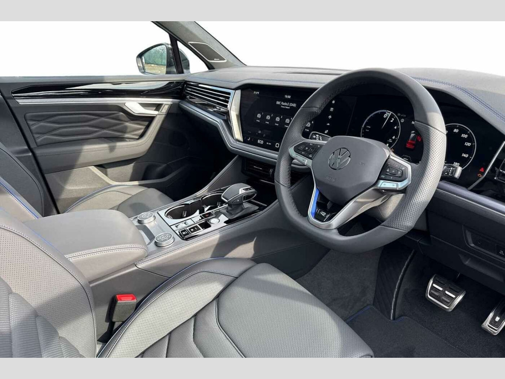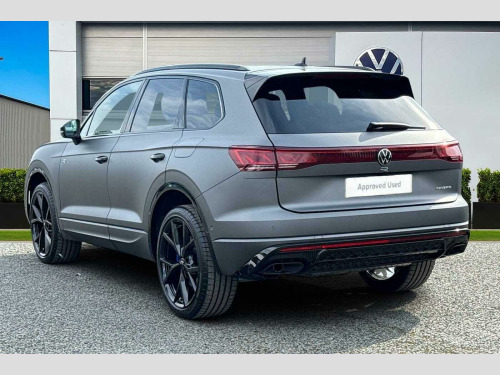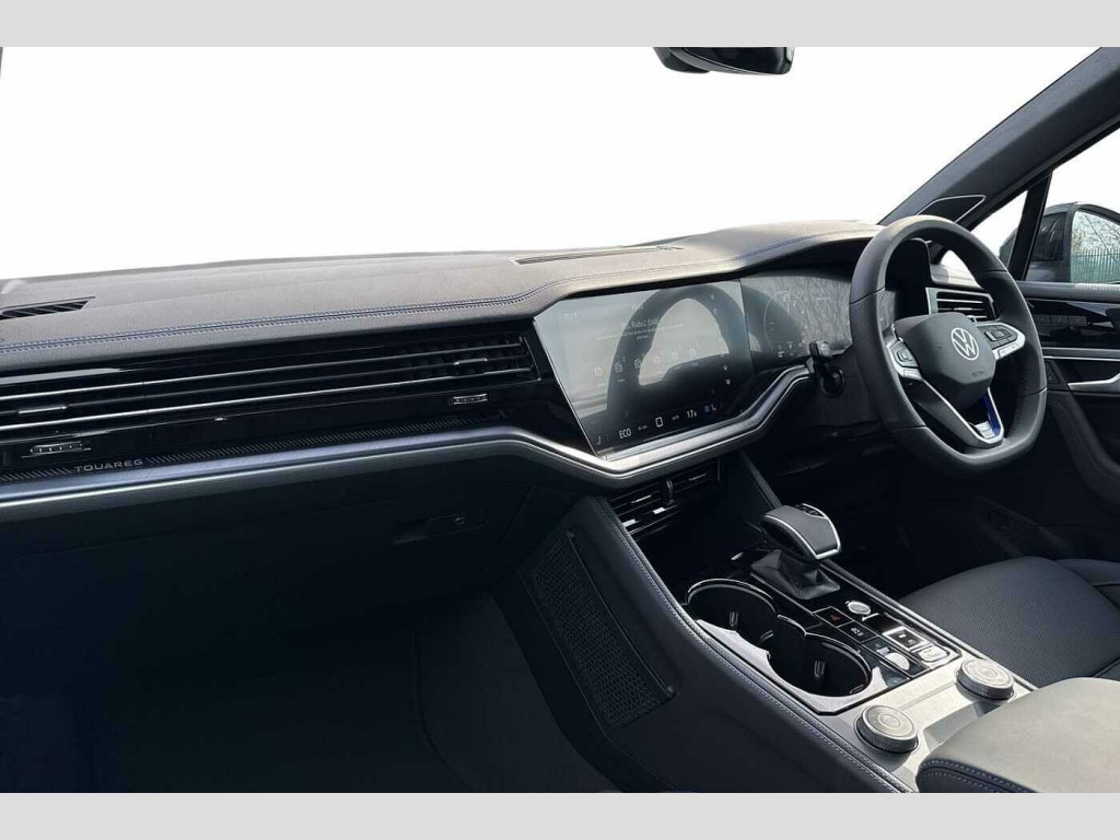 For more information regarding our flexible finance options or a personalised video, contact our sales team now. This car comes fully prepared to the Volkswagen Approved Used programme, with over £2,000 of additional customer benefits including minimum 12 months Warranty or remaining Manufacturers Warranty whichever is greater, 1 year Roadside Assistance, 142 Multi-Point Check and 30 Day or 1,000 Mile Exchange Agreement. Part Exchange & Finance Available subject to T&C's. Dynaudio Consequence Sound System, Head Up Display, Night Vision, Park Assist with Area View Camera and Smartphone Remote Control, Tyre Pressure Monitoring System, Driver Assistance Pack Plus, Park Assist Pro with Area View Camera, Smartphone Remote Control, 22in Alloy Wheels - Estoril Black, Heated Windscreen - Laminated - Acoustic, Tinted Glass - Heat Insulating, Towbar - Power Folding with Trailer Assist, Active Climate Seats in Front with Massage Programs, Heated Front and Rear Seats, Power Latching for Doors, Seat Heater for Front and Rear Seats Separately Controlled, Seat Ventilation/Massage Seat(s) in Front, Sunblinds - Rear Side Windows, Travel Pack, Puglia Leather on ErgoComfort - Black, Heat insulating tinted glass - Sound-insulating, laminated safety glass for side windows, privacy glass in rear window and rear side window - 90%, Heated laminated and acoustic windscreen, Premium signature paint, Night vision, Park assist with area view camera and smartphone remote control, Electronic tyre pressure monitoring, DYNAUDIO confidence 16-channel amplifier, 12+1 speaker, subwoofer, 730W total power output, Power latching doors, Head up Display, Active climate front seats with massage function, Heated front and rear seats, Driver assistance park plus pack - Touareg, Travel pack - Touareg, 22" Estoril black finish alloy wheels with anti theft wheel bolts, Matte - Silicon grey, Tow bar power folding with trailer assist, Puglia leather - Black with contrast blue stitching, Rain sensor, Rear wiper, Adaptive chassis control, Air suspension, Black style comfort bumpers, Electric front tilt/slide panoramic sunroof and fixed rear sunroof, External USB type C socket and charging sockets, Gloss black roof rails, Rear exhaust tailpipe, Rear side wing doors, Stainless steel door sill protection, Automatic coming/leaving home lighting function, Automatic headlights, Dynamic headlight range control with dynamic cornering light, HD LED Matrix beam plus digital headlight projection with variable light distribution, Headlight washers, Highway light, LED 3rd brake light, LED daytime running lights, LED rear combination lamp with variable lighting functions and special styling, Poor weather light, Rear fog light with back up light on both sides, Rear light bar and illuminated logo, ABS, Disc brakes in front blue with R-Logo, Disc brakes in rear blue, Front assist, Generative braking with start and stop system, Adaptive cruise control, Advanced driver attention and drowsiness monitor, Driver profile selection, Dynamic road sign display, Intelligent park assist, Park Assist - Sensor controlled steering aid to assist parallel or bay parking, PAS, Black door mirrors, Electrically power adjustable, heated, folding, auto dimming, front passenger exterior door mirror lowering function, 3 point seatbelts, outer rear with ECE lable, Child locks on rear doors, Curtain airbags, Driver and front passenger safety-optimised head restraints, Driver/Front Passenger airbags, Extended pedestrian protection measures, Front seat side impact airbags, Height adjustable 3 point front seatbelts with pre tensioners, Passenger airbag deactivate switch, Three 3 point rear seatbelts, Two tone horn, Warning triangle and first aid kit, Front + rear carpet mats, 4 zone climate control, 12V socket in centre console, Airbag label on sun visor and B-pillar, Brushed stainless steel pedals, Door and side trim panel with Leather quilting, Front centre armrest, Illuminated scuff plates in door apertures, Leather wrapped multifunction sports steering wheel, heated, with touch control and shift paddles, Puglia leather upholstery with "R" ergoComfort, 30 colours options interior ambient lighting, Additional Interior Lighting, Double sun visors with illuminated vanity mirrors, E-Sim card for online connectivity, Mobile phone interface with inductive charging, Wireless app connect, DAB Digital radio, Diversity antenna for AM/ FM reception, We Connect and We Connect Plus functionality, eCall emergency system, 15" Screen Top infotainment system Premium (MIB3), Innovision cockpit, Multi-colour Active Info display, Warning signal and warning light for front and rear seatbelts not fastened, Standard electronic engine sound actuator, Aluminium decorative inserts, Black decorative trims, Gloss black decorative inserts in centre console, 3 rear headrests, 3 seat bench in 2nd row, Mechanical rear seat release, Power adjustable lumbar support in front, Power seats in front, right side with memory features and seat cushion depth adjustment, Rear seat backrest and split folding with center armrest, Single front passenger seat, Memory pack plus - Touareg, Alarm system with interior protect