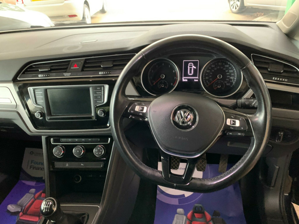 7 Seater, Low Milieage, Two Keys, HPI Clear, Fully Inspected, This 2017 Volkswagen Touran TSI SE Family boasts exceptionally low mileage for its age, having covered just 38458 miles. This seven seater MPV is equipped with a 1.2 litre petrol engine and meets Euro 6 emissions standards. Inside, you'll find a Composition Media system with Bluetooth connectivity, manual air conditioning, and a striking panoramic sunroof that can be opened for an even more airy feel. The SE Family trim also includes a dusk sensor for automatic headlights and adaptive cruise control for a more relaxed driving experience.This Touran offers excellent running costs, achieving an impressive fuel economy of 51 miles per gallon, which is better than many similar vehicles. Its low CO2 emissions and low insurance group further contribute to its affordability. For performance, it accelerates from 0 to 62 miles per hour in 11.3 seconds, providing a capable and efficient drive for families. v socket - 2nd row seats and luggage compartment, 16in alloy wheels - trondheim, 2 single seats in the 3rd row - can be folded flush into floor of luggage compartment, 2 three point seat belts in the 3rd row, 3 single seats in the 2nd row with forward and backward adjustments - foldable, 3 three point seat belts in the 2nd row with height adjustment on outer seats, 5 rear head restraints, abs - anti-lock braking system with hba - hydraulic brake assist, adaptive cruise control, air conditioning - manual, airbags, alarm, armrest - front centre with storage compartment, automatic coming-leaving home lighting function, automatic dimming interior rear view mirror, automatic post-collision braking system, black front air intake and radiator grille, body coloured bumpers front and rear, body coloured door handles, body coloured door mirrors with integrated indicators incorporating led technology, car-net guide and inform (3 year subscription from new), centre armrest 2nd row, chrome-plated radiator grille louvre inserts, composition media system, cup holders - front x2, discover navigation touch-screen navigation-radio system with car-net guide and inform, door mirrors - electrically adjustable and heated, drivers seat height adjustment, drivers and front passengers four way adjustable head restraints, drivers and front passengers safety optimised head restraints, drivers and front passengers under seat drawer, dusk sensor - automatic driving lights, esc - electronic stability control including edl - electronic differential lock and asr - traction control, electric windows - front and rear, electrically activated-deactivated rear door child locks, electronic engine immobiliser, electronic parking brake with auto hold function, electronic voice amplification function for driver, first aid kit and warning triangle, folding table on back of front seats, front assist, front comfort seats with lumbar adjustment, front passengers seat folding backrest, front passengers seat height adjustment, front seat back storage pockets, front three point seat belts with height adjustment, galvanised body, gloss black b pillar, glovebox - illuminated, halogen clear headlights - range adjustable with daytime running lights, height and reach adjustable steering wheel, high level 3rd brake light, hill hold function, isofix child seat preparation all rear seats 2nd and 3rd row, instrument lighting - white adjustable panel illumination with red night-time illumination, interior light delay, large storage box in roof console, leatherette on rear of both front seats, load lashing points x4 in luggage compartment, low tunnel second row seat, luggage compartment cover - retractable and removable, luggage compartment light, media box in passenger side of dashboard, multifunction centre console with storage box - height laterally adjustable, multifunction computer, multifunction computer with 3.5 tft screen, multiple storage compartments in passenger and luggage areas, new brushed design decorative inserts in dash - centre console and front doors, panoramic sunroof, parking sensors - front and rear, power assisted steering - speed sensitive, pre-crash preventive occupant protection, rain sensor, reading lights - front x2 and rear x2, rear screen wash-wipe with intermittent wipe, rear side window sunblinds - manual roll-up rear side window sunblinds, rear tinted glass from b pillar backwards - approx 65 percent tinted, remote central locking with 2 remote folding keys, roof rails - silver anodised, seats - folding rear backrest, speedo and rev counter - electronic odometer - trip - service interval display - exterior temperature gauge and fuel gauge, steering wheel - multifunction - leather trimmed, storage compartments in all doors, two-tone horn, tyre mobility kit including compressor and sealing foam, tyre pressure loss indicator, vanity mirrors - illuminated, warning buzzer and light for front and 2nd row seat belts if unfastened, windscreen wiper with intermittent wipe, xds electronic differential lock