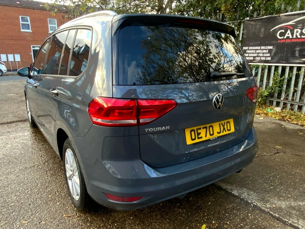 1 Owner from new, 7 Seats, 2 Keys,Full VW Service History from: 18785 miles, 36985, 41290 miles. 22/08/2026 6 Month Warranty (Can be extended for upto 3 years), Finance Available [Hp/PCP], Part-exchange considered, Nationwide delivery Mobile phone App interface, Apple CarPlay,Front & Rear distance controle parking sensor,Panoramic sunroof,Dynamic brake lights, Cruise Control with Limiter, Electronic Parking Brake with Auto Hold Function,Power folding side mirror This 2021 Volkswagen Touran TSI EVO SE Family is a superb example, having had only one owner since new. This Euro 6 compliant 1.5 litre petrol model offers comfortable seating for seven, making it an ideal choice for families. It comes equipped with manual air conditioning, a Composition Media system featuring Bluetooth connectivity, and a delightful opening panoramic sunroof. For ease of parking, it includes front and rear parking sensors, and the dusk sensor automatically activates the headlights, enhancing safety and convenience. The Touran TSI EVO SE Family boasts an impressive 0-62mph acceleration time of just 8.9 seconds, demonstrating its responsive performance. This swift acceleration, combined with its practical seven seat layout and comprehensive feature set including the panoramic sunroof and parking assistance, positions this vehicle as a superior option within its class, offering a blend of efficiency, comfort, and driving enjoyment. 12V Socket - 2nd Row Seats and Luggage C, 16in Alloy Wheels - Karlstad, 2 Single Seats in the 3rd Row - Can Be F, 2 Three Point Seat Belts in the 3rd Row, 3 Single Seats in the 2nd Row with Forwa, 3 Three Point Seat Belts in the 2nd Row , 5 Rear Head Restraints, ABS - Anti-Lock Braking System with HBA , Adaptive Cruise Control, Air Conditioning - Manual, Airbags, Alarm, Armrest - Front Centre with Storage Comp, Automatic Coming-Leaving Home Lighting F, Automatic Dimming Interior Rear View Mir, Automatic Post-Collision Braking System, Black Front Air Intake and Radiator Gril, Body Coloured Bumpers Front and Rear, Body Coloured Door Handles, Body Coloured Door Mirrors with Integrat, Car-Net Gu