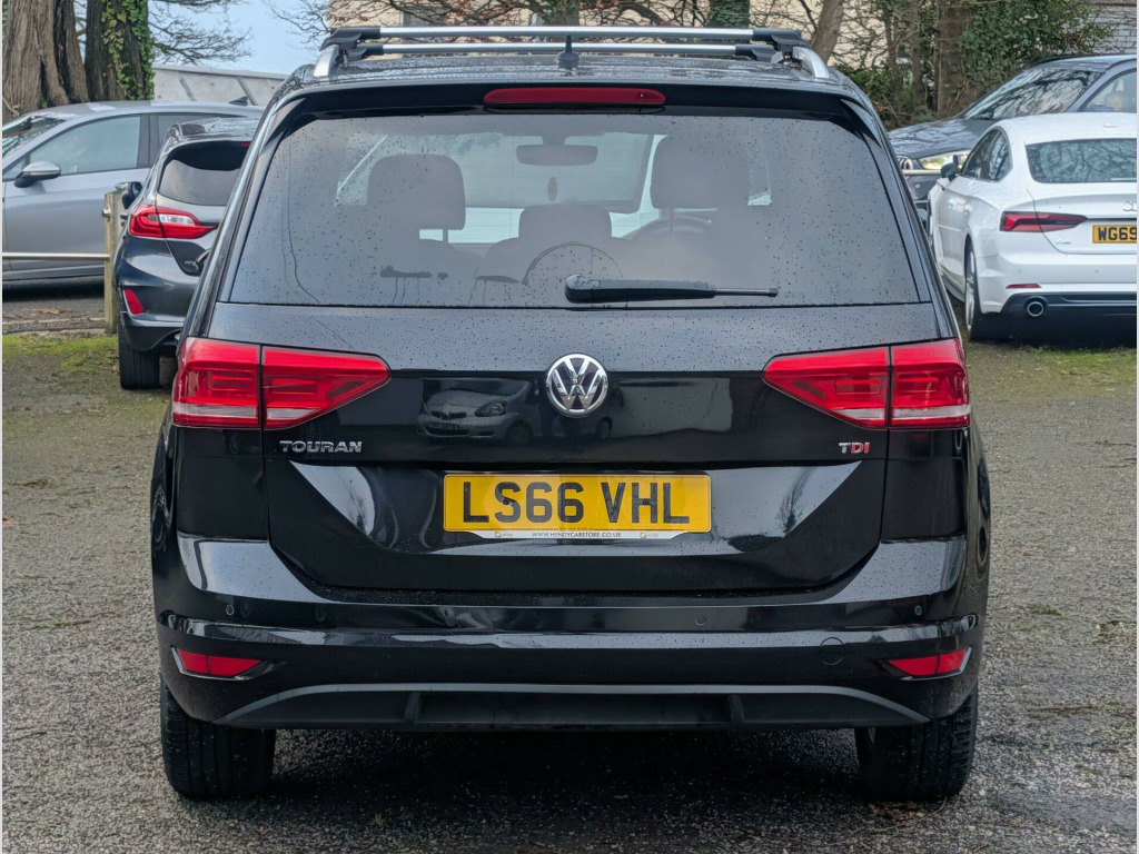 Volkswagen Touran 1.6 TDI BlueMotion Tech SE Family DSG Euro 6 (s/s) 5 Door.We are proud to be selling this 'sought after' seven seater, a VW Touran. With exceptionally low mileage for its age of just 30752, and a good service history, this 2016 SE Family presents a compelling proposition. Powered by an efficient 1.6 litre diesel engine and meeting Euro 6 emissions standards this vehicle is economic transport for the whole family with an impressive 66mpg achievable. It is very comfortable and has a host of useful features which include front and rear parking sensors with parking assistance, a panoramic sunroof with opening function, automatic dusk sensing headlights, and manual air conditioning. You may also find its removable roof rails beneficial.This car will come with a full 12 months MOT, be serviced up to date and, for your complete peace of mind, it will be covered by our own 6 month/6000 mile warranty which can be used at a garage of your choice. If you would like more information, or like to arrange a viewing/test drive, please do not hesitate to get in touch. Part-exchange welcome. Please visit our website (https://www.jonglanvillautocentre.co.uk) for vehicles available which are not advertised on Autotrader. If you are having difficulty finding a particular type/make of vehicle, please get in touch as we may be able to find one for you. d rear lights, cargo management system, carpet mats, lasano cloth - storm grey - palladium, 12v socket - 2nd row seats and luggage compartment, 16in alloy wheels - trondheim, 2 single seats in the 3rd row - can be folded flush into floor of luggage compartment, 2 three point seat belts in the 3rd row, 3 single seats in the 2nd row with forward and backward adjustments - foldable, 3 three point seat belts in the 2nd row with height adjustment on outer seats, 5 rear head restraints, abs - anti-lock braking system with hba - hydraulic brake assist, air conditioning - manual, airbags, alarm with interior protection, armrest - front centre with storage compartment, automatic coming-leaving home lighting function, automatic dimming interior rear view mirror, automatic post-collision braking system, black front air intake and radiator grille, body coloured bumpers front and rear, body coloured door mirrors with integrated indicators incorporating led technology, body coloured exterior door trims and handles, centre armrest 2nd row, chrome-plated radiator grille louvre inserts, composition media system, cruise control - adaptive, cup holders - front x2, discover navigation touch-screen navigation-radio system with car-net guide and inform, door mirrors - electrically adjustable and heated, driver profile selection, drivers seat height adjustment, drivers and front passengers four way adjustable head restraints, drivers and front passengers safety optimised head restraints, drivers and front passengers under seat drawer, dusk sensor - automatic driving lights, esc - electronic stability control including edl - electronic differential lock and asr - traction control, electric windows - front and rear, electronic engine immobiliser, electronic parking brake with auto hold function, family pack, first aid kit and warning triangle, folding table on back of front seats, front assist, front comfort seats with lumbar adjustment, front passengers seat folding backrest, front passengers seat height adjustment, front seat back storage pockets, front three point seat belts with height adjustment, galvanised body, gloss black b pillar, glovebox - illuminated - lockable, halogen clear headlights - range adjustable with daytime running lights, height and reach adjustable steering wheel, high level 3rd brake light, hill hold function, isofix child seat preparation all rear seats 2nd and 3rd row, instrument lighting - white adjustable panel illumination with red night-time illumination, interior light delay, large storage box in roof console, leatherette on rear of both front seats, load lashing points x4 in luggage compartment, low tunnel second row seat, luggage compartment cover - retractable and removable, luggage compartment light, media box in passenger side of dashboard, misfuel prevention device, multifunction centre console with storage box - height laterally adjustable, multifunction computer with 3.5 tft screen, multiple storage compartments in passenger and luggage areas, new brushed design decorative inserts in dash - centre console and front doors, panoramic sunroof, parking sensors - front and rear, power assisted steering - speed sensitive, pre-crash preventive occupant protection, rain sensor, reading lights - front x2 and rear x2, rear screen wash-wipe with intermittent wipe, rear tinted glass - b pillar backwards - approx 65 percent tinted, remote central locking with 2 remote folding keys, roof rails - silver anodised, seats - folding rear backrest, speedo and rev counter - electronic odometer - trip - service interval display - exterior temperature gauge and fuel gauge, steering wheel - multifunction - leather trimmed, storage compartments in all doors, two-tone horn, tyre mobility kit including compressor and sealing foam, tyre pressure loss indicator, vanity mirrors - illuminated, warning buzzer and light for front and 2nd row seat belts if unfastened, windscreen wiper with intermittent wipe, xds electronic differential lock