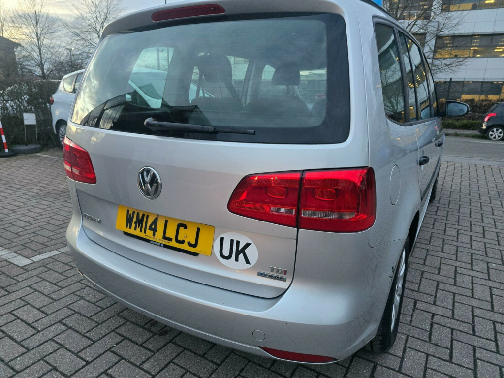 2 former keeper Hpi clear, Comes with fresh Mot and fresh service, 2 keys, low mileage , clean body and interior and drives very smooth: : All the cars in our showroom are fully inspected by our technicians - Most of our cars come with fresh MOT and fresh Service, any car less than 6 months mot , we are happy do fresh mot on the customer request, we are fully confident with our cars - you can buy with peace of mind and they comes with Warranty too- even after warranty we are still more than happy to assist our customer. P/x welcome & Finance Available, To book an appointment please call us on:0127627107/07403277144 or for more info please visit our website:Discover this 2014 Volkswagen Touran TDI S, a remarkably low mileage example for its year, having covered just 82,609 miles. This practical 7 seater boasts a 1.6 litre diesel engine and comes equipped with electronically controlled air conditioning, including climate control, to ensure comfort for all occupants. Inside, you'll find a convenient front centre armrest with a handy storage compartment, perfect for keeping essentials close at hand.This Touran TDI S is presented in the S trim, offering a sensible choice for families or those needing versatile space. Its low insurance group rating is a significant advantage, indicating that running costs are likely to be more economical compared to similar vehicles. This combination of low mileage, practical features, and cost effective ownership makes this Volkswagen Touran a compelling option. v socket - front, 12v socket - luggage compartment, 15in alloy wheels - misano, 2 single seats in the 3rd row - can be folded flush into floor of luggage compartment, abs - anti-lock braking system, asr - anti slip regulation, air conditioning - electronically controlled, airbags - curtain front and rear, airbags - driver, airbags - front passenger, airbags - front passenger with deactivation switch, airbags - front seat side impact, anti-theft wheel bolts, armrest - front centre with storage compartment, aux-in socket, black side bump strips and door handles, body coloured bumpers, body-coloured door mirrors with integrated indicators, cd radio, central locking - remote with 2 remote keys, chrome-plated radiator grille louvre inserts, cruise control, cup holders - front x2, differential lock - electronic, door mirrors - electrically adjustable and heated, dust and pollen filter, esp - electronic stability programme, electric windows - front and rear, electronic engine immobiliser, electronic odometer and trip, exterior temperature gauge, galvanised body, glovebox - illuminated - lockable, hba - hydraulic brake assist, head restraints - front whiplash optimised, head restraints - x2 3rd row, head restraints - x3 2nd row, headlights - halogen clear - range adjustable, height and reach adjustable steering column, high level 3rd brake light, hill hold assist, isofix child seat preparation - outer seats of 2nd row, instrument lighting - white adjustable panel illumination with red night-time illumination, interior light delay, lights on warning buzzer, load lashing points x4 in luggage compartment, luggage compartment cover - retractable, luggage compartment light, multifunction computer, multiple storage compartments in passenger and luggage areas, power assisted steering - speed sensitive, rcd 310 dab radio system - mp3 compatible cd player, radiator grille - black, reading lights - front x2, rear wash wipe with intermittent wipe, reflectors in doors, reverse gear selection activates rear screen wiper, roof rails - black, seatbelt reminder, seats - centre of 2nd row - foldable with table function, seats - foldable and removable single x3 in row 2, seats - height adjustment - front, service interval display, speakers x8, storage compartment in roof console, storage compartments in doors, sun visors - illuminated mirrors, three-spoke steering wheel, tinted glass - heat insulating, trim - interior - matt chromium, tyre repair kit - 7 seat models only, tyre repair kit with jack - 5 seat models only, warning triangle, windscreen wipers with intermittent wipe and 4 position delay