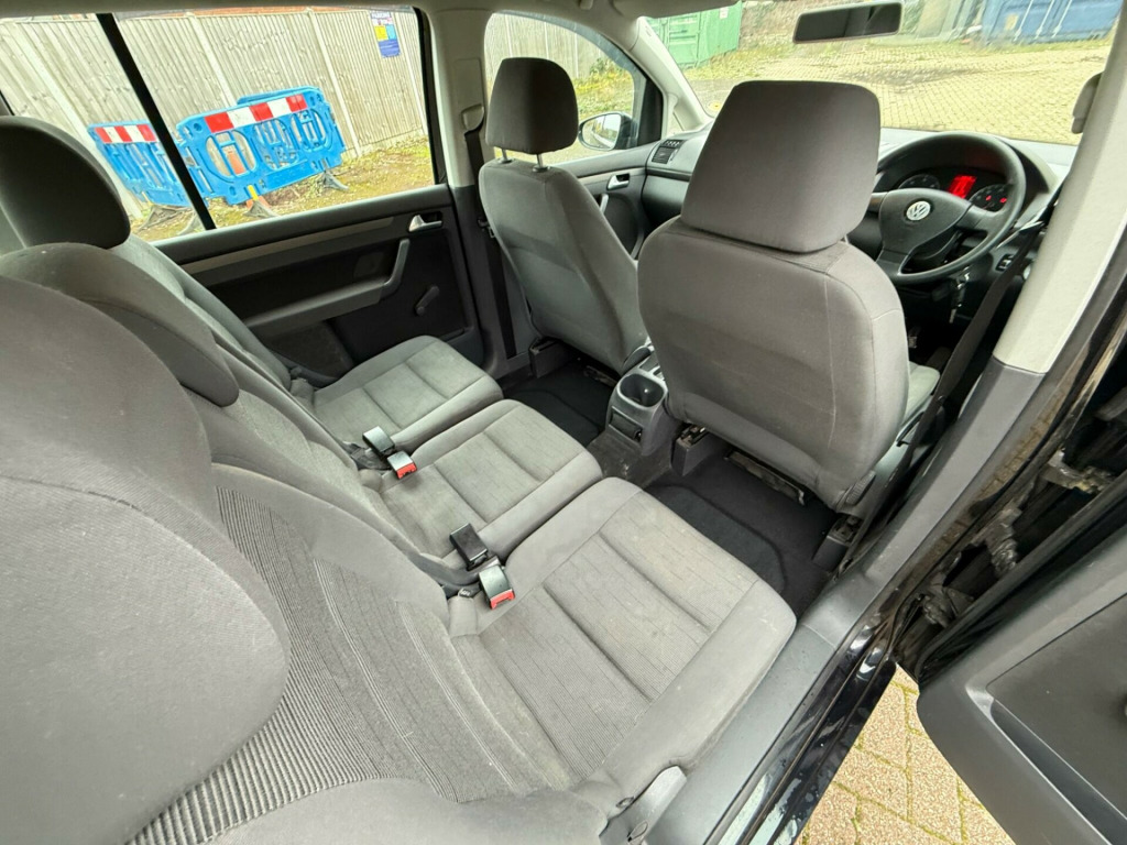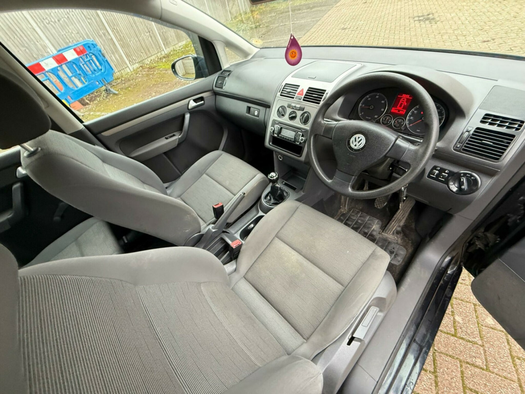 2009 VW Touran TDI, 1.9 diesel, 7 seatsPartial service history, last serviced Jan 2025, timing belt replaced in 202011 months MOT2 previous ownersStarts and drives well with no issues- no warning lights or unwanted noises etcThis car is a part exchange and typically not something we would retail due to the age and milage, so this car is being sold as a TRADE SALE / NO WARRANTY GIVEN OR IMPLIED. Any inspection or test drive welcome. v socket in front and in luggage compartment, 3 single seats in 2nd row- foldable and 2 single seats in 3rd row- foldable, 4 speakers, 6j x 15 steel wheels with 195/65 r15 low rolling resistance tyres, abs (anti - lock braking system) with hba (hydraulic brake assist), asr (traction control), air conditioning - semi automatic, body - coloured bumpers with black bump strip, centre rear seat belt, cruise control, cup holders, front x 2, drivers airbag, drivers and front passengers seat height adjustment, drivers and front passengers whiplash-optimised head restraints, edl (electronic differential lock), esp (electronic stabilisation programme), electric windows, front, electrically heated and adjustable door mirrors, electronic engine immobiliser, exterior temperature gauge, front passengers airbag with deactivation switch, front seat side impact airbags, curtain airbag system - front and 2nd passengers, glovebox, illuminated and lockable, head restraints - 2xfront/3x2nd row/2x3rd row, heat insulating tinted glass, heated rear windscreen, height and reach adjustable steering wheel, illuminated sun visors mirrors, instrument lighting blue, adjustable panel illumin. and interior light delay, isofix child seat preparation, outer seats of 2nd row, microtec interior trim, multifunction computer (highline), power - assisted steering, speed - sensitive, rcd 210 radio/mp3 compatible cd player, rear screen wash/wipe with intermittent wipe, remote central locking with 2 remote folding keys, roof rails, black, sports suspension - lowered by approx 15mm, third brake light, tyre repair kit, upholstery - media cloth, carpet mats, alarm, parking sensor - rear, metallic paint