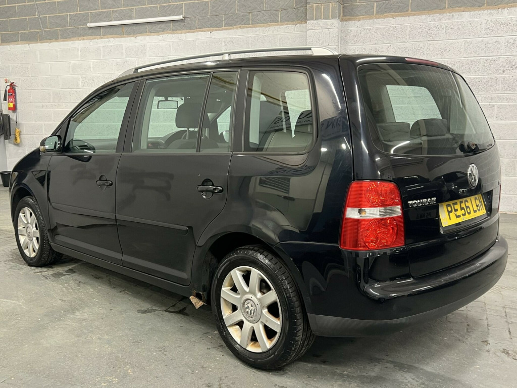 Volkswagen Touran 1.9 TDI PD 100 SE MPVPART EXCHANGE TO CLEAR – SOLD AS SEEN, NO WARRANTYV5 Present2 Keys3 Previous OwnersService History (TEN)Cambelt Replaced at 90000 MilesNEW MOT ProvidedThis 2006 Volkswagen Touran 1.9 TDI SE is a solid and reliable 7-seater, perfect for families or anyone needing extra space. Powered by the trusted 1.9 TDI engine, it’s economical, durable, and cheap to run. The flexible fold-flat seating makes it practical for both passengers and luggage, while the SE trim adds comfort and useful features. A dependable and spacious MPV that’s great for everyday use.. Adjustable Steering Column/Wheel, Air Bag Driver, Air Bag Passenger, Air Bag Side, Air-Conditioning, Alarm, Alloy Wheels (16in), Anti-Lock Brakes, Armrest, Body Coloured Bumpers, Central Door Locking, Computer, Cruise Control, Electric Windows (Front/Rear), Electronic Stability Programme, Head Air Bags, Head Restraints, Immobiliser, In Car Entertainment (Radio/CD), Mirrors External, Power Socket, Power-Assisted Steering, Roof Rails, Seat Height Adjustment, Seat Lumbar Support, Side Protection Mouldings, Speakers, Traction Control System, Upholstery Cloth.