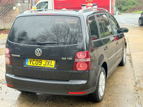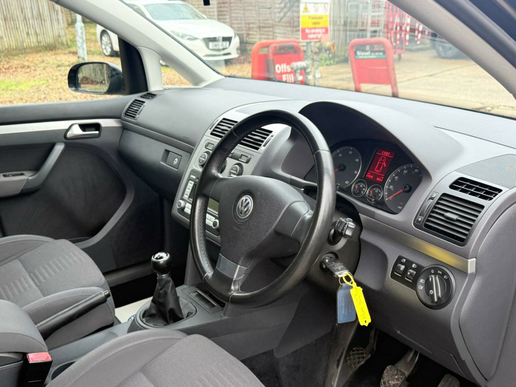 Mot until 31/0/2026 Excellent service History The last service has just been done cambelt and waterpump replaced at 74951 miles 2 keys 2 owners since new the last owner had it since 2012 Clean for its age starts and drives well,practical 7 seater.Viewings and test drives welcome 7 days a week for more cars please visit our websiteThis Volkswagen Touran TDI Sport from 2009 boasts an excellent history, having been owned by only two previous keepers and passing a clear vehicle history check. Powered by a robust 2.0 litre diesel engine, this Sport trim model offers a blend of efficiency and performance. Its well maintained provenance suggests a cared for vehicle, ready for its next chapter.The Touran TDI Sport is designed for practicality and comfort, making it a strong contender in its class. The combination of its reliable diesel engine and the Sport trim level signifies a well equipped and capable vehicle. With only two owners and a clean history, this Touran presents a compelling choice for those seeking a dependable and well looked after MPV. justable steering column/wheel, air bag driver, air bag passenger, air bag side, alloy wheels (16in), anti-lock brakes, armrest, body coloured bumpers, bumpers, carpet, central door locking, centre rear seat belt, climate control, computer, cruise control, cup holder, electric windows (front/rear), electronic stability programme, front fog lights, gear knob leather, head restraints, immobiliser, in car entertainment (radio/cd autochanger), mirrors external (electric heated/folding), parking aid (rear), power socket, power-assisted steering, roof rails, seat - isofix anchorage point, seat height adjustment, seat lumbar support, speakers, steering wheel leather, tinted glass, traction control system, upholstery cloth, windscreen wiper