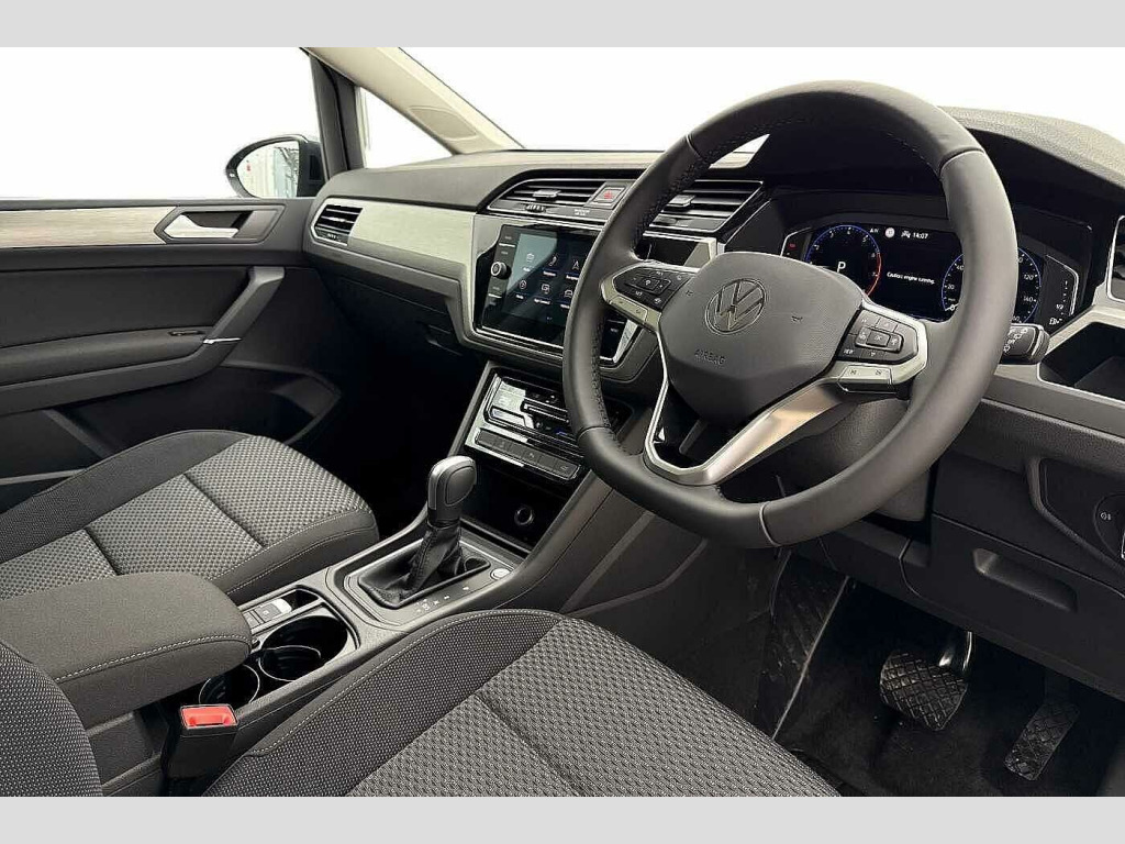 Now available at Wrexham Volkswagen is this Volkswagen Touran Match. Powering this Touran is a 1.5 TSI 150PS engine with automatic transmission. The exterior is finished in the 'Dolphin Grey' paintwork, which is complimented by the 17in Salvador wheels to the side. The 'Match' trim comes with a range of features as standard such as the LED headlights that keep the roads well lit, rear tinted windows for passenger privacy, keyless entry and electric tailgate for convenient accessibility, and parking sensors that assist with maneuvering alongside the rear view camera.