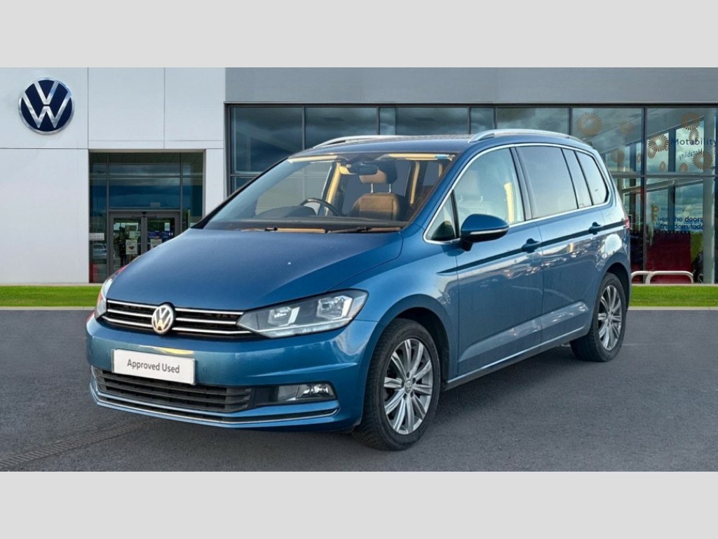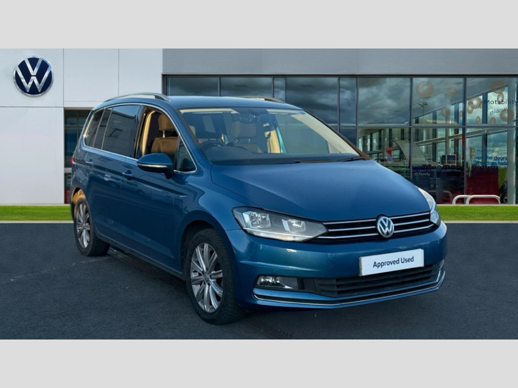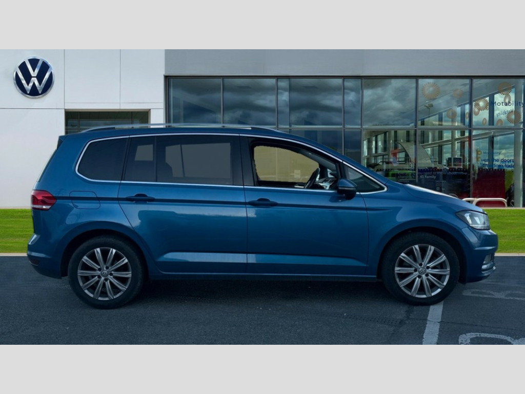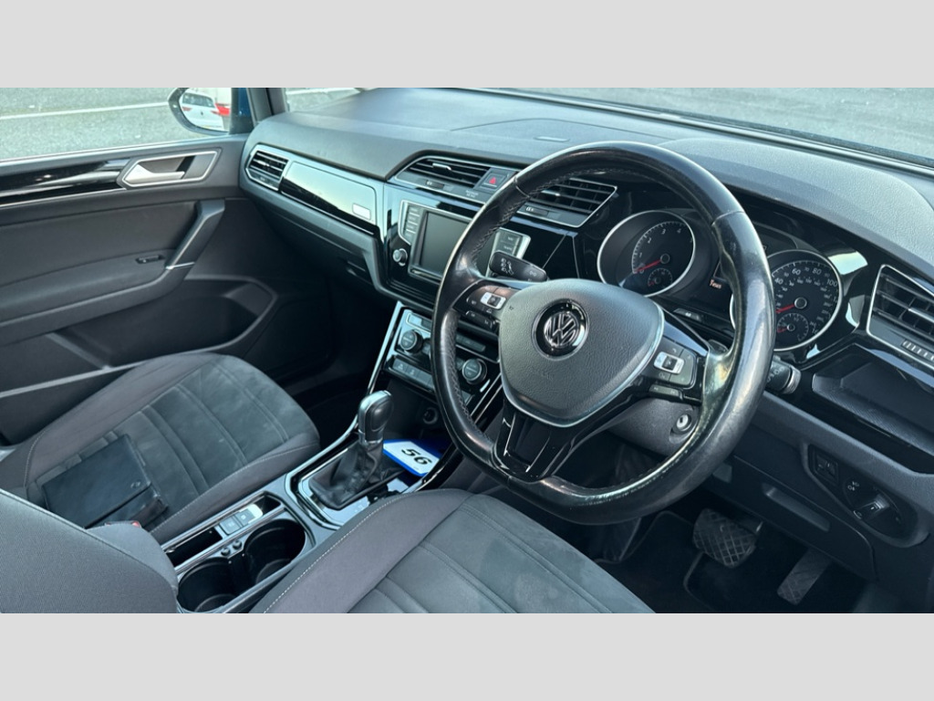 Volkswagen Touran 1.4 TSI SEL 5dr DSG Adaptive cruise control, App-Connect, Audible lights on warning, Driver alert system, Driver profile selection, External temperature gauge, Flat tyre indicator, Speed limiter, Speed sensitive power steering, Trip and service interval display, 8 Speakers, DAB Digital radio, Multi device interface, SD card slot, Aerial integrated into side window, Auto dimming rear view mirror/rain sensor, Automatic coming/leaving home lighting function, Automatic headlights, Body colour bumpers, Body colour door handles, Body colour door mirrors with integral indicators, Chrome fog light surround, Chrome lower front bumper insert, Chrome trimmed front air intake surrounds, Chrome trimmed radiator grille louvre inserts, Chrome trimmed side windows, Electric folding door mirrors, Electric heated + adjustable door mirrors, Front and rear electric windows, Front fog lights with static cornering function, Green tinted heat insulating glass, Heat insulated tinted glass 65% light absorbing from B pillar back, Rear wash/wipe with intermittent wipe setting, Silver roof rails, Tailgate wiper- reverse gear activation, Windscreen wipers/ intermittent wipe + 4 position delay, 12V power point for Row 2, 12V socket in luggage compartment, 2 head restraints in 3rd row, 2 individual fold flat 3rd row seats, 2 three point seatbelts in 3rd row, 2nd row centre seat converts into table, 3 head restraints in 2nd row, 3 single slide/fold/removable 2nd row seats, 3 spoke steering wheel, 3 Zone electronic climate control with automatic air recirculation, 3x3 point seatbelts on 2nd row with height adjust on outer seats, 4 boot load lashing points, 4 way adjustable front head restraints, Ambient lighting in door trim, Centre armrest on rear seat bench, Driver and front passenger under seat drawer, DSG Paddle Shifts, Dust/pollen filters, Folding front passenger seat, Front and rear reading lights, Front centre armrest with storage compartment, Front cupholders x 2, Front height/lumbar adj comfort seats, Front passenger seat height adjust, Front seat storage pockets, Front seatback folding tables, Front/rear floor mats, Height adjustable driver's seat, Height/reach adjust steering wheel, Illuminated sun visor mirrors, Interior light with delay, Isofix on 2nd row outer seats, Isofix on 3rd row seats, Leather gear knob and handbrake grip, Lockable/illuminated glovebox, Luggage compartment lighting, Multi storage in passenger/luggage areas, Multi-function centre console with storage facilities, Retractable luggage cover, Split folding rear seat backrests, Storage bins on all doors, Storage in roof console, Mirror pack - Touran, 3 point height adjustable front seatbelts, ABS, Automatic post collision braking system, Door open warning reflectors, Driver/Front Passenger airbags, Driver/Passenger whiplash optimised head restraints, Drivers knee airbag, EDL + ASR, Electrically operated child locks on rear doors, Electronic parking brake, ESP, Front and rear (row 2) curtain airbags, Front assist including city emergency braking, Front seat side impact airbags, Hill hold control, Hydraulic Brake Assist (HBA), Manual passenger airbag deactivation function, Pre crash system, Seatbelt warning lamp and buzzer, Traction control, Warning triangle, Alarm, Electronic engine immobiliser, Remote central locking with 2 remote folding keys, Piano black decorative inserts