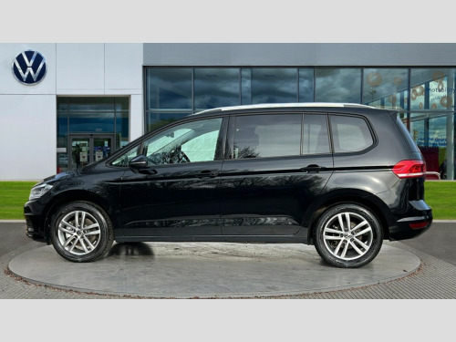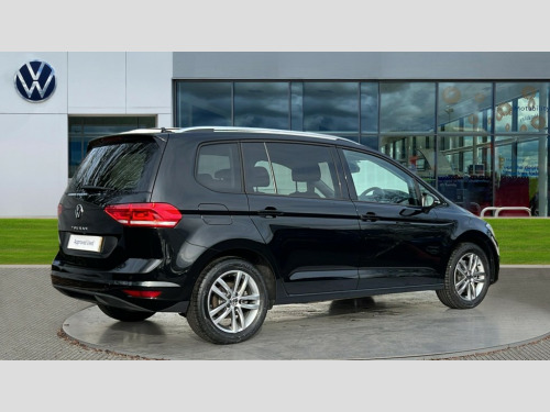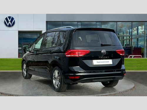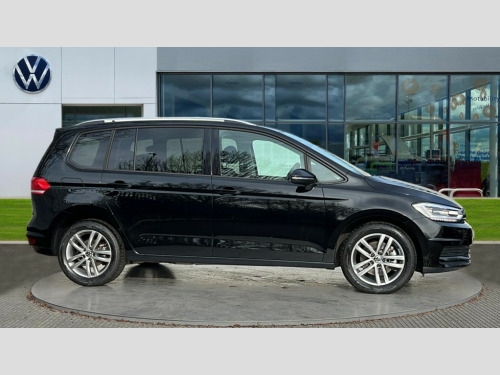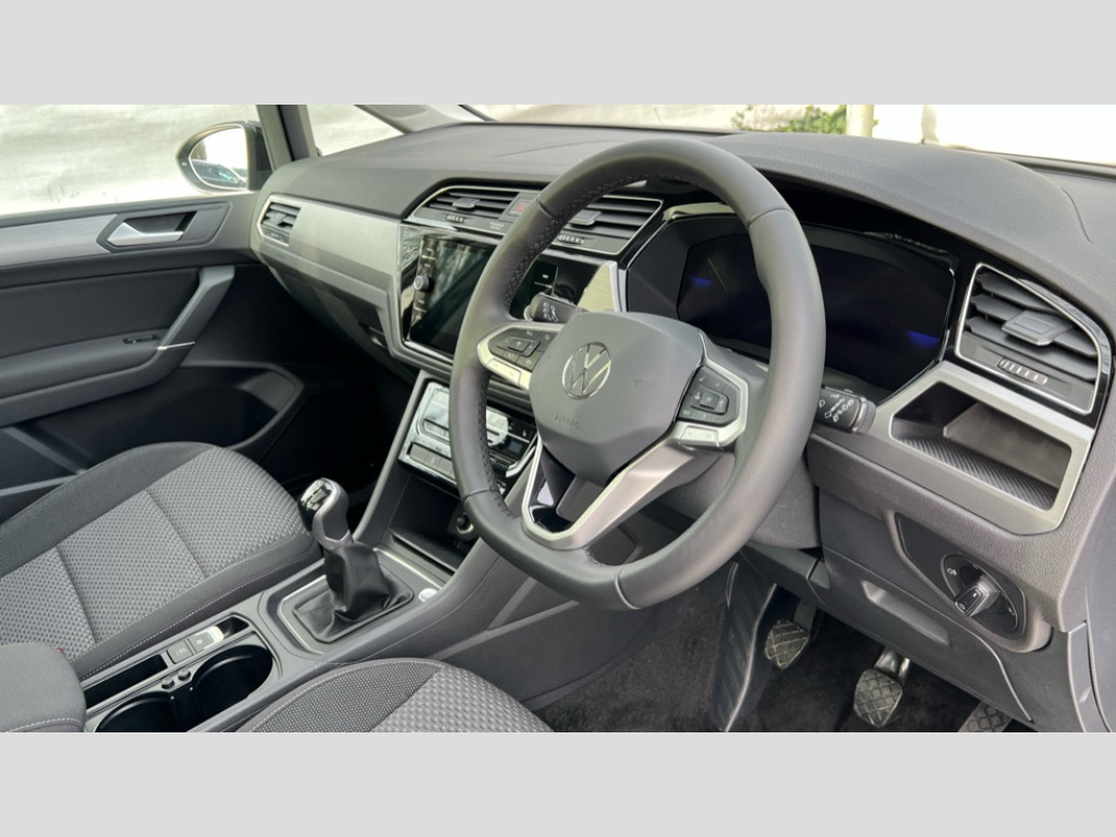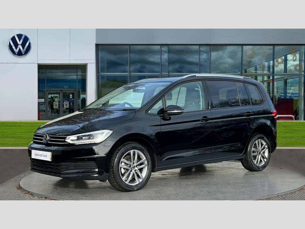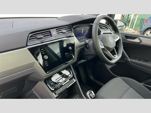 Volkswagen Touran 1.5 TSI EVO Match 5dr Adaptive cruise control, Audible lights on warning, Discover media navigation touchscreen navigation/radio system with streaming and internet, Driver alert system, Driver profile selection, Dynamic road sign display, Electric tailgate, Electronic odometer, Emergency services call system, Extended, crash-active and proactive Pedestrian and cyclist monitoring, External temperature gauge, Front parking sensors, Lane change system side assist and rear traffic alert, Lane keep assist, Misfuelling protection device, Mobile pairing with SMS function, Mobile phone interface with inductive charging, Rear view camera displayed via vehicles audio system display, Rev counter with fuel gauge, Side scan, Speed limiter, Speed sensitive power steering, Stop/start system, Think blue trainer driver tips and journey analysis, Trip and service interval display, We connect' and 'We connect plus' functionality, Petrol Particulate Filter, Rear stabiliser bar, XDS electronic differential lock, 4x20 watt output, 8 Speakers, Audio Connectivity System, DAB Digital radio, External USB-C data socket with increased charging performance - 2 USB sockets 45W, MP3/WMA compatability, SD card slot, Title and cover art display, USB connection, Aerial integrated into side window, Auto dimming door mirrors, on driver side, surround lighting and front passenger side mirror lowering function, Auto dimming rear view mirror, Automatic coming/leaving home lighting function, Body colour bumpers, Body colour door handles, Body colour door mirrors with integral indicators, Door mirrors with memory function, Dusk sensor + auto driving lights, Electric folding door mirrors, Electric heated + adjustable door mirrors, Electric, glass sliding/tilting panoramic sunroof including integrated roller blind and LED lighting around aperture, Front and rear electric windows, Fully galvanised body, Gloss black finish B pillar, Green tinted heat insulating glass, High level third brake light, Rain sensor, Rear fog lights, Rear side wing doors, Rear tinted glass from B-pillar backwards approx 65% tinted, Rear wash/wipe with intermittent wipe setting, Removable engine badge, Silver roof rails, Tailgate wiper- reverse gear activation, Twin chrome exhaust tailpipes, Volkswagen roundel, Windscreen wipers intermittent wipe, 12V power point for Row 2, 12V socket in luggage compartment, 2 individual fold flat 3rd row seats, 2 three point seatbelts in 3rd row, 2nd row centre armrest, 2nd row centre seat converts into table, 3 single slide/fold/removable 2nd row seats, 3 spoke steering wheel, 3x3 point seatbelts on 2nd row with height adjust on outer seats, 4 boot load lashing points, 4 way adjustable front head restraints, 5 headrests, Activated charcoal canister for intensified evaporation system, Air care climatronic 3 zone air conditioning system with rear air conditioning control panel, Chrome plated radiator grille inserts, air vent surrounds and light switch surrounds, Driver and front passenger under seat drawer, Dust/pollen filters, Foldable front passenger seat backrest with load through function, Front and rear reading lights X 2, Front centre armrest with storage compartment, Front comfort seats with lumbar support, Front cupholders x 2, Front passenger seat height adjust, Front seat storage pockets, Front seatback folding tables, Height adjustable driver's seat, Height/reach adjust steering wheel, Illuminated glovebox, Instrument lighting white adjustable panel illumination with red night time illumination, Interior light with delay, Isofix on 2nd row outer seats, Isofix on 3rd row seats, Large storage compartment in roof console, Lasano cloth upholstery, Leather multifunction steering wheel with gear knob, Leatherette on rear of front seats, Low tunnel 2nd row seat, Luggage compartment lighting, Media box in dashboard on passenger side, Multi storage in passenger/luggage areas, Multi-function centre console with storage facilities, Retractable luggage cover, Split folding rear seat backrests, Storage bins on all doors, Sun visors with illuminated vanity mirrors, Family Pack - Touran, Winter pack without heated washer jet - Touran, 3 point height adjustable front seatbelts, Auto hold function, Automatic post collision braking system, Door open warning reflectors, Driver/Front Passenger airbags, Drivers knee airbag, EDL + ASR, Electronic parking brake, Energy recovery system, ESC with ABS, First aid kit, Front and rear (row 2) curtain airbags, Front assist with autonomous emergency braking, Front seat side impact airbags, Front seatbelt pretensioners, Front/rear disc brakes, Hill hold control, Hydraulic Brake Assist (HBA), Loose wheel warning function, Manual passenger airbag deactivation function, Pre crash preventive occupant protection, Proactive passenger protection system with front and side assist, Rear child proof door locks, Road sign recognition, Seatbelt warning lamp and buzzer, Traction control, Two tone horn, Warning triangle, Alarm with remote central locking and interior protection, Electronic engine immobiliser, Keyless Access Keyless locking and starting system with SAFELOCK, New brushed design decorative inserts in dash and front doors, 17" Salvador alloy wheels with anti-theft wheel bolts, 215/55 R17 self sealing tyres with low rolling resistance