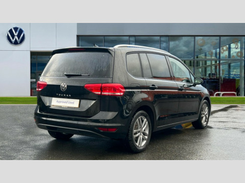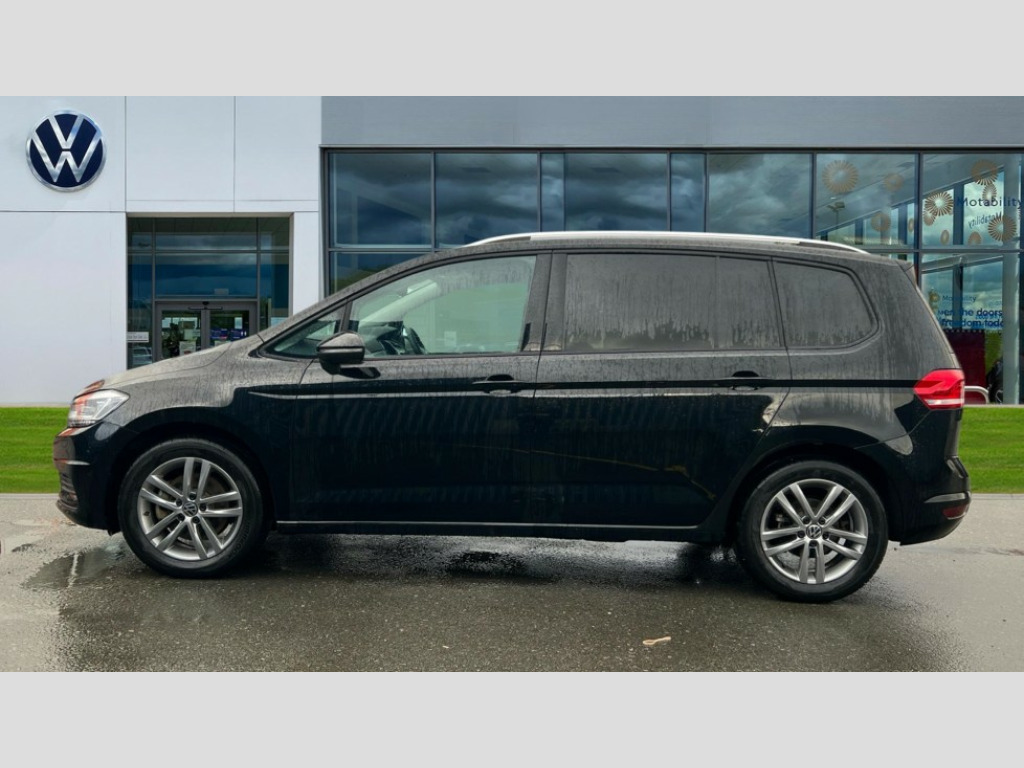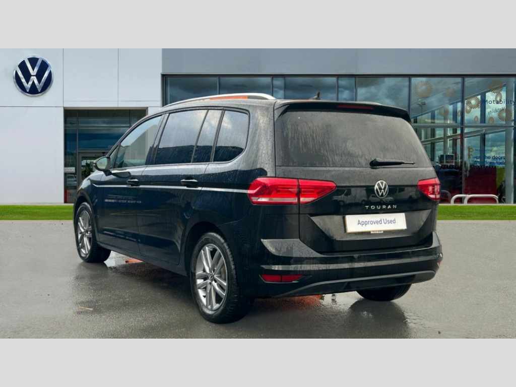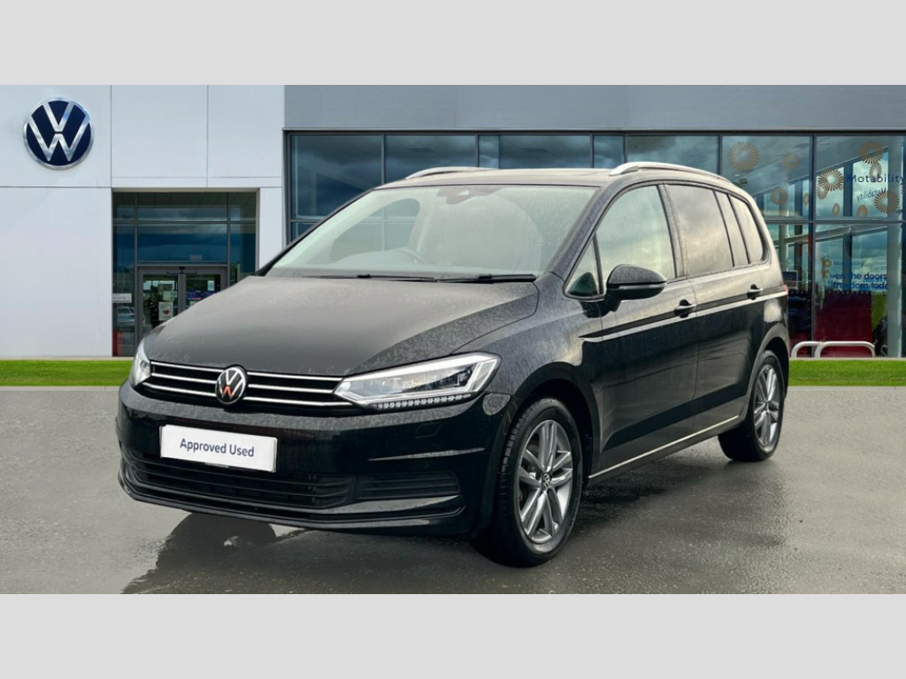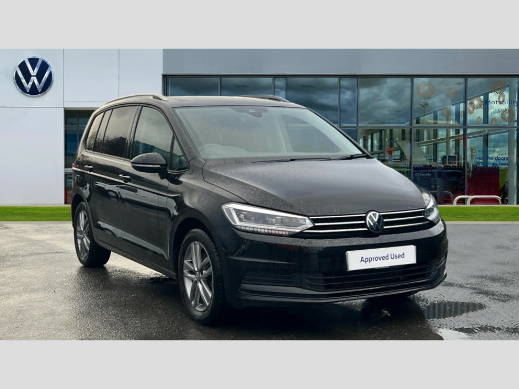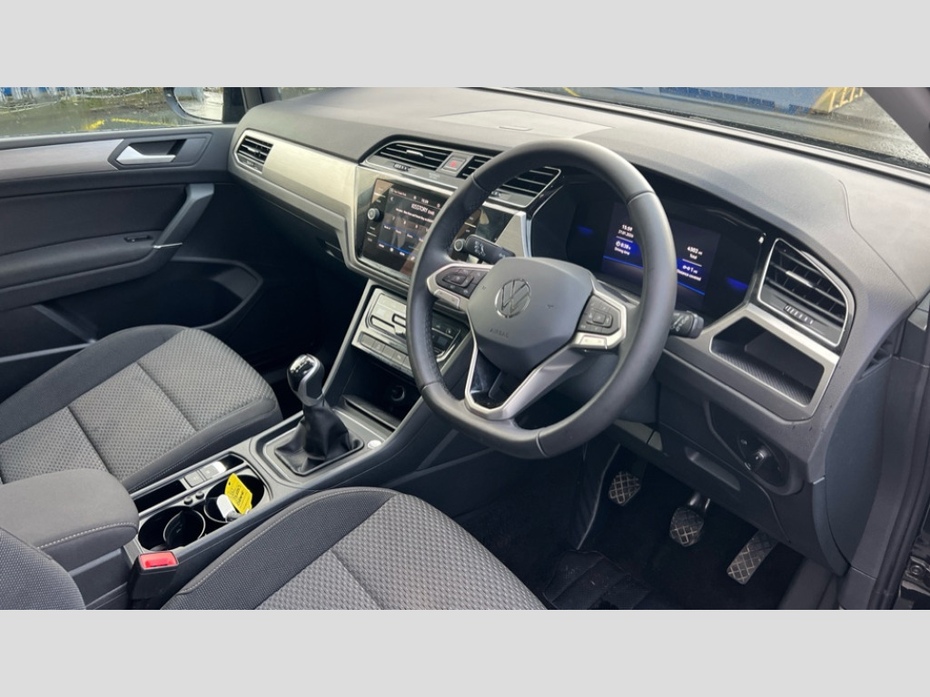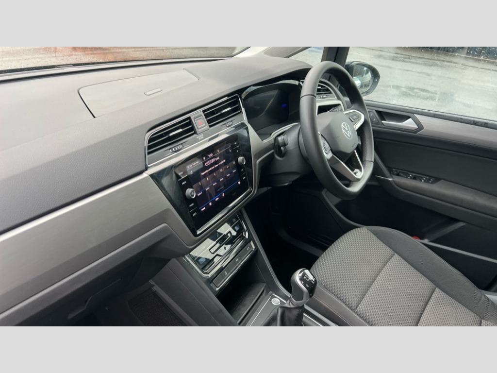 Volkswagen Touran 1.5 TSI EVO Match 5dr Adaptive cruise control, Audible lights on warning, Discover media navigation touchscreen navigation/radio system with streaming and internet, Driver alert system, Driver profile selection, Dynamic road sign display, Electric tailgate, Electronic odometer, Emergency services call system, Extended, crash-active and proactive Pedestrian and cyclist monitoring, External temperature gauge, Front parking sensors, Lane change system side assist and rear traffic alert, Lane keep assist, Misfuelling protection device, Mobile pairing with SMS function, Mobile phone interface with inductive charging, Rear view camera displayed via vehicles audio system display, Rev counter with fuel gauge, Side scan, Speed limiter, Speed sensitive power steering, Stop/start system, Think blue trainer driver tips and journey analysis, Trip and service interval display, We connect' and 'We connect plus' functionality, Petrol Particulate Filter, Rear stabiliser bar, XDS electronic differential lock, 4x20 watt output, 8 Speakers, Audio Connectivity System, DAB Digital radio, External USB-C data socket with increased charging performance - 2 USB sockets 45W, MP3/WMA compatability, SD card slot, Title and cover art display, USB connection, Aerial integrated into side window, Auto dimming door mirrors, on driver side, surround lighting and front passenger side mirror lowering function, Auto dimming rear view mirror, Automatic coming/leaving home lighting function, Body colour bumpers, Body colour door handles, Body colour door mirrors with integral indicators, Door mirrors with memory function, Dusk sensor + auto driving lights, Electric folding door mirrors, Electric heated + adjustable door mirrors, Electric, glass sliding/tilting panoramic sunroof including integrated roller blind and LED lighting around aperture, Front and rear electric windows, Fully galvanised body, Gloss black finish B pillar, Green tinted heat insulating glass, High level third brake light, Rain sensor, Rear fog lights, Rear side wing doors, Rear tinted glass from B-pillar backwards approx 65% tinted, Rear wash/wipe with intermittent wipe setting, Removable engine badge, Silver roof rails, Tailgate wiper- reverse gear activation, Twin chrome exhaust tailpipes, Volkswagen roundel, Windscreen wipers intermittent wipe, 12V power point for Row 2, 12V socket in luggage compartment, 2 individual fold flat 3rd row seats, 2 three point seatbelts in 3rd row, 2nd row centre armrest, 2nd row centre seat converts into table, 3 single slide/fold/removable 2nd row seats, 3 spoke steering wheel, 3x3 point seatbelts on 2nd row with height adjust on outer seats, 4 boot load lashing points, 4 way adjustable front head restraints, 5 headrests, Activated charcoal canister for intensified evaporation system, Air care climatronic 3 zone air conditioning system with rear air conditioning control panel, Chrome plated radiator grille inserts, air vent surrounds and light switch surrounds, Driver and front passenger under seat drawer, Dust/pollen filters, Foldable front passenger seat backrest with load through function, Front and rear reading lights X 2, Front centre armrest with storage compartment, Front comfort seats with lumbar support, Front cupholders x 2, Front passenger seat height adjust, Front seat storage pockets, Front seatback folding tables, Height adjustable driver's seat, Height/reach adjust steering wheel, Illuminated glovebox, Instrument lighting white adjustable panel illumination with red night time illumination, Interior light with delay, Isofix on 2nd row outer seats, Isofix on 3rd row seats, Large storage compartment in roof console, Lasano cloth upholstery, Leather multifunction steering wheel with gear knob, Leatherette on rear of front seats, Low tunnel 2nd row seat, Luggage compartment lighting, Media box in dashboard on passenger side, Multi storage in passenger/luggage areas, Multi-function centre console with storage facilities, Retractable luggage cover, Split folding rear seat backrests, Storage bins on all doors, Sun visors with illuminated vanity mirrors, Family Pack - Touran, Winter pack without heated washer jet - Touran, 3 point height adjustable front seatbelts, Auto hold function, Automatic post collision braking system, Door open warning reflectors, Driver/Front Passenger airbags, Drivers knee airbag, EDL + ASR, Electronic parking brake, Energy recovery system, ESC with ABS, First aid kit, Front and rear (row 2) curtain airbags, Front assist with autonomous emergency braking, Front seat side impact airbags, Front seatbelt pretensioners, Front/rear disc brakes, Hill hold control, Hydraulic Brake Assist (HBA), Loose wheel warning function, Manual passenger airbag deactivation function, Pre crash preventive occupant protection, Proactive passenger protection system with front and side assist, Rear child proof door locks, Road sign recognition, Seatbelt warning lamp and buzzer, Traction control, Two tone horn, Warning triangle, Alarm with remote central locking and interior protection, Electronic engine immobiliser, Keyless Access Keyless locking and starting system with SAFELOCK, New brushed design decorative inserts in dash and front doors, 17" Salvador alloy wheels with anti-theft wheel bolts, 215/55 R17 self sealing tyres with low rolling resistance