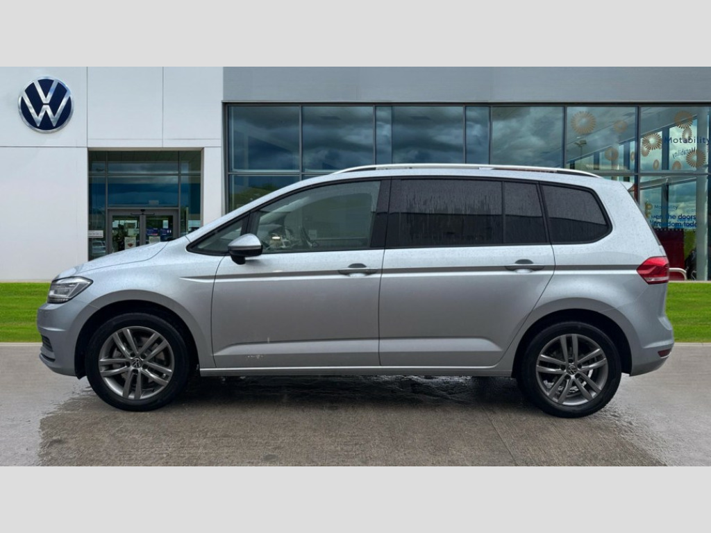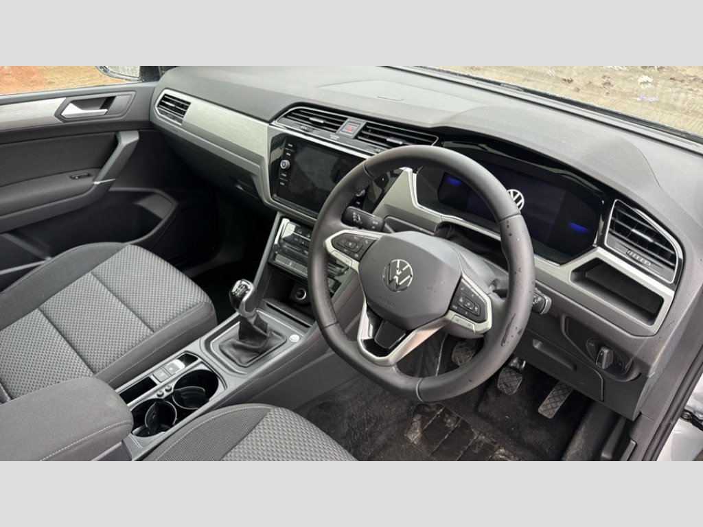 Volkswagen Touran 1.5 TSI EVO Match 5dr Adaptive cruise control, Audible lights on warning, Discover media navigation touchscreen navigation/radio system with streaming and internet, Driver alert system, Driver profile selection, Dynamic road sign display, Electric tailgate, Electronic odometer, Emergency services call system, Extended, crash-active and proactive Pedestrian and cyclist monitoring, External temperature gauge, Front parking sensors, Lane change system side assist and rear traffic alert, Lane keep assist, Misfuelling protection device, Mobile pairing with SMS function, Mobile phone interface with inductive charging, Rear view camera displayed via vehicles audio system display, Rev counter with fuel gauge, Side scan, Speed limiter, Speed sensitive power steering, Stop/start system, Think blue trainer driver tips and journey analysis, Trip and service interval display, We connect' and 'We connect plus' functionality, Petrol Particulate Filter, Rear stabiliser bar, XDS electronic differential lock, 4x20 watt output, 8 Speakers, Audio Connectivity System, DAB Digital radio, External USB-C data socket with increased charging performance - 2 USB sockets 45W, MP3/WMA compatability, SD card slot, Title and cover art display, USB connection, Aerial integrated into side window, Auto dimming door mirrors, on driver side, surround lighting and front passenger side mirror lowering function, Auto dimming rear view mirror, Automatic coming/leaving home lighting function, Body colour bumpers, Body colour door handles, Body colour door mirrors with integral indicators, Door mirrors with memory function, Dusk sensor + auto driving lights, Electric folding door mirrors, Electric heated + adjustable door mirrors, Electric, glass sliding/tilting panoramic sunroof including integrated roller blind and LED lighting around aperture, Front and rear electric windows, Fully galvanised body, Gloss black finish B pillar, Green tinted heat insulating glass, High level third brake light, Rain sensor, Rear fog lights, Rear side wing doors, Rear tinted glass from B-pillar backwards approx 65% tinted, Rear wash/wipe with intermittent wipe setting, Removable engine badge, Silver roof rails, Tailgate wiper- reverse gear activation, Twin chrome exhaust tailpipes, Volkswagen roundel, Windscreen wipers intermittent wipe, 12V power point for Row 2, 12V socket in luggage compartment, 2 individual fold flat 3rd row seats, 2 three point seatbelts in 3rd row, 2nd row centre armrest, 2nd row centre seat converts into table, 3 single slide/fold/removable 2nd row seats, 3 spoke steering wheel, 3x3 point seatbelts on 2nd row with height adjust on outer seats, 4 boot load lashing points, 4 way adjustable front head restraints, 5 headrests, Activated charcoal canister for intensified evaporation system, Air care climatronic 3 zone air conditioning system with rear air conditioning control panel, Chrome plated radiator grille inserts, air vent surrounds and light switch surrounds, Driver and front passenger under seat drawer, Dust/pollen filters, Foldable front passenger seat backrest with load through function, Front and rear reading lights X 2, Front centre armrest with storage compartment, Front comfort seats with lumbar support, Front cupholders x 2, Front passenger seat height adjust, Front seat storage pockets, Front seatback folding tables, Height adjustable driver's seat, Height/reach adjust steering wheel, Illuminated glovebox, Instrument lighting white adjustable panel illumination with red night time illumination, Interior light with delay, Isofix on 2nd row outer seats, Isofix on 3rd row seats, Large storage compartment in roof console, Lasano cloth upholstery, Leather multifunction steering wheel with gear knob, Leatherette on rear of front seats, Low tunnel 2nd row seat, Luggage compartment lighting, Media box in dashboard on passenger side, Multi storage in passenger/luggage areas, Multi-function centre console with storage facilities, Retractable luggage cover, Split folding rear seat backrests, Storage bins on all doors, Sun visors with illuminated vanity mirrors, Family Pack - Touran, Winter pack without heated washer jet - Touran, 3 point height adjustable front seatbelts, Auto hold function, Automatic post collision braking system, Door open warning reflectors, Driver/Front Passenger airbags, Drivers knee airbag, EDL + ASR, Electronic parking brake, Energy recovery system, ESC with ABS, First aid kit, Front and rear (row 2) curtain airbags, Front assist with autonomous emergency braking, Front seat side impact airbags, Front seatbelt pretensioners, Front/rear disc brakes, Hill hold control, Hydraulic Brake Assist (HBA), Loose wheel warning function, Manual passenger airbag deactivation function, Pre crash preventive occupant protection, Proactive passenger protection system with front and side assist, Rear child proof door locks, Road sign recognition, Seatbelt warning lamp and buzzer, Traction control, Two tone horn, Warning triangle, Alarm with remote central locking and interior protection, Electronic engine immobiliser, Keyless Access Keyless locking and starting system with SAFELOCK, New brushed design decorative inserts in dash and front doors, 17" Salvador alloy wheels with anti-theft wheel bolts, 215/55 R17 self sealing tyres with low rolling resistance