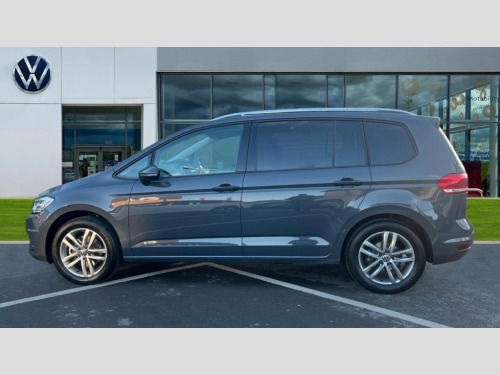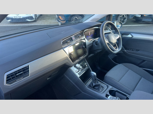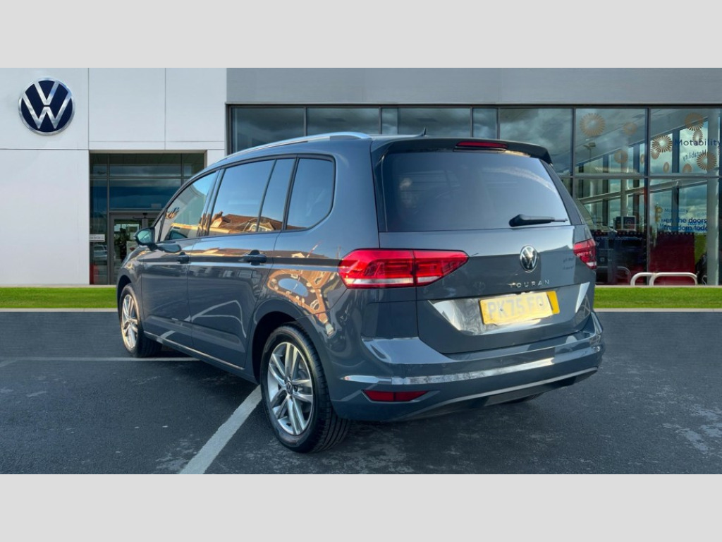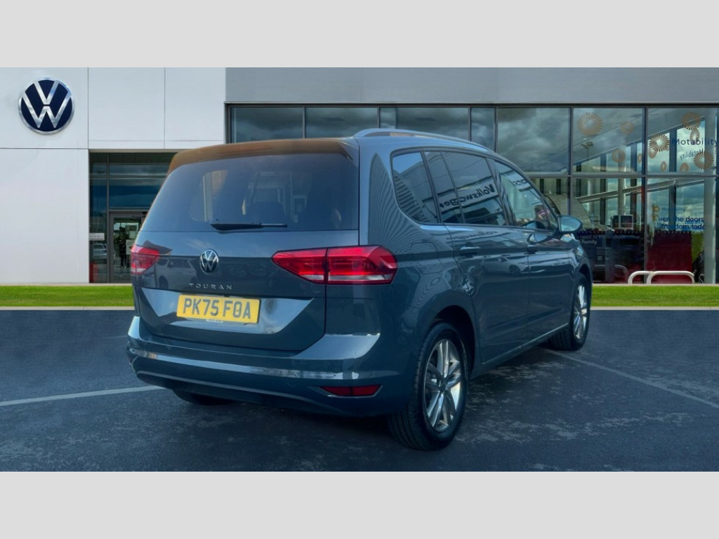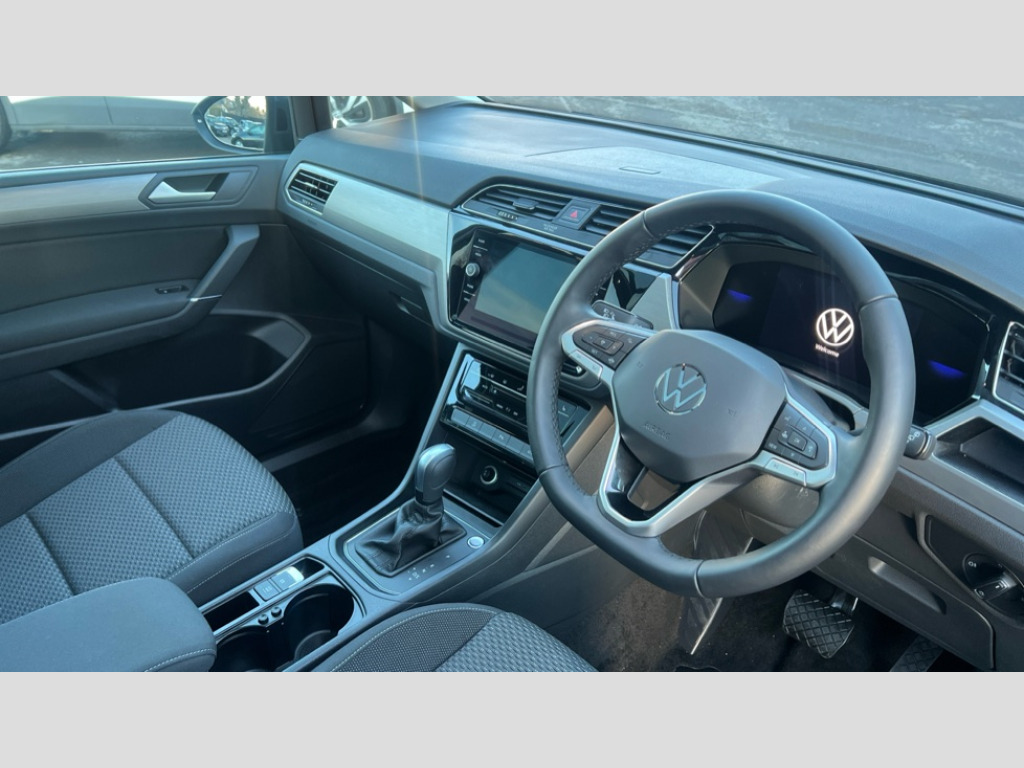 Volkswagen Touran 1.5 TSI EVO Match 5dr DSG Adaptive cruise control, Audible lights on warning, Discover media navigation touchscreen navigation/radio system with streaming and internet, Driver alert system, Driver profile selection, Dynamic road sign display, Electric tailgate, Electronic odometer, Emergency services call system, Extended, crash-active and proactive Pedestrian and cyclist monitoring, External temperature gauge, Front parking sensors, Lane change system side assist and rear traffic alert, Lane keep assist, Misfuelling protection device, Mobile pairing with SMS function, Mobile phone interface with inductive charging, Rear view camera displayed via vehicles audio system display, Rev counter with fuel gauge, Side scan, Speed limiter, Speed sensitive power steering, Stop/start system, Think blue trainer driver tips and journey analysis, Trip and service interval display, We connect' and 'We connect plus' functionality, Petrol Particulate Filter, Rear stabiliser bar, XDS electronic differential lock, 4x20 watt output, 8 Speakers, Audio Connectivity System, DAB Digital radio, External USB-C data socket with increased charging performance - 2 USB sockets 45W, MP3/WMA compatability, SD card slot, Title and cover art display, USB connection, Aerial integrated into side window, Auto dimming door mirrors, on driver side, surround lighting and front passenger side mirror lowering function, Auto dimming rear view mirror, Automatic coming/leaving home lighting function, Body colour bumpers, Body colour door handles, Body colour door mirrors with integral indicators, Door mirrors with memory function, Dusk sensor + auto driving lights, Electric folding door mirrors, Electric heated + adjustable door mirrors, Electric, glass sliding/tilting panoramic sunroof including integrated roller blind and LED lighting around aperture, Front and rear electric windows, Fully galvanised body, Gloss black finish B pillar, Green tinted heat insulating glass, High level third brake light, Rain sensor, Rear fog lights, Rear side wing doors, Rear tinted glass from B-pillar backwards approx 65% tinted, Rear wash/wipe with intermittent wipe setting, Removable engine badge, Silver roof rails, Tailgate wiper- reverse gear activation, Twin chrome exhaust tailpipes, Volkswagen roundel, Windscreen wipers intermittent wipe, 12V power point for Row 2, 12V socket in luggage compartment, 2 individual fold flat 3rd row seats, 2 three point seatbelts in 3rd row, 2nd row centre armrest, 2nd row centre seat converts into table, 3 single slide/fold/removable 2nd row seats, 3 spoke steering wheel, 3x3 point seatbelts on 2nd row with height adjust on outer seats, 4 boot load lashing points, 4 way adjustable front head restraints, 5 headrests, Activated charcoal canister for intensified evaporation system, Air care climatronic 3 zone air conditioning system with rear air conditioning control panel, Chrome plated radiator grille inserts, air vent surrounds and light switch surrounds, Driver and front passenger under seat drawer, Dust/pollen filters, Foldable front passenger seat backrest with load through function, Front and rear reading lights X 2, Front centre armrest with storage compartment, Front comfort seats with lumbar support, Front cupholders x 2, Front passenger seat height adjust, Front seat storage pockets, Front seatback folding tables, Height adjustable driver's seat, Height/reach adjust steering wheel, Illuminated glovebox, Instrument lighting white adjustable panel illumination with red night time illumination, Interior light with delay, Isofix on 2nd row outer seats, Isofix on 3rd row seats, Large storage compartment in roof console, Lasano cloth upholstery, Leather multifunction steering wheel with gear knob, Leatherette on rear of front seats, Low tunnel 2nd row seat, Luggage compartment lighting, Media box in dashboard on passenger side, Multi storage in passenger/luggage areas, Multi-function centre console with storage facilities, Retractable luggage cover, Split folding rear seat backrests, Storage bins on all doors, Sun visors with illuminated vanity mirrors, Family Pack - Touran, Winter pack without heated washer jet - Touran, 3 point height adjustable front seatbelts, Auto hold function, Automatic post collision braking system, Door open warning reflectors, Driver/Front Passenger airbags, Drivers knee airbag, EDL + ASR, Electronic parking brake, Energy recovery system, ESC with ABS, First aid kit, Front and rear (row 2) curtain airbags, Front assist with autonomous emergency braking, Front seat side impact airbags, Front seatbelt pretensioners, Front/rear disc brakes, Hill hold control, Hydraulic Brake Assist (HBA), Loose wheel warning function, Manual passenger airbag deactivation function, Pre crash preventive occupant protection, Proactive passenger protection system with front and side assist, Rear child proof door locks, Road sign recognition, Seatbelt warning lamp and buzzer, Traction control, Two tone horn, Warning triangle, Alarm with remote central locking and interior protection, Electronic engine immobiliser, Keyless Access Keyless locking and starting system with SAFELOCK, New brushed design decorative inserts in dash and front doors, 17" Salvador alloy wheels with anti-theft wheel bolts, 215/55 R17 self sealing tyres with low rolling resistance