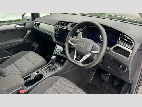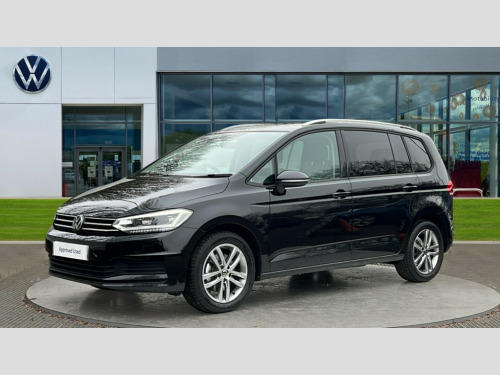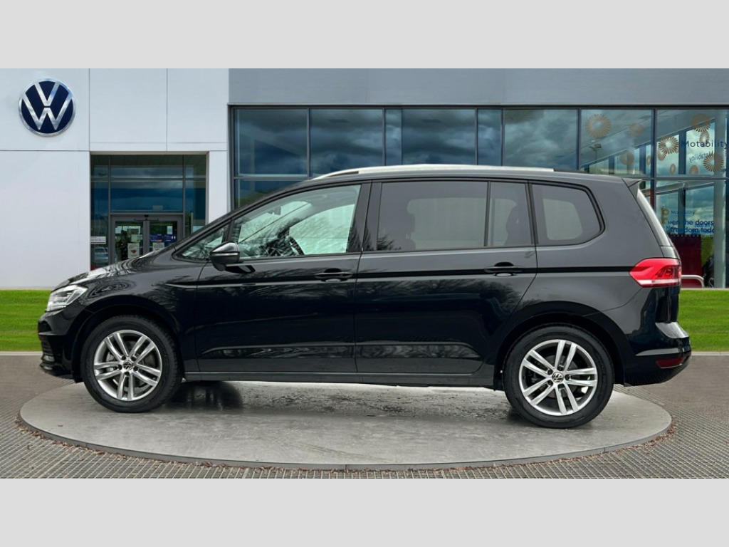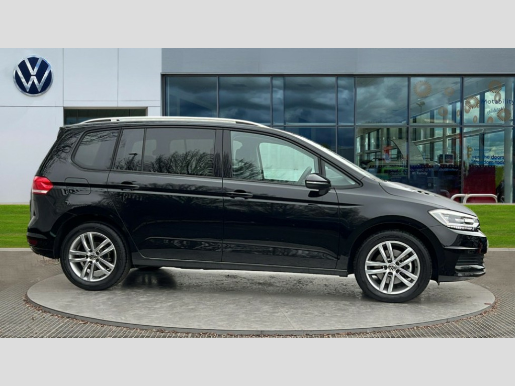 Volkswagen Touran 1.5 TSI EVO Match 5dr DSG Adaptive cruise control, Audible lights on warning, Discover media navigation touchscreen navigation/radio system with streaming and internet, Driver alert system, Driver profile selection, Dynamic road sign display, Electric tailgate, Electronic odometer, Emergency services call system, Extended, crash-active and proactive Pedestrian and cyclist monitoring, External temperature gauge, Front parking sensors, Lane change system side assist and rear traffic alert, Lane keep assist, Misfuelling protection device, Mobile pairing with SMS function, Mobile phone interface with inductive charging, Rear view camera displayed via vehicles audio system display, Rev counter with fuel gauge, Side scan, Speed limiter, Speed sensitive power steering, Stop/start system, Think blue trainer driver tips and journey analysis, Trip and service interval display, We connect' and 'We connect plus' functionality, Petrol Particulate Filter, Rear stabiliser bar, XDS electronic differential lock, 4x20 watt output, 8 Speakers, Audio Connectivity System, DAB Digital radio, External USB-C data socket with increased charging performance - 2 USB sockets 45W, MP3/WMA compatability, SD card slot, Title and cover art display, USB connection, Aerial integrated into side window, Auto dimming door mirrors, on driver side, surround lighting and front passenger side mirror lowering function, Auto dimming rear view mirror, Automatic coming/leaving home lighting function, Body colour bumpers, Body colour door handles, Body colour door mirrors with integral indicators, Door mirrors with memory function, Dusk sensor + auto driving lights, Electric folding door mirrors, Electric heated + adjustable door mirrors, Electric, glass sliding/tilting panoramic sunroof including integrated roller blind and LED lighting around aperture, Front and rear electric windows, Fully galvanised body, Gloss black finish B pillar, Green tinted heat insulating glass, High level third brake light, Rain sensor, Rear fog lights, Rear side wing doors, Rear tinted glass from B-pillar backwards approx 65% tinted, Rear wash/wipe with intermittent wipe setting, Removable engine badge, Silver roof rails, Tailgate wiper- reverse gear activation, Twin chrome exhaust tailpipes, Volkswagen roundel, Windscreen wipers intermittent wipe, 12V power point for Row 2, 12V socket in luggage compartment, 2 individual fold flat 3rd row seats, 2 three point seatbelts in 3rd row, 2nd row centre armrest, 2nd row centre seat converts into table, 3 single slide/fold/removable 2nd row seats, 3 spoke steering wheel, 3x3 point seatbelts on 2nd row with height adjust on outer seats, 4 boot load lashing points, 4 way adjustable front head restraints, 5 headrests, Activated charcoal canister for intensified evaporation system, Air care climatronic 3 zone air conditioning system with rear air conditioning control panel, Chrome plated radiator grille inserts, air vent surrounds and light switch surrounds, Driver and front passenger under seat drawer, Dust/pollen filters, Foldable front passenger seat backrest with load through function, Front and rear reading lights X 2, Front centre armrest with storage compartment, Front comfort seats with lumbar support, Front cupholders x 2, Front passenger seat height adjust, Front seat storage pockets, Front seatback folding tables, Height adjustable driver's seat, Height/reach adjust steering wheel, Illuminated glovebox, Instrument lighting white adjustable panel illumination with red night time illumination, Interior light with delay, Isofix on 2nd row outer seats, Isofix on 3rd row seats, Large storage compartment in roof console, Lasano cloth upholstery, Leather multifunction steering wheel with gear knob, Leatherette on rear of front seats, Low tunnel 2nd row seat, Luggage compartment lighting, Media box in dashboard on passenger side, Multi storage in passenger/luggage areas, Multi-function centre console with storage facilities, Retractable luggage cover, Split folding rear seat backrests, Storage bins on all doors, Sun visors with illuminated vanity mirrors, Family Pack - Touran, Winter pack without heated washer jet - Touran, 3 point height adjustable front seatbelts, Auto hold function, Automatic post collision braking system, Door open warning reflectors, Driver/Front Passenger airbags, Drivers knee airbag, EDL + ASR, Electronic parking brake, Energy recovery system, ESC with ABS, First aid kit, Front and rear (row 2) curtain airbags, Front assist with autonomous emergency braking, Front seat side impact airbags, Front seatbelt pretensioners, Front/rear disc brakes, Hill hold control, Hydraulic Brake Assist (HBA), Loose wheel warning function, Manual passenger airbag deactivation function, Pre crash preventive occupant protection, Proactive passenger protection system with front and side assist, Rear child proof door locks, Road sign recognition, Seatbelt warning lamp and buzzer, Traction control, Two tone horn, Warning triangle, Alarm with remote central locking and interior protection, Electronic engine immobiliser, Keyless Access Keyless locking and starting system with SAFELOCK, New brushed design decorative inserts in dash and front doors, 17" Salvador alloy wheels with anti-theft wheel bolts, 215/55 R17 self sealing tyres with low rolling resistance
