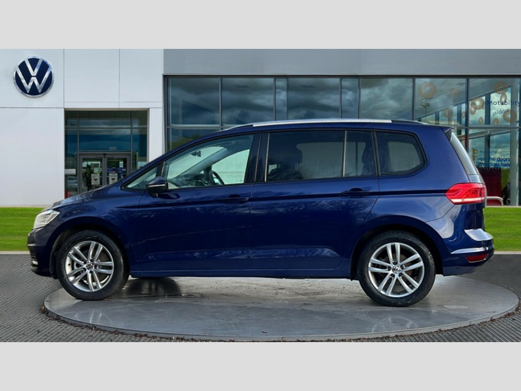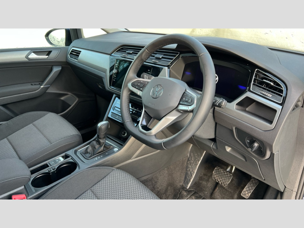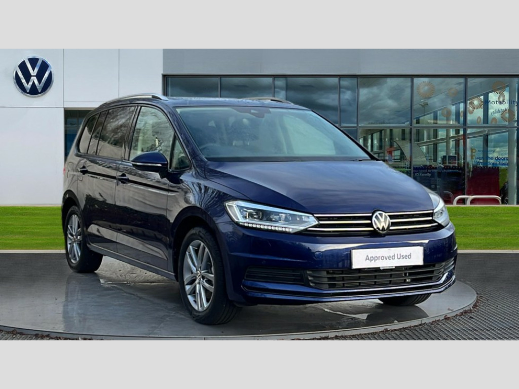 Volkswagen Touran 1.5 TSI EVO Match 5dr DSG Adaptive cruise control, Audible lights on warning, Discover media navigation touchscreen navigation/radio system with streaming and internet, Driver alert system, Driver profile selection, Dynamic road sign display, Electric tailgate, Electronic odometer, Emergency services call system, Extended, crash-active and proactive Pedestrian and cyclist monitoring, External temperature gauge, Front parking sensors, Lane change system side assist and rear traffic alert, Lane keep assist, Misfuelling protection device, Mobile pairing with SMS function, Mobile phone interface with inductive charging, Rear view camera displayed via vehicles audio system display, Rev counter with fuel gauge, Side scan, Speed limiter, Speed sensitive power steering, Stop/start system, Think blue trainer driver tips and journey analysis, Trip and service interval display, We connect' and 'We connect plus' functionality, Petrol Particulate Filter, Rear stabiliser bar, XDS electronic differential lock, 4x20 watt output, 8 Speakers, Audio Connectivity System, DAB Digital radio, External USB-C data socket with increased charging performance - 2 USB sockets 45W, MP3/WMA compatability, SD card slot, Title and cover art display, USB connection, Aerial integrated into side window, Auto dimming door mirrors, on driver side, surround lighting and front passenger side mirror lowering function, Auto dimming rear view mirror, Automatic coming/leaving home lighting function, Body colour bumpers, Body colour door handles, Body colour door mirrors with integral indicators, Door mirrors with memory function, Dusk sensor + auto driving lights, Electric folding door mirrors, Electric heated + adjustable door mirrors, Electric, glass sliding/tilting panoramic sunroof including integrated roller blind and LED lighting around aperture, Front and rear electric windows, Fully galvanised body, Gloss black finish B pillar, Green tinted heat insulating glass, High level third brake light, Rain sensor, Rear fog lights, Rear side wing doors, Rear tinted glass from B-pillar backwards approx 65% tinted, Rear wash/wipe with intermittent wipe setting, Removable engine badge, Silver roof rails, Tailgate wiper- reverse gear activation, Twin chrome exhaust tailpipes, Volkswagen roundel, Windscreen wipers intermittent wipe, 12V power point for Row 2, 12V socket in luggage compartment, 2 individual fold flat 3rd row seats, 2 three point seatbelts in 3rd row, 2nd row centre armrest, 2nd row centre seat converts into table, 3 single slide/fold/removable 2nd row seats, 3 spoke steering wheel, 3x3 point seatbelts on 2nd row with height adjust on outer seats, 4 boot load lashing points, 4 way adjustable front head restraints, 5 headrests, Activated charcoal canister for intensified evaporation system, Air care climatronic 3 zone air conditioning system with rear air conditioning control panel, Chrome plated radiator grille inserts, air vent surrounds and light switch surrounds, Driver and front passenger under seat drawer, Dust/pollen filters, Foldable front passenger seat backrest with load through function, Front and rear reading lights X 2, Front centre armrest with storage compartment, Front comfort seats with lumbar support, Front cupholders x 2, Front passenger seat height adjust, Front seat storage pockets, Front seatback folding tables, Height adjustable driver's seat, Height/reach adjust steering wheel, Illuminated glovebox, Instrument lighting white adjustable panel illumination with red night time illumination, Interior light with delay, Isofix on 2nd row outer seats, Isofix on 3rd row seats, Large storage compartment in roof console, Lasano cloth upholstery, Leather multifunction steering wheel with gear knob, Leatherette on rear of front seats, Low tunnel 2nd row seat, Luggage compartment lighting, Media box in dashboard on passenger side, Multi storage in passenger/luggage areas, Multi-function centre console with storage facilities, Retractable luggage cover, Split folding rear seat backrests, Storage bins on all doors, Sun visors with illuminated vanity mirrors, Family Pack - Touran, Winter pack without heated washer jet - Touran, 3 point height adjustable front seatbelts, Auto hold function, Automatic post collision braking system, Door open warning reflectors, Driver/Front Passenger airbags, Drivers knee airbag, EDL + ASR, Electronic parking brake, Energy recovery system, ESC with ABS, First aid kit, Front and rear (row 2) curtain airbags, Front assist with autonomous emergency braking, Front seat side impact airbags, Front seatbelt pretensioners, Front/rear disc brakes, Hill hold control, Hydraulic Brake Assist (HBA), Loose wheel warning function, Manual passenger airbag deactivation function, Pre crash preventive occupant protection, Proactive passenger protection system with front and side assist, Rear child proof door locks, Road sign recognition, Seatbelt warning lamp and buzzer, Traction control, Two tone horn, Warning triangle, Alarm with remote central locking and interior protection, Electronic engine immobiliser, Keyless Access Keyless locking and starting system with SAFELOCK, New brushed design decorative inserts in dash and front doors, 17" Salvador alloy wheels with anti-theft wheel bolts, 215/55 R17 self sealing tyres with low rolling resistance