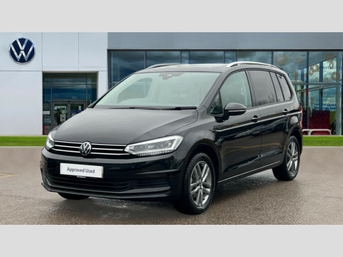 Give us a call and we guarantee to provide you with the best experience possible when buying your next vehicle. Adaptive cruise control, Audible lights on warning, Discover media navigation touchscreen navigation/radio system with streaming and internet, Driver alert system, Driver profile selection, Dynamic road sign display, Electric tailgate, Electronic odometer, Emergency services call system, Extended, crash-active and proactive Pedestrian and cyclist monitoring, External temperature gauge, Front parking sensors, Lane change system side assist and rear traffic alert, Lane keep assist, Misfuelling protection device, Mobile pairing with SMS function, Mobile phone interface with inductive charging, Rear view camera displayed via vehicles audio system display, Rev counter with fuel gauge, Side scan, Speed limiter, Speed sensitive power steering, Stop/start system, Think blue trainer driver tips and journey analysis, Trip and service interval display, We connect' and 'We connect plus' functionality, Petrol Particulate Filter, Rear stabiliser bar, XDS electronic differential lock, 4x20 watt output, 8 Speakers, Audio Connectivity System, DAB Digital radio, External USB-C data socket with increased charging performance - 2 USB sockets 45W, MP3/WMA compatability, SD card slot, Title and cover art display, USB connection, Aerial integrated into side window, Auto dimming door mirrors, on driver side, surround lighting and front passenger side mirror lowering function, Auto dimming rear view mirror, Automatic coming/leaving home lighting function, Body colour bumpers, Body colour door handles, Body colour door mirrors with integral indicators, Door mirrors with memory function, Dusk sensor + auto driving lights, Electric folding door mirrors, Electric heated + adjustable door mirrors, Electric, glass sliding/tilting panoramic sunroof including integrated roller blind and LED lighting around aperture, Front and rear electric windows, Fully galvanised body, Gloss black finish B pillar, Green tinted heat insulating glass, High level third brake light, Rain sensor, Rear fog lights, Rear side wing doors, Rear tinted glass from B-pillar backwards approx 65% tinted, Rear wash/wipe with intermittent wipe setting, Removable engine badge, Silver roof rails, Tailgate wiper- reverse gear activation, Twin chrome exhaust tailpipes, Volkswagen roundel, Windscreen wipers intermittent wipe, 12V power point for Row 2, 12V socket in luggage compartment, 2 individual fold flat 3rd row seats, 2 three point seatbelts in 3rd row, 2nd row centre armrest, 2nd row centre seat converts into table, 3 single slide/fold/removable 2nd row seats, 3 spoke steering wheel, 3x3 point seatbelts on 2nd row with height adjust on outer seats, 4 boot load lashing points, 4 way adjustable front head restraints, 5 headrests, Activated charcoal canister for intensified evaporation system, Air care climatronic 3 zone air conditioning system with rear air conditioning control panel, Chrome plated radiator grille inserts, air vent surrounds and light switch surrounds, Driver and front passenger under seat drawer, Dust/pollen filters, Foldable front passenger seat backrest with load through function, Front and rear reading lights X 2, Front centre armrest with storage compartment, Front comfort seats with lumbar support, Front cupholders x 2, Front passenger seat height adjust, Front seat storage pockets, Front seatback folding tables, Height adjustable driver's seat, Height/reach adjust steering wheel, Illuminated glovebox, Instrument lighting white adjustable panel illumination with red night time illumination, Interior light with delay, Isofix on 2nd row outer seats, Isofix on 3rd row seats, Large storage compartment in roof console, Lasano cloth upholstery, Leather multifunction steering wheel with gear knob, Leatherette on rear of front seats, Low tunnel 2nd row seat, Luggage compartment lighting, Media box in dashboard on passenger side, Multi storage in passenger/luggage areas, Multi-function centre console with storage facilities, Retractable luggage cover, Split folding rear seat backrests, Storage bins on all doors, Sun visors with illuminated vanity mirrors, Family Pack - Touran, Winter pack without heated washer jet - Touran, 3 point height adjustable front seatbelts, Auto hold function, Automatic post collision braking system, Door open warning reflectors, Driver/Front Passenger airbags, Drivers knee airbag, EDL + ASR, Electronic parking brake, Energy recovery system, ESC with ABS, First aid kit, Front and rear (row 2) curtain airbags, Front assist with autonomous emergency braking, Front seat side impact airbags, Front seatbelt pretensioners, Front/rear disc brakes, Hill hold control, Hydraulic Brake Assist (HBA), Loose wheel warning function, Manual passenger airbag deactivation function, Pre crash preventive occupant protection, Proactive passenger protection system with front and side assist, Rear child proof door locks, Road sign recognition, Seatbelt warning lamp and buzzer, Traction control, Two tone horn, Warning triangle, Alarm with remote central locking and interior protection, Electronic engine immobiliser, Keyless Access Keyless locking and starting system with SAFELOCK, New brushed design decorative inserts in dash and front doors, 17" Salvador alloy wheels with anti-theft wheel bolts, 215/55 R17 self sealing tyres with low rolling resistance