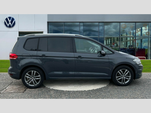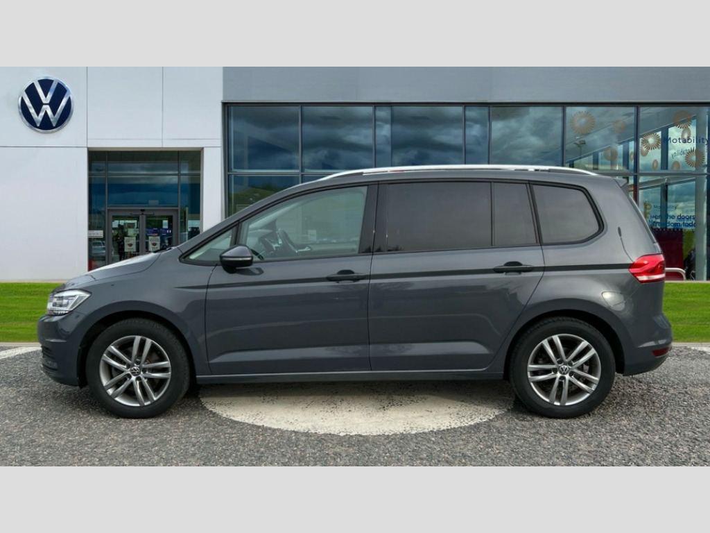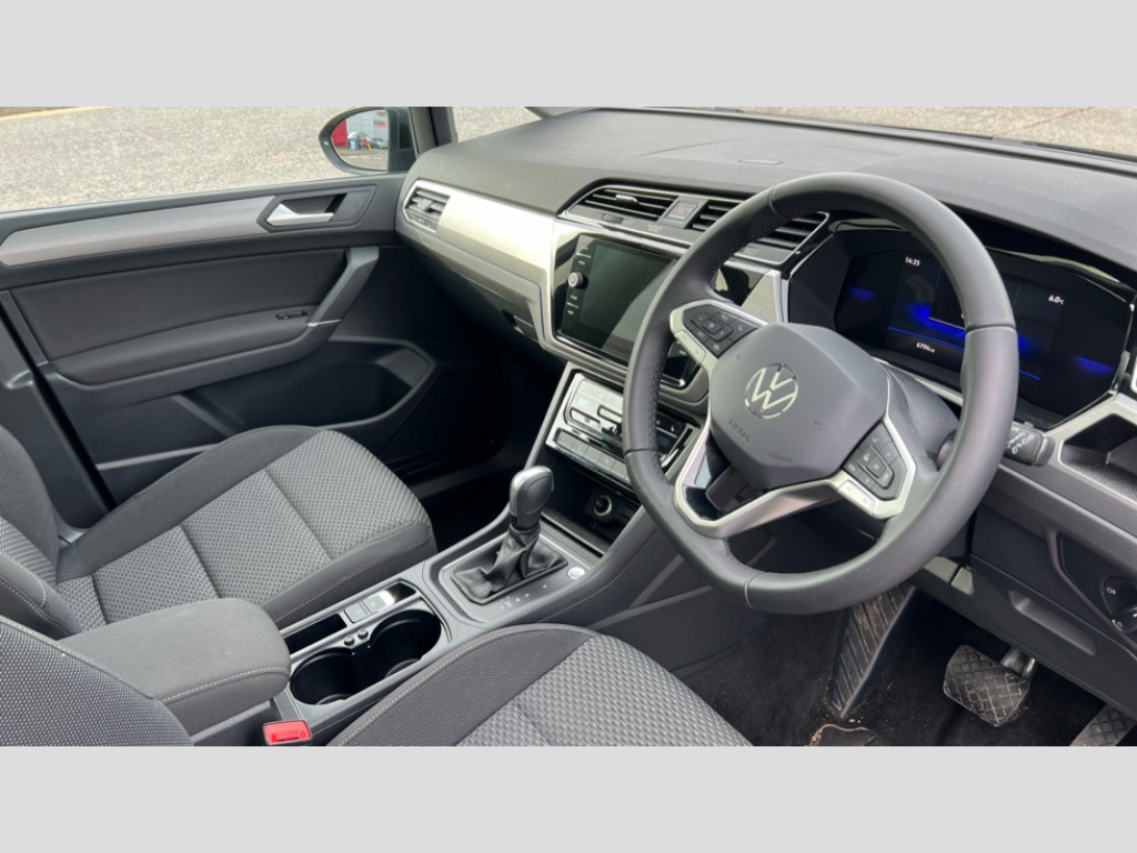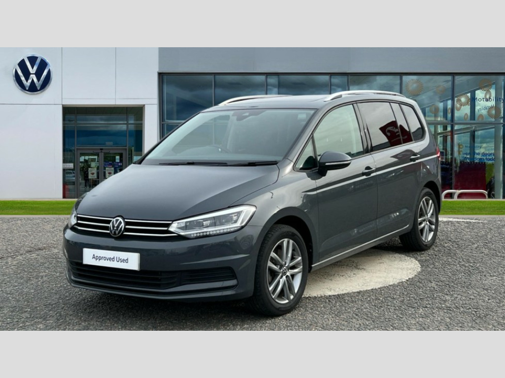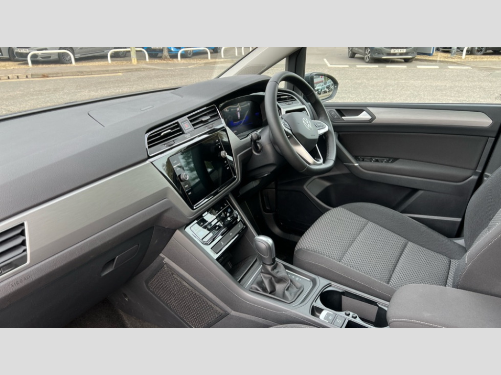 Volkswagen Touran 1.5 TSI EVO Match 5dr DSG Adaptive cruise control, Audible lights on warning, Discover media navigation touchscreen navigation/radio system with streaming and internet, Driver alert system, Driver profile selection, Dynamic road sign display, Electric tailgate, Electronic odometer, Emergency services call system, Extended, crash-active and proactive Pedestrian and cyclist monitoring, External temperature gauge, Front parking sensors, Lane change system side assist and rear traffic alert, Lane keep assist, Misfuelling protection device, Mobile pairing with SMS function, Mobile phone interface with inductive charging, Rear view camera displayed via vehicles audio system display, Rev counter with fuel gauge, Side scan, Speed limiter, Speed sensitive power steering, Stop/start system, Think blue trainer driver tips and journey analysis, Trip and service interval display, We connect' and 'We connect plus' functionality, Petrol Particulate Filter, Rear stabiliser bar, XDS electronic differential lock, 4x20 watt output, 8 Speakers, Audio Connectivity System, DAB Digital radio, External USB-C data socket with increased charging performance - 2 USB sockets 45W, MP3/WMA compatability, SD card slot, Title and cover art display, USB connection, Aerial integrated into side window, Auto dimming door mirrors, on driver side, surround lighting and front passenger side mirror lowering function, Auto dimming rear view mirror, Automatic coming/leaving home lighting function, Body colour bumpers, Body colour door handles, Body colour door mirrors with integral indicators, Door mirrors with memory function, Dusk sensor + auto driving lights, Electric folding door mirrors, Electric heated + adjustable door mirrors, Electric, glass sliding/tilting panoramic sunroof including integrated roller blind and LED lighting around aperture, Front and rear electric windows, Fully galvanised body, Gloss black finish B pillar, Green tinted heat insulating glass, High level third brake light, Rain sensor, Rear fog lights, Rear side wing doors, Rear tinted glass from B-pillar backwards approx 65% tinted, Rear wash/wipe with intermittent wipe setting, Removable engine badge, Silver roof rails, Tailgate wiper- reverse gear activation, Twin chrome exhaust tailpipes, Volkswagen roundel, Windscreen wipers intermittent wipe, 12V power point for Row 2, 12V socket in luggage compartment, 2 individual fold flat 3rd row seats, 2 three point seatbelts in 3rd row, 2nd row centre armrest, 2nd row centre seat converts into table, 3 single slide/fold/removable 2nd row seats, 3 spoke steering wheel, 3x3 point seatbelts on 2nd row with height adjust on outer seats, 4 boot load lashing points, 4 way adjustable front head restraints, 5 headrests, Activated charcoal canister for intensified evaporation system, Air care climatronic 3 zone air conditioning system with rear air conditioning control panel, Chrome plated radiator grille inserts, air vent surrounds and light switch surrounds, Driver and front passenger under seat drawer, Dust/pollen filters, Foldable front passenger seat backrest with load through function, Front and rear reading lights X 2, Front centre armrest with storage compartment, Front comfort seats with lumbar support, Front cupholders x 2, Front passenger seat height adjust, Front seat storage pockets, Front seatback folding tables, Height adjustable driver's seat, Height/reach adjust steering wheel, Illuminated glovebox, Instrument lighting white adjustable panel illumination with red night time illumination, Interior light with delay, Isofix on 2nd row outer seats, Isofix on 3rd row seats, Large storage compartment in roof console, Lasano cloth upholstery, Leather multifunction steering wheel with gear knob, Leatherette on rear of front seats, Low tunnel 2nd row seat, Luggage compartment lighting, Media box in dashboard on passenger side, Multi storage in passenger/luggage areas, Multi-function centre console with storage facilities, Retractable luggage cover, Split folding rear seat backrests, Storage bins on all doors, Sun visors with illuminated vanity mirrors, Family Pack - Touran, Winter pack without heated washer jet - Touran, 3 point height adjustable front seatbelts, Auto hold function, Automatic post collision braking system, Door open warning reflectors, Driver/Front Passenger airbags, Drivers knee airbag, EDL + ASR, Electronic parking brake, Energy recovery system, ESC with ABS, First aid kit, Front and rear (row 2) curtain airbags, Front assist with autonomous emergency braking, Front seat side impact airbags, Front seatbelt pretensioners, Front/rear disc brakes, Hill hold control, Hydraulic Brake Assist (HBA), Loose wheel warning function, Manual passenger airbag deactivation function, Pre crash preventive occupant protection, Proactive passenger protection system with front and side assist, Rear child proof door locks, Road sign recognition, Seatbelt warning lamp and buzzer, Traction control, Two tone horn, Warning triangle, Alarm with remote central locking and interior protection, Electronic engine immobiliser, Keyless Access Keyless locking and starting system with SAFELOCK, New brushed design decorative inserts in dash and front doors, 17" Salvador alloy wheels with anti-theft wheel bolts, 215/55 R17 self sealing tyres with low rolling resistance