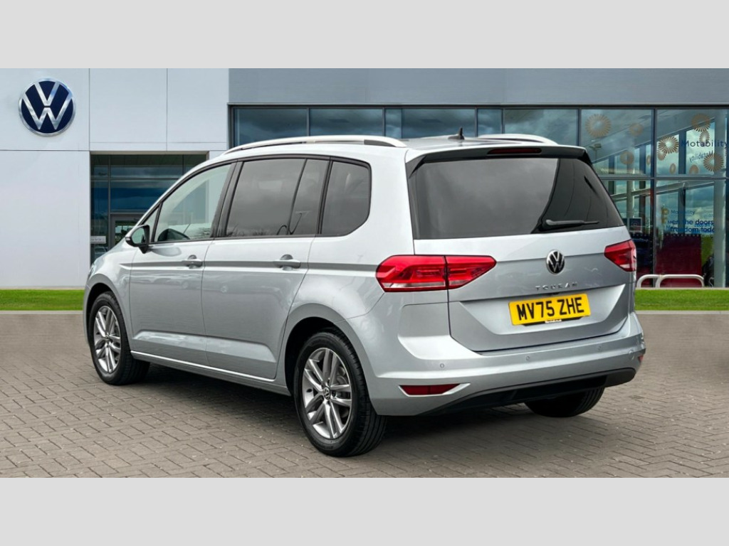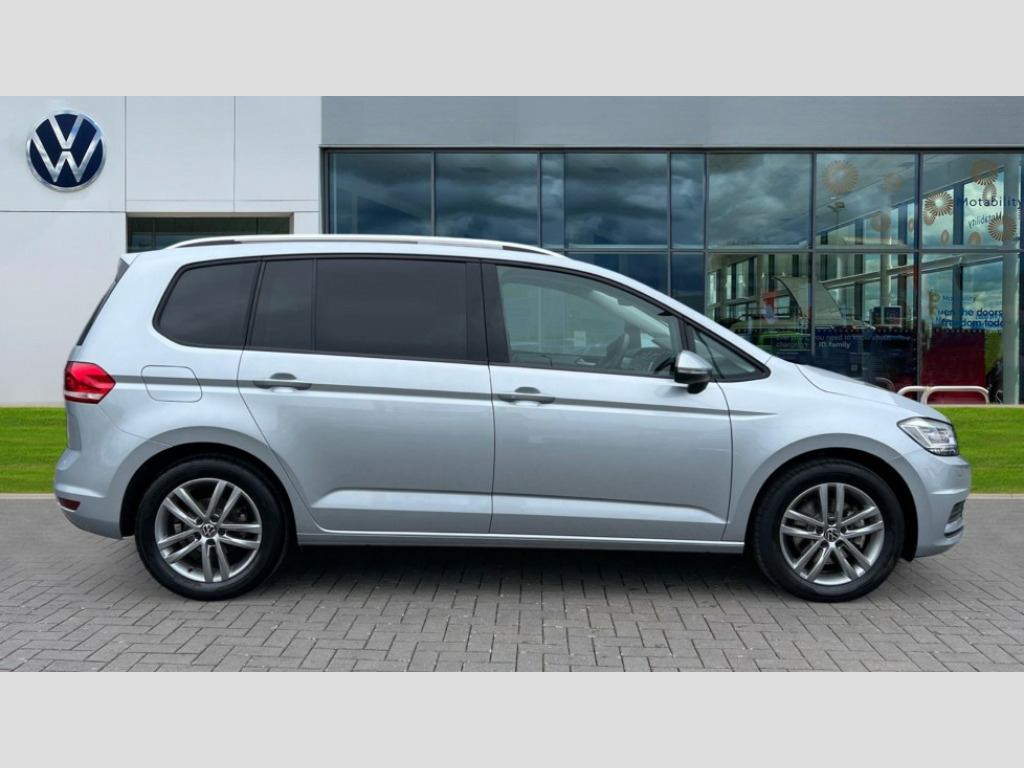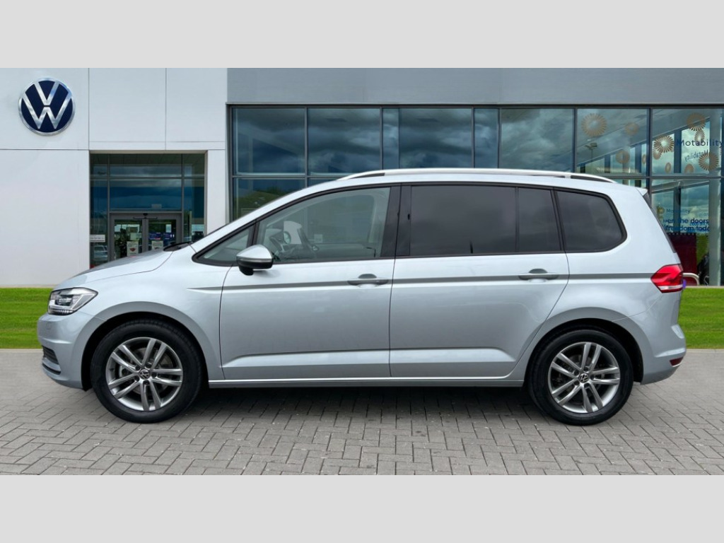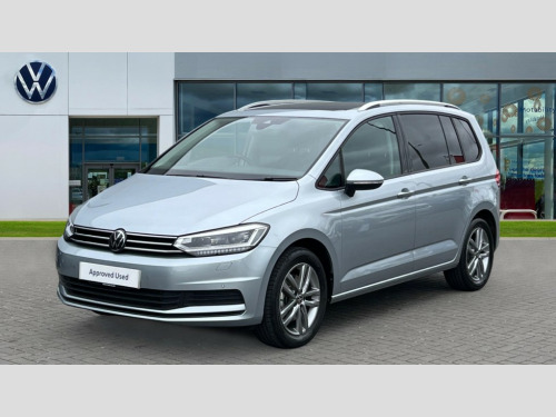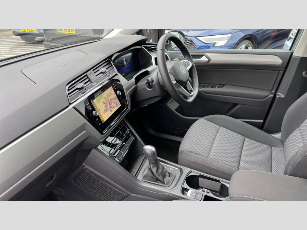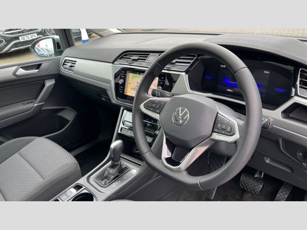 Volkswagen Touran 1.5 TSI EVO Match 5dr DSG Adaptive cruise control, Audible lights on warning, Discover media navigation touchscreen navigation/radio system with streaming and internet, Driver alert system, Driver profile selection, Dynamic road sign display, Electric tailgate, Electronic odometer, Emergency services call system, Extended, crash-active and proactive Pedestrian and cyclist monitoring, External temperature gauge, Front parking sensors, Lane change system side assist and rear traffic alert, Lane keep assist, Misfuelling protection device, Mobile pairing with SMS function, Mobile phone interface with inductive charging, Rear view camera displayed via vehicles audio system display, Rev counter with fuel gauge, Side scan, Speed limiter, Speed sensitive power steering, Stop/start system, Think blue trainer driver tips and journey analysis, Trip and service interval display, We connect' and 'We connect plus' functionality, Petrol Particulate Filter, Rear stabiliser bar, XDS electronic differential lock, 4x20 watt output, 8 Speakers, Audio Connectivity System, DAB Digital radio, External USB-C data socket with increased charging performance - 2 USB sockets 45W, MP3/WMA compatability, SD card slot, Title and cover art display, USB connection, Aerial integrated into side window, Auto dimming door mirrors, on driver side, surround lighting and front passenger side mirror lowering function, Auto dimming rear view mirror, Automatic coming/leaving home lighting function, Body colour bumpers, Body colour door handles, Body colour door mirrors with integral indicators, Door mirrors with memory function, Dusk sensor + auto driving lights, Electric folding door mirrors, Electric heated + adjustable door mirrors, Electric, glass sliding/tilting panoramic sunroof including integrated roller blind and LED lighting around aperture, Front and rear electric windows, Fully galvanised body, Gloss black finish B pillar, Green tinted heat insulating glass, High level third brake light, Rain sensor, Rear fog lights, Rear side wing doors, Rear tinted glass from B-pillar backwards approx 65% tinted, Rear wash/wipe with intermittent wipe setting, Removable engine badge, Silver roof rails, Tailgate wiper- reverse gear activation, Twin chrome exhaust tailpipes, Volkswagen roundel, Windscreen wipers intermittent wipe, 12V power point for Row 2, 12V socket in luggage compartment, 2 individual fold flat 3rd row seats, 2 three point seatbelts in 3rd row, 2nd row centre armrest, 2nd row centre seat converts into table, 3 single slide/fold/removable 2nd row seats, 3 spoke steering wheel, 3x3 point seatbelts on 2nd row with height adjust on outer seats, 4 boot load lashing points, 4 way adjustable front head restraints, 5 headrests, Activated charcoal canister for intensified evaporation system, Air care climatronic 3 zone air conditioning system with rear air conditioning control panel, Chrome plated radiator grille inserts, air vent surrounds and light switch surrounds, Driver and front passenger under seat drawer, Dust/pollen filters, Foldable front passenger seat backrest with load through function, Front and rear reading lights X 2, Front centre armrest with storage compartment, Front comfort seats with lumbar support, Front cupholders x 2, Front passenger seat height adjust, Front seat storage pockets, Front seatback folding tables, Height adjustable driver's seat, Height/reach adjust steering wheel, Illuminated glovebox, Instrument lighting white adjustable panel illumination with red night time illumination, Interior light with delay, Isofix on 2nd row outer seats, Isofix on 3rd row seats, Large storage compartment in roof console, Lasano cloth upholstery, Leather multifunction steering wheel with gear knob, Leatherette on rear of front seats, Low tunnel 2nd row seat, Luggage compartment lighting, Media box in dashboard on passenger side, Multi storage in passenger/luggage areas, Multi-function centre console with storage facilities, Retractable luggage cover, Split folding rear seat backrests, Storage bins on all doors, Sun visors with illuminated vanity mirrors, Family Pack - Touran, Winter pack without heated washer jet - Touran, 3 point height adjustable front seatbelts, Auto hold function, Automatic post collision braking system, Door open warning reflectors, Driver/Front Passenger airbags, Drivers knee airbag, EDL + ASR, Electronic parking brake, Energy recovery system, ESC with ABS, First aid kit, Front and rear (row 2) curtain airbags, Front assist with autonomous emergency braking, Front seat side impact airbags, Front seatbelt pretensioners, Front/rear disc brakes, Hill hold control, Hydraulic Brake Assist (HBA), Loose wheel warning function, Manual passenger airbag deactivation function, Pre crash preventive occupant protection, Proactive passenger protection system with front and side assist, Rear child proof door locks, Road sign recognition, Seatbelt warning lamp and buzzer, Traction control, Two tone horn, Warning triangle, Alarm with remote central locking and interior protection, Electronic engine immobiliser, Keyless Access Keyless locking and starting system with SAFELOCK, New brushed design decorative inserts in dash and front doors, 17" Salvador alloy wheels with anti-theft wheel bolts, 215/55 R17 self sealing tyres with low rolling resistance