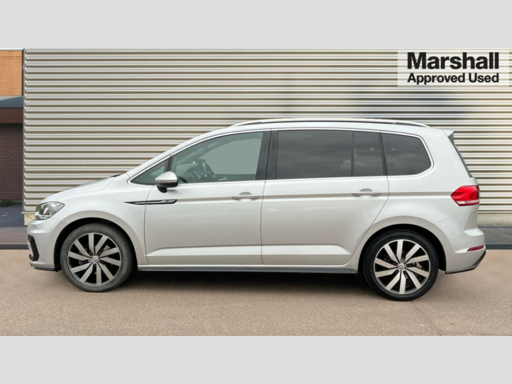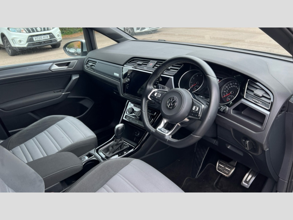 Volkswagen Touran 1.5 TSI EVO R-Line 5dr DSG Adaptive cruise control, Audible lights on warning, Bluetooth telephone connectivity, Car information display, Driver alert system, Driver electronic voice amplification function, Electronic odometer, External temperature gauge, Flat tyre indicator, Mobile pairing with SMS function, Multifunction colour display, Rev counter with fuel gauge, Speed limiter, Speed sensitive power steering, Stop/start system, Think blue trainer driver tips and journey analysis, Trip and service interval display, Petrol Particulate Filter, XDS electronic differential lock, 4x20 watt output, Audio Connectivity System, DAB Digital radio, MP3/WMA compatability, SD card slot, Title and cover art display, USB connection, Aerial integrated into side window, Body colour bumpers, Body colour door handles, Body colour door mirrors with integral indicators, Chrome fog light surround, Chrome lower front bumper insert, Chrome trimmed front air intake surrounds, Chrome trimmed radiator grille louvre inserts, Chrome trimmed side windows, Dusk sensor + auto driving lights, Electric folding door mirrors with reverse activated kerb-view adjustment on passenger's door mirror, Front and rear electric windows, Fully galvanised body, Gloss black finish B pillar, Green tinted heat insulating glass, High level third brake light, Rear tinted glass from B-pillar backwards approx 65% tinted, Rear wash/wipe with intermittent wipe setting, Silver roof rails, Tailgate wiper- reverse gear activation, Twin chrome exhaust tailpipes, Unique R Line badging, Volkswagen roundel, Windscreen wipers intermittent wipe, 12V power point for Row 2, 12V socket in luggage compartment, 2 individual fold flat 3rd row seats, 2 three point seatbelts in 3rd row, 2nd row centre armrest, 2nd row centre seat converts into table, 3 single slide/fold/removable 2nd row seats, 3 Zone electronic climate control with automatic air recirculation, 3x3 point seatbelts on 2nd row with height adjust on outer seats, 4 boot load lashing points, 4 way adjustable front head restraints, 5 headrests, Aluminium kick plate, Ambient lighting in door trim and foot well, Black roof lining, Driver and front passenger under seat drawer, DSG Paddle Shifts, Dust/pollen filters, Foldable front passenger seat backrest, Front + rear carpet mats, Front and rear reading lights, Front centre armrest with storage compartment, Front comfort seats with lumbar support, Front cupholders x 2, Front passenger seat height adjust, Front seat R Line logo with rear seat backrest, Front seat storage pockets, Front seatback folding tables, Front seats with R-Line logo, Grey stitching on steering wheel, Height adjustable driver's seat, Height/reach adjust steering wheel, Illuminated glovebox, Illuminated vanity mirrors, Instrument lighting white adjustable panel illumination with red night time illumination, Interior light with delay, Isofix on 2nd row outer seats, Isofix on 3rd row seats, Large storage compartment in roof console, Leatherette on rear of front seats, Low tunnel 2nd row seat, Media box in dashboard on passenger side, Multi storage in passenger/luggage areas, Multi-function centre console with storage facilities, Multifunction leather trimmed steering wheel including leather trimmed gear knob with 3.5" screen with multifunction computer, R-Line door sill protectors, Retractable luggage cover, Split folding rear seat backrests, Stainless steel pedals, Storage bins on all doors, Convenience Pack - Touran, Mirror pack - Touran, R line styling pack - Touran, 3 point height adjustable front seatbelts, Auto hold function, Automatic post collision braking system, Door open warning reflectors, Driver/Front Passenger airbags, Drivers knee airbag, EDL + ASR, Electronic parking brake, Energy recovery system, ESC with ABS, First aid kit, Front and rear (row 2) curtain airbags, Front assist including city emergency braking, Front seat side impact airbags, Front/rear disc brakes, Hill hold control, Hydraulic Brake Assist (HBA), Loose wheel warning function, Passenger airbag deactivation system, Pre crash preventive occupant protection, Seatbelt warning lamp and buzzer, Traction control, Two tone horn, Warning triangle, Alarm with remote central locking and interior protection, Electronic engine immobiliser, Black lead grey decorative inserts dash and door panel, Chrome plated instrument surrounds, Embroidered emblems to headrestraints, 18" Marseille alloy wheels with self sealing tyres and anti-theft wheel bolts