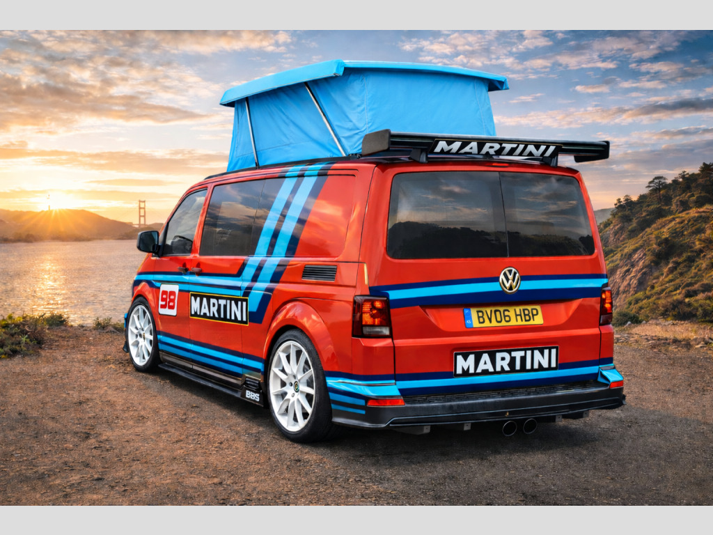 - 2006 Volkswagen Transporter 1.9 TDI Panel Van - 100,593 miles - Non air con - Martini livery paintwork - 12 months MOT - 3 months roadside assistance- Remap to 140 bhp v/240v fridge, 12v/240v power sockets & usb, denson graphics & cab mat, double gas hob & smev sink, premium kitchen & soft close doors, privacy glass all round, quilted leather cab & rear seating, rock & roll bed with seat belts, scenic pop top roof, side bars, sportline body styling