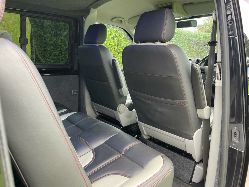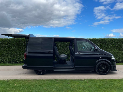T5.1 T32 Sportline Kombi 180ps £17495 , 111,000 miles , TWIN SLIDER!! , 20 inch refurbished, turbine alloys , Sportline front bumper, colour coded rear bumper , Gloss black grill, with chrome inserts, Carbon effect front splitter. Lowered 110mm on coilovers , Matt black side bars , Tailgate spoiler, 2+1 rear seats. Full leather sport line seats , Fully carpet lined with rear speakers and LED lighting, Twin flush sliding windows , Park distance control, Satellite navigation, A twin slider has the additional benefits of being able to park on both sides of the road with access for passengers either side. Especially beneficial if children are accessing the van. Plus full access to the van when in parking spaces. 2 remote keys