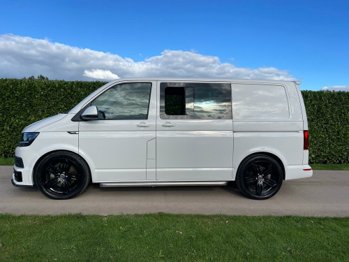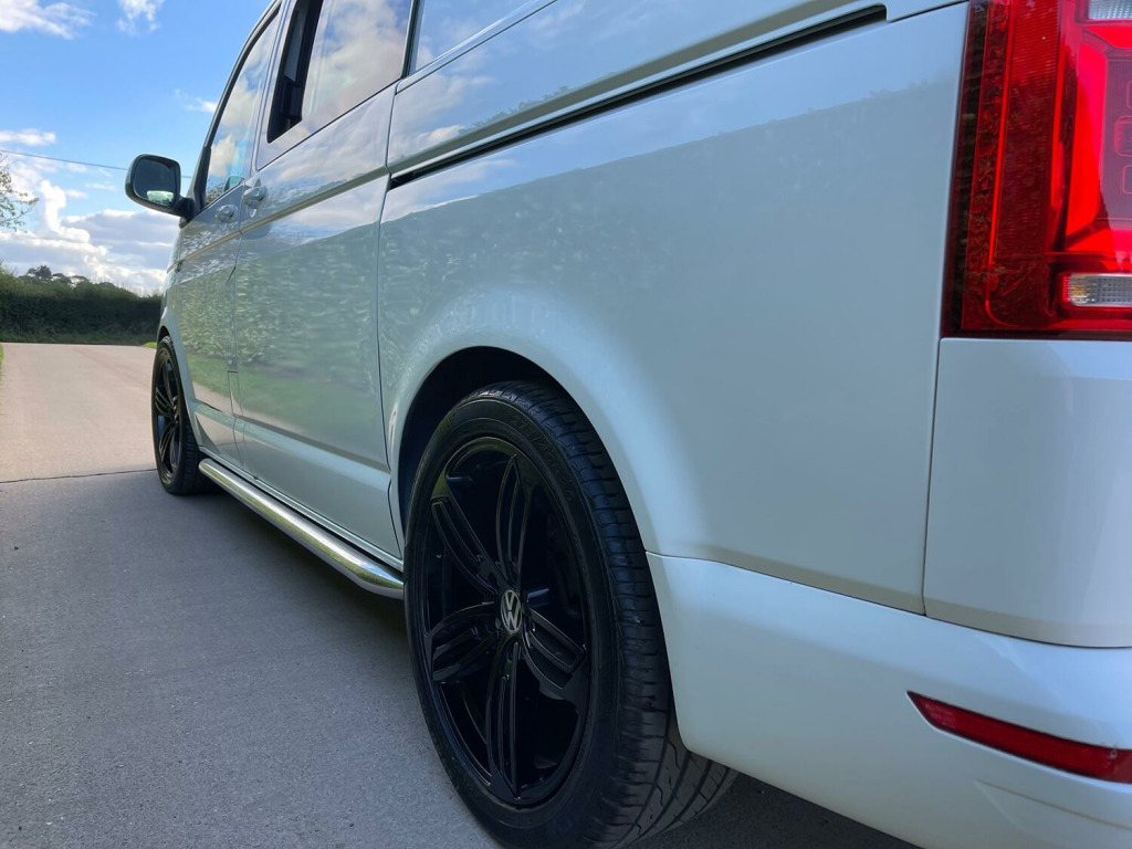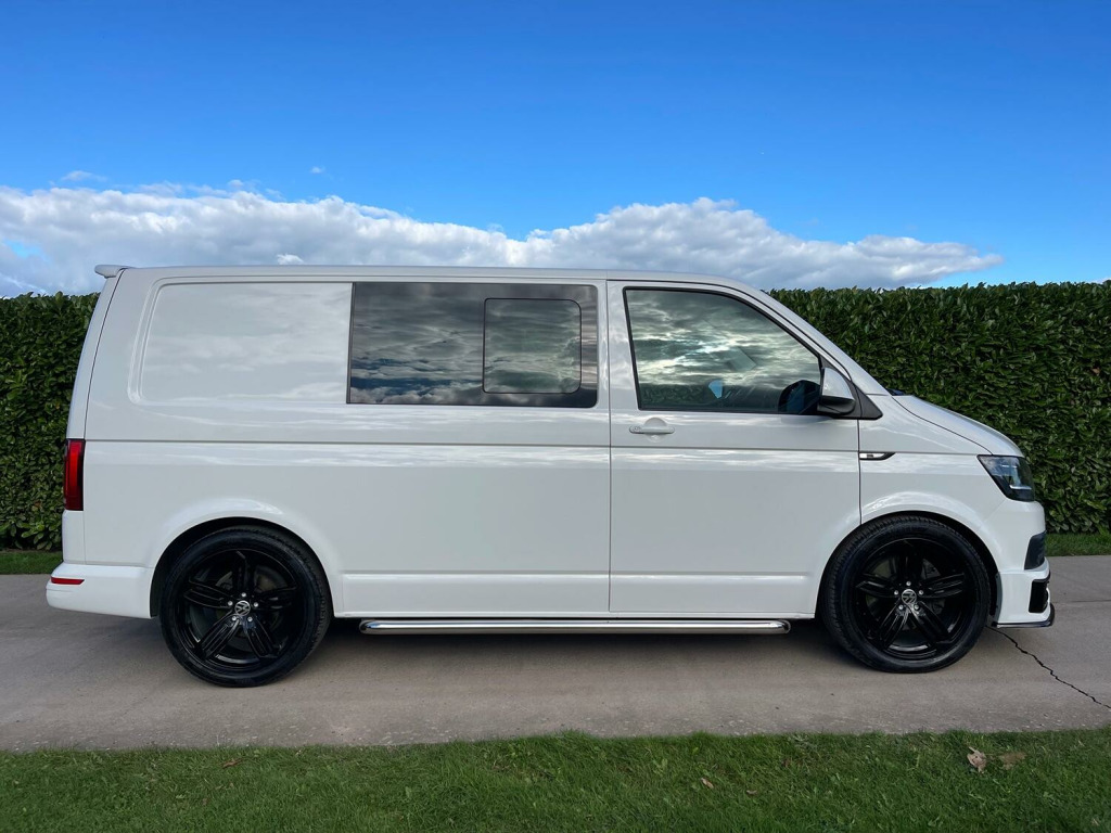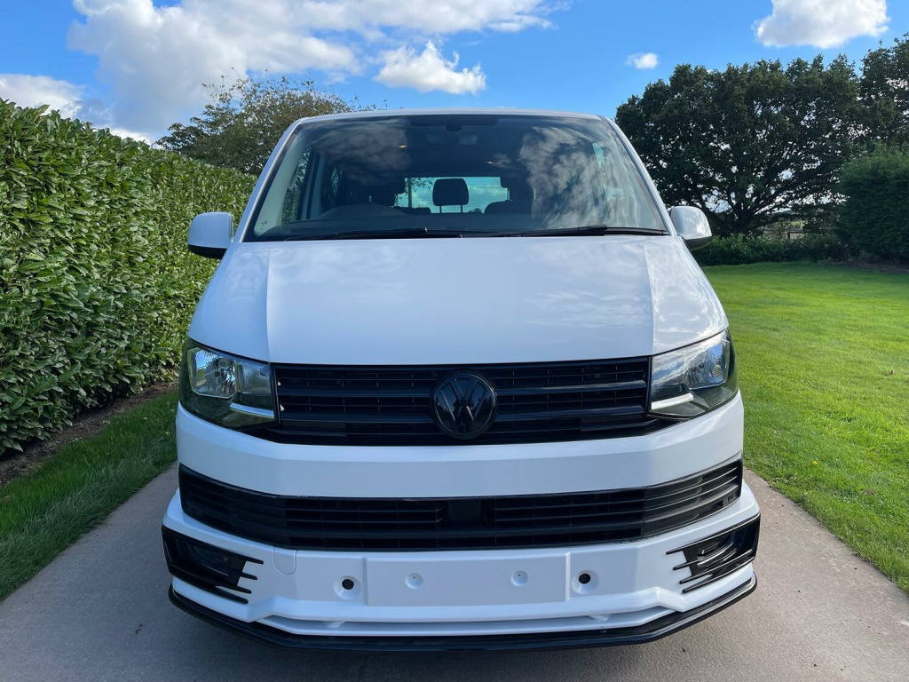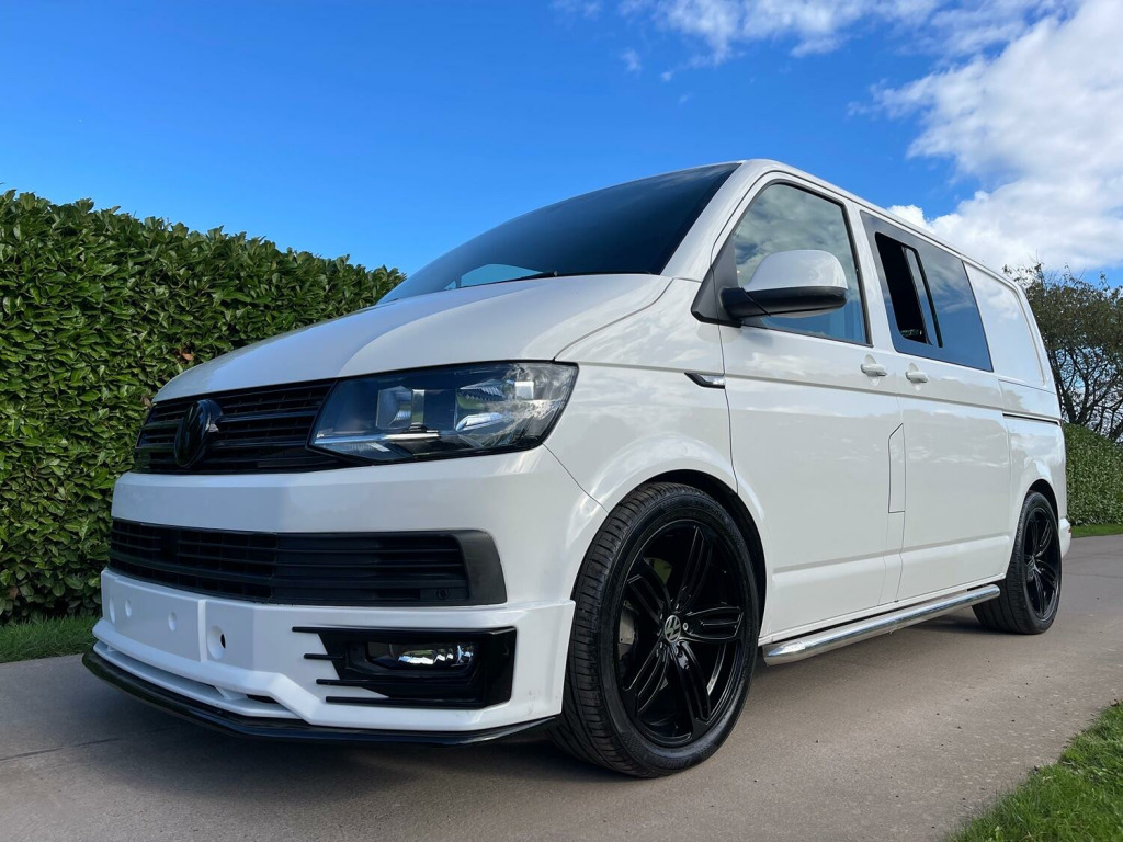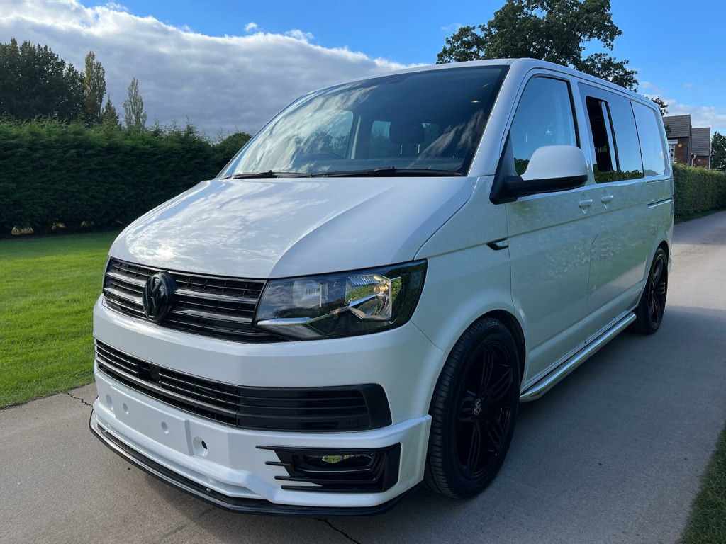 T6 T32 2.0 204ps Highline Kombi. Massive specification. The 204 is the most sought after of all the transporter models. 74600 miles , Sportline front bumper, colour coded rear bumper , Gloss black grill, Gloss black front splitter. Lowered 50mm, 20 inch gloss black alloys , Stainless side bars , Fully carpet lined , Colour coded rear spoiler , Factory soft floor, Twin flush sliding windows , Heated seats , Satellite navigation , 1 previous keeper, 2 remote keys , £25995