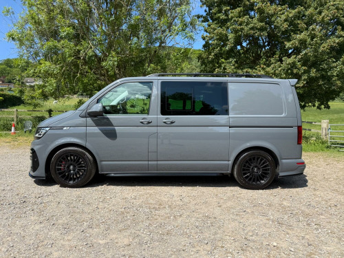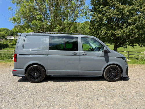We Are Pleased To Offer This Absolutely Stunning Pure Grey VW Transporter T32 Kombi 204 DSG Highline With Full Leighton Vans Conversion & Lots More... , Full Spec Includes Discovery Satellite Navigation, Dual Zone Climate Control Air Conditioning, Heated Front Seats, LED Headlights With High Beam Assist, Electric Twin Side Loading Doors, Electric Windows, Electric Heated Mirrors, Virtual Cockpit, Rear View Camera, Glazed Tailgate With Rear Wiper, Remote Central Locking, Day Time Running Lights, DAB Radio, Bluetooth & Music Streaming, Heated Windscreen, Multi Airbags. , Plus This Example Has This Huge List Of Extras Including LV-R Front Bumper, LV-R Rear Bumper, LV-R Tailgate Spoiler, Full Black Leather Upgrade, OZ 18 Superturismo Alloy Wheels, Leighton Side Bars, 40mm Lowering Springs, Black Roof Bars, Leighton Carbon Fibre Bumper Protector, Leighton EBC Big Brake Kit, Alpine Hifi/Speaker Upgrade With Amp & Underseat Subwoofer And Leighton Premium Alcantara & Leather Seating With Contrasting Red Stitching. , This Van Was Originally Built & Supplied By Leighton Vans, Fully Wrapped In Self Healing PPF And Ceramic Coated @ A Cost Of Nearly £8k, Complemented With A FULL VW MAIN DEALER SERVICE HISTORY Including 3 Services And Extended VW Manufacturers Warranty.