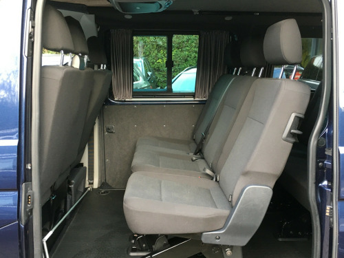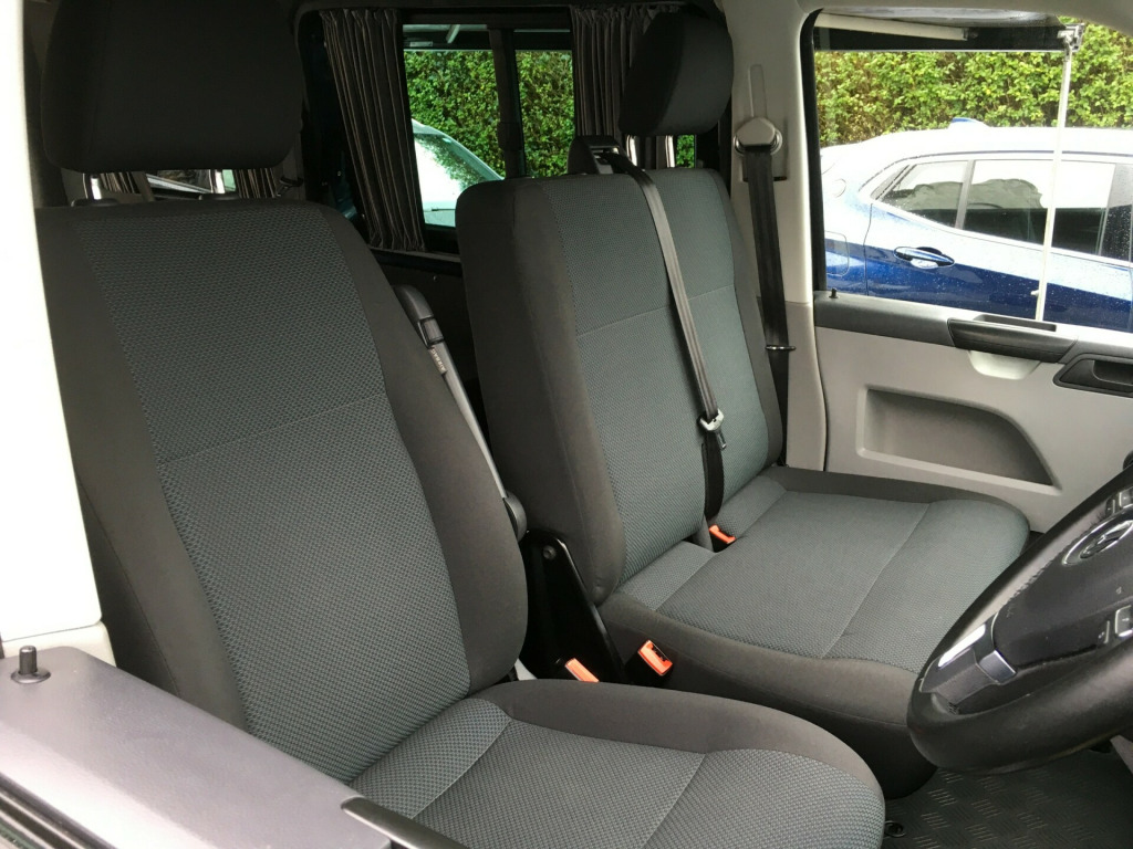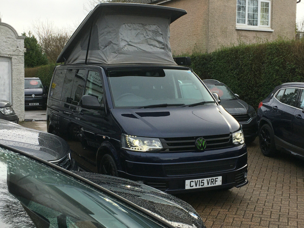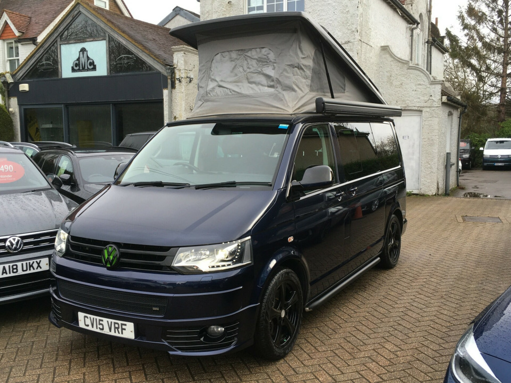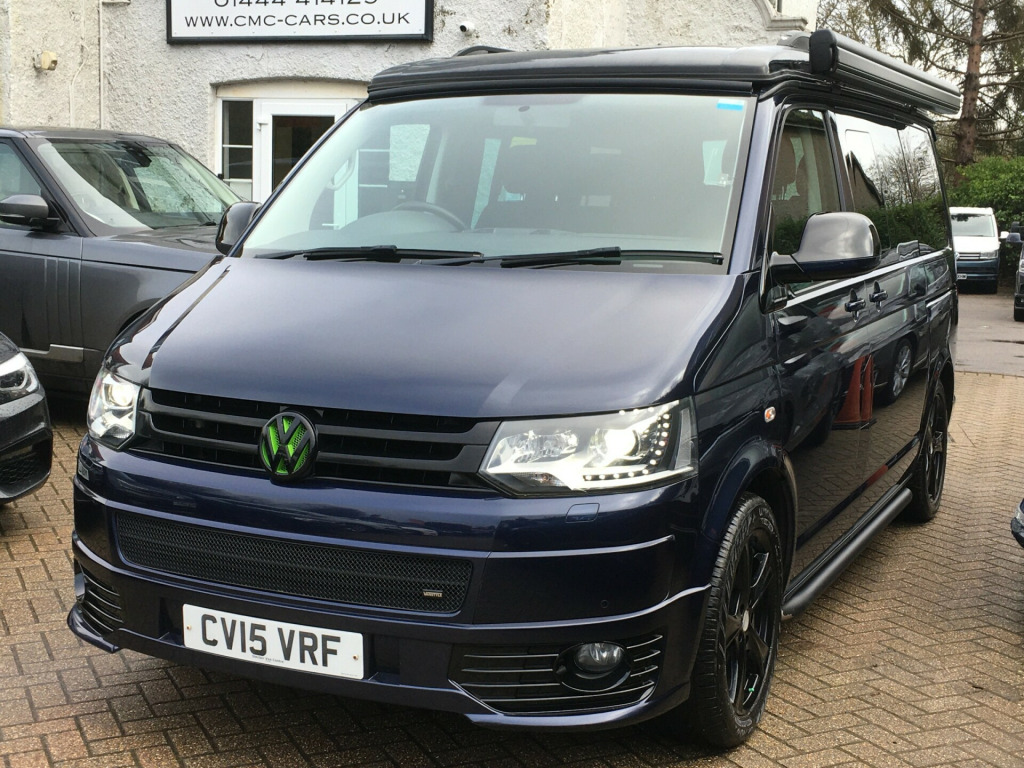 Cuckfield Motor Company are delighted to offer for sale this well presented and rare converted VW Transporter Hi-Line. Finished in Dark Blue with Charcoal Upholstery, this 9 Seated vehicle has had a professional Pop up Roof Conversion. It has a great Service History with recorded visits at 14826, 25446, 27563, 33861, 36466, 38900, 41841, 44048 and 47674 miles. The Toothed Belt was replaced at 27563 miles and the DSG Service carried out 41790 miles. Specification includes CARPLAY---Bluetooth Phone & Audio---Front & Rear Parking Sensors---9 Seats---Awning---Pop Up Roof---Privacy Glass---Heated Front Seats---Cruise Control---Air Conditioning---Tow Bar and much more.Every car we offer comes with a comprehensive provenance check certificate, Minimum 6 month warranty and new MOT and service where applicable. All part exchanges welcome.We offer extremely competitive finance packages to help you fund your new car.Cuckfield Motor Company Ltd is a family run business FCA approved dealer established for over 20 years, With 30 years experience in the motor trade.We are located in the village of Cuckfield just off the A23, 15 minutes from Gatwick airport and only 5 minutes from Haywards Heath train station.Please contact us via phone/email to view this car today. email us on: salescmc-cars.co.uk01444 414129, '' alloy wheels, 2 owners, 9 seats, air conditioning, bluetooth phone & audio, cambelt change, carplay, comprehensive service history, cruise control, dab radio, front & rear parking sensors, heated seats, height adjustable drivers seat, interior lighting, pop - up - roof, privacy blinds, privacy glass, side awning, towbar