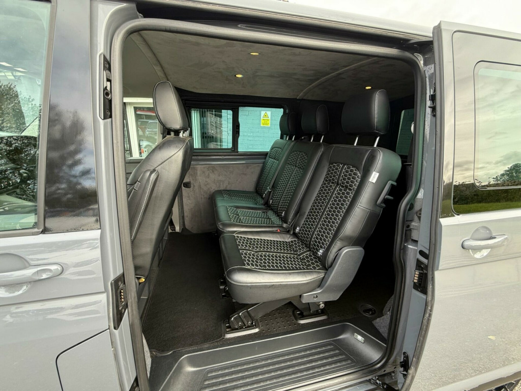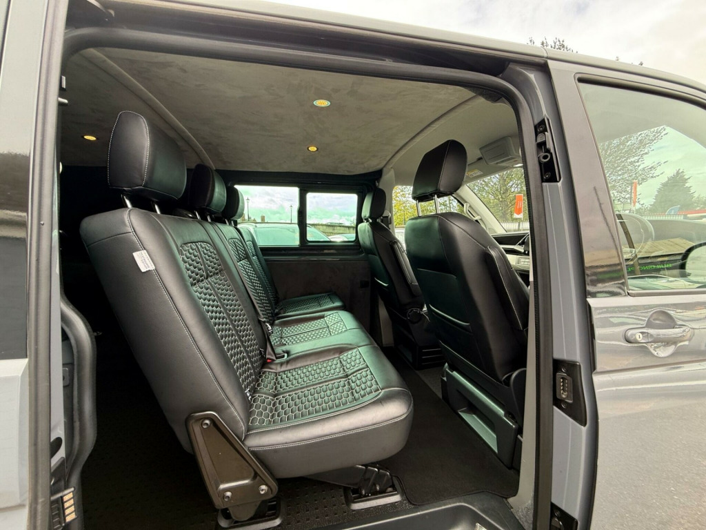 This 2020 Volkswagen Transporter 2.0 BiTDI T32 Highline Kombi DSG 4Motion SWB Euro 6 (s/s) 5dr boasts exceptionally low mileage for its age, having covered just 51,000 miles. As a Highline derivative, it comes equipped with a powerful 2.0 litre diesel engine delivering 196 bhp and features a capable four wheel drive system. This Euro 6 compliant model also benefits from a suite of convenient features, including adaptive cruise control with a speed limiter, front and rear park distance control, electronically controlled air conditioning, and automatic headlights with daytime running lights.With a generous cargo volume of 5800 litres, this Transporter offers ample space for your needs. Its low insurance group rating further enhances its appeal, indicating it is more economical to insure than many comparable vehicles. The combination of its robust build, advanced technology, and practical design makes this Volkswagen Transporter a standout choice. vigation system discover media including streaming and internet, rear view camera, traffic sign recognition, towbar - preparation with trailer stabilisation, tyre pressure monitoring system - direct, tailgate with window and power latching, electric sliding door - driver and passenger side, heated front seats, tailgate without window, without bulkhead, 16in chassis with 16in brake system, 17in alloy wheels - devonport - silver, 2 remote folding keys, 2x usb interfaces - type c - in dashboard, 3-point seat belts - height adjustable on outer seats in cab - with electronic pretensioners, abs - anti-lock braking system, asr - anti slip regulation, additional sound deadening measures in cab and passenger compartment, air conditioning - electronically controlled, alternator without specification of performance, anti-theft alarm system with interior monitoring in cab - backup horn and tow-away protection, app-connect, armrest - drivers and passenger, auto-dimming breakaway interior rearview mirror, automatic headlight activation with daytime running lights - leaving home - manual coming home function, bas - brake assist system, basic single drivers seat, basic single passenger seat, battery without capacity specification, body coloured bumpers, body-coloured exterior mirror housings and door handles, central locking - remote control with safelock and interior release, comfort headliner in cab - hardboard roof trim in passenger-load compartment, comfort pack, crosswind assist, cruise control - adaptive with speed limiter, dab+ - digital radio reception, differential lock - electronic, driver alert system, driver alert with multi-function display plus, driver exterior door mirror - convex, drivers and front passengers airbags with front passenger airbag deactivation switch, dust and pollen filter, esc - electronic stability control, electric windows - front, electromechanical speed sensitive power steering - height and longitudinally adjustable steering column, exterior package, folding grab handles and storage compartments on cab seats - reading lights, forward collision warning - front assist with autonomous emergency braking, front assist with autonomous emergency braking - for adaptive cruise control, front fog lights with cornering lights, front windshield wipers with intermittent operation and rain sensor, full wheel covers, glove compartment with illumination, grab handles on a-pillars - on driver and front passenger side, halogen twin headlights, headlight range control, heat insulated glass - green in cab and privacy glass in passenger compartment, heat insulating glass in cab, heavy-duty tool kit, height adjustment - manual - lumbar support - manual - for driver and single passenger seats, hill start assist, illuminated instruments - dimmable, illuminated steps in passenger compartment, indirect tyre pressure monitoring system, interior lighting with led technology in load and passenger compartment, interior noise suppression, isofix and top tether child seat anchorage for transporter-shuttle in row 2, laminated windscreen - heated, lashing rings for load restraint, load side lining - hardboard, loading edge protection in plastic, locking wheel bolts, lumbar support for driver seat - manual, manual side sliding door - passenger side, multi-function display plus, non-smokers package, park distance control in front and rear, passenger exterior door mirror - convex, power-operated child safety lock, radiator grille with 2 chrome trims, radio composition colour with 6.5in touchscreen, rear window with heat-insulating glass - heated - with wiper and washer system, refrigerant r134a, rubber floor covering in cab, rubber floor covering in passenger and load compartment with loading edge protection at rear, seatbelt warning buzzer and light for driver, seats - height adjustment for driver seat, seats - three man bench - folding and tipping row 2, seats - without rear 3rd row, single tone horn, sliding window in front and closed side panel in rear in load-passenger compartment drivers side, sliding window in front and closed side panel in rear in load-passenger compartment passenger side, smartphone interface, speakers x4, standard dashboard - lower part in palladium, standard rear combination lights, start-stop system with regenerative braking, steel spare wheel with original equipment tyre, steering wheel - 3-spoke - leather trimmed - multifunction, sun visor with mirror and airbag label - passenger, tailgate closing with unlatching from the inside, tailgate with heated rear window, tailgate with window aperture, transporter nameplate on the fender and on the rear, two 12v outlets - dashboard, tyres 215-60 r17 c109-107t with low rolling resistance, waste bin for door pockets in cab, wing mirrors - heated - power adjustable and power folding, without adhesive film, without camera systems, without sliding door in passenger-load compartment - right, without trailer hitch, without washer fluid level indicator and without heated washer nozzles, ecall emergen