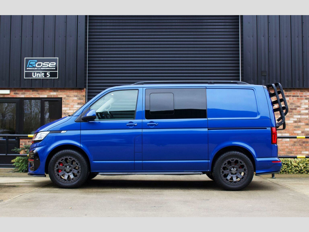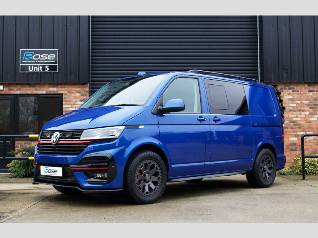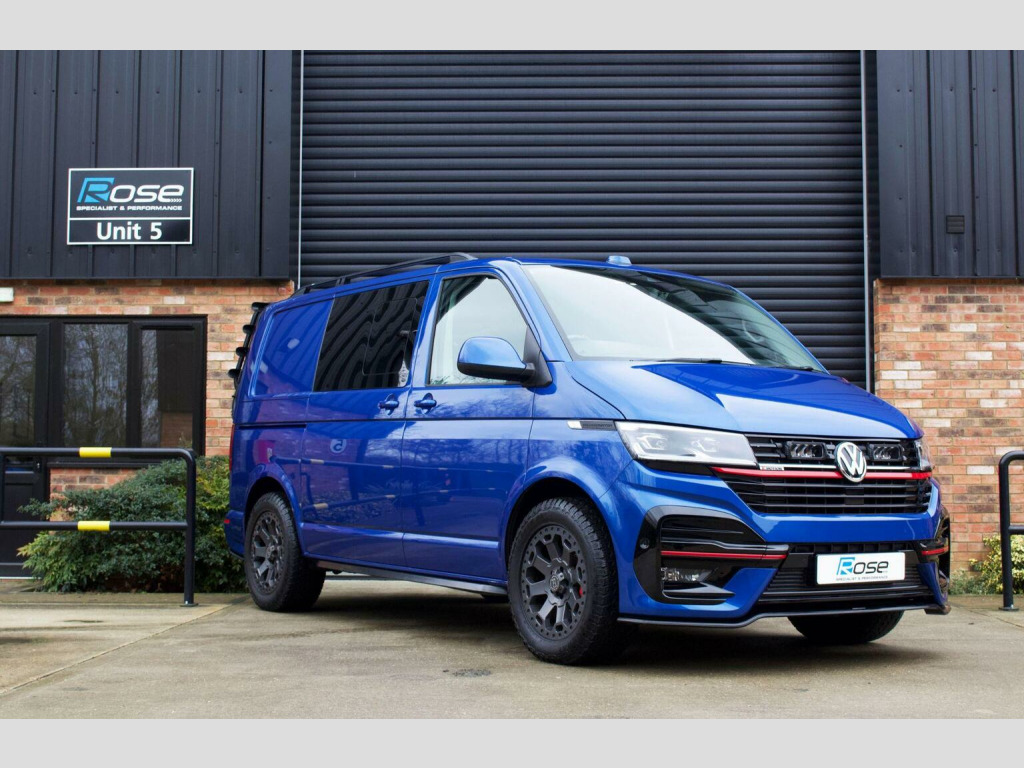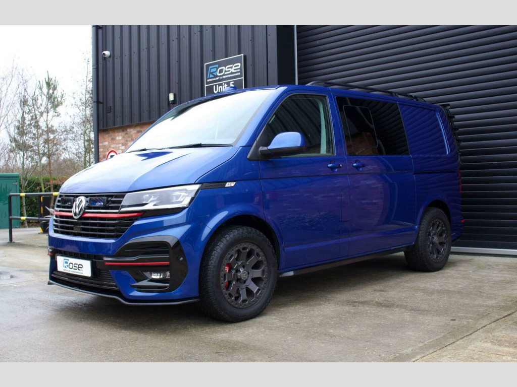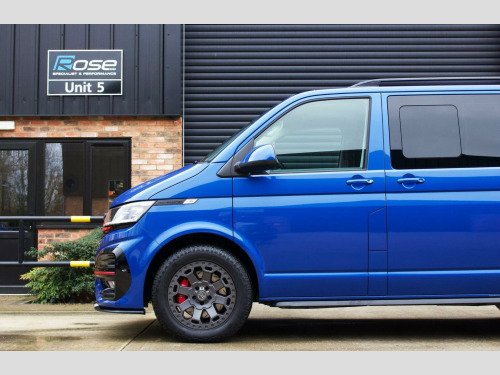 Rose Specialist Cars are proud to offer this simply incredible 2022 (72) Transporter T6.1 BiTdi 204 DSG 4Motion Leighton Van LV-R Kombi. Starting life as a fully loaded T6.1 Kombi benefitting from a huge amount of cost options, highlights include:, - Twin Electric Sliding Doors. - Discovery Navigation Pro with Apple CarPlay and Android Auto, - Virtual Cockpit, - Reverse Camera, - Heated Captain seats, - 4Motion Drivetrain with Diff Locks, - Electric Tailgate, - Solid Tailgate, - LED Headlights, - Park Assist with 360 degree sensors. - Traffic Sign Recognition. - Adaptive Cruise Control. Purchased by its previous owner directly from Leighton Vans with the full LV-R upgrade brochure thrown at it (at a substantial cost) The LV-R upgrades include: , - Front and Rear LV-R Bumpers, grill upgrades, side bars and roof bars. - Full interior retrim in quilted leather and Alcantara. , - 20 Wheels (Now Replaced), - Insulated, sound deadened and carpet lined throughout with suede panel inserts, - Halo Roof, - Carbon Fibre Steering Wheel, - Alpine Sound system upgrade, Post Purchase the previous owner set about making it his own, various upgrades ensued to create this wonderful van, these upgrades included: , - Leighton Van/ EBC 6 pot front brakes. , - Complete Caravelle rear seat conversion for complete seating flexibility with all parts bought new from Volkswagen. Rear seats can slide and swivel with capacity to add more seats if required. - Rear Seats professionally retrimmed by Inspire Automotive to match the front seats. , - 18 Black Rhino Swamper wheels with General Grabber Tyres. - Auxiliary Battery installed. - WEBASTO Night heater. - Black Powder coated bike rack, - Laser Lights Upgrade linked to the main beam. A simply incredible van, in pristine condition throughout, whether youre looking a versatile go anywhere Transporter or the perfect base van for the ultimate camper this is the van for you!! Please contact us for a tailored finance quotation. Supplied with two keys, 12 Months MOT and a comprehensive 3 Month Warranty. Please call 01844 202100 for further information.