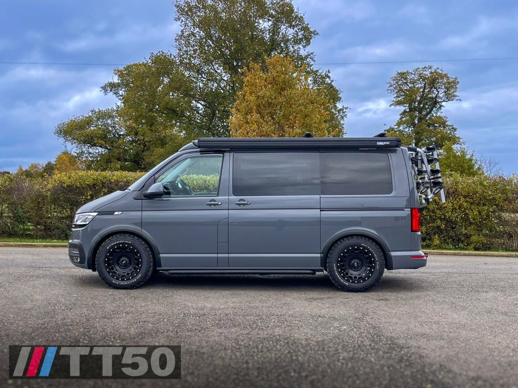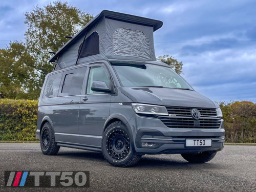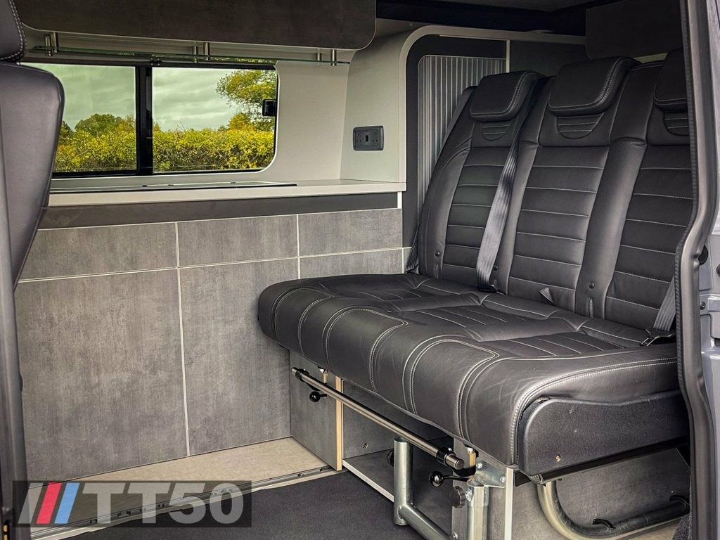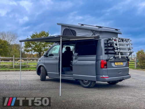 HUGE SPEC !! The highest spec'd van straight from the factory T32 High line, 4 motion DSG 204bhp. Finished in stunning Grey which compliments the black leather. Built by Status One and Sherwood Campers this is a top of the range van costing just under £100k when new. Full Service History. SPEC INCLUDES: Adaptive cruise control, air conditioning, leather multi-function steering wheel, front and rear parking sensors, App-Connect, quick clear windscreen, auto lights and wipers, the rare VW LED lights and heated cab seats which swivel. Newstead model that features the excellent Reimo Vario tech 3000 bed which provides three seats, ISOFIX and is on rails so multi-positional. Other equipment includes Reimo V tech pop-top roof with sprung bed, Webasto diesel heater and Fiamma f45s wind out awning. The furniture is very well built with flush fitting cupboards, and all five seats have been upholstered in genuine Nappa leather. It has all the original certificates from Sherwood including the electrical testing report, Gas safety certificate and all product registration, certificates and manuals for all items fitted which includes Westfalia tow bar, Fiamma f45's, Webasto fridge, Dometic sink and hobs, Bullfinch external shower point along with Shurflo fresh water pump and undermounted water tank. Solar panel with solar charger controller. Pilot and passenger swivel chairs, table, led lights with dimmer switches, 240v hook up with the leads, BCA power management. Full Nap Pure Grey, 12V Socket - Additional, 12V Socket - Front, 17in Alloy Wheels - Devonport, ABS - Anti-Lock Braking System, ACC - Adaptive Cruise Control, ASR - Anti Slip Regulation, Air Conditioning - Electronically Contro, Allergen Filter, Anti-Theft Alarm System with Interior Mo, App-Connect, Armrest - Drivers, Automatic Dimming Rear View Mirror, Automatic Headlight Activation with Dayt, Automatic Post-Collision Braking System, BAS - Brake Assist System, Body-Coloured Door Mirror Housings and H, Comfort Pack, Composition Colour DAB Plus Radio System, Crosswind Assist, Dash Panel with Open Stowage Compartment, Dashboard - Dimmable Illumination, Door Mirrors - Heated - Power Adjustable, Driver A